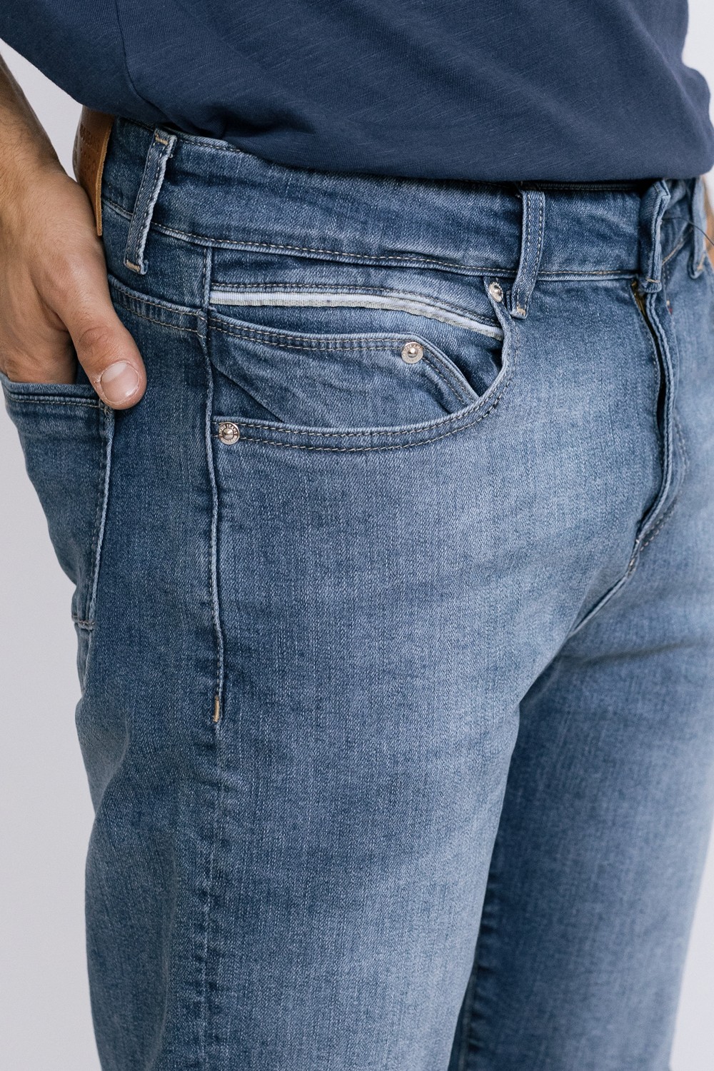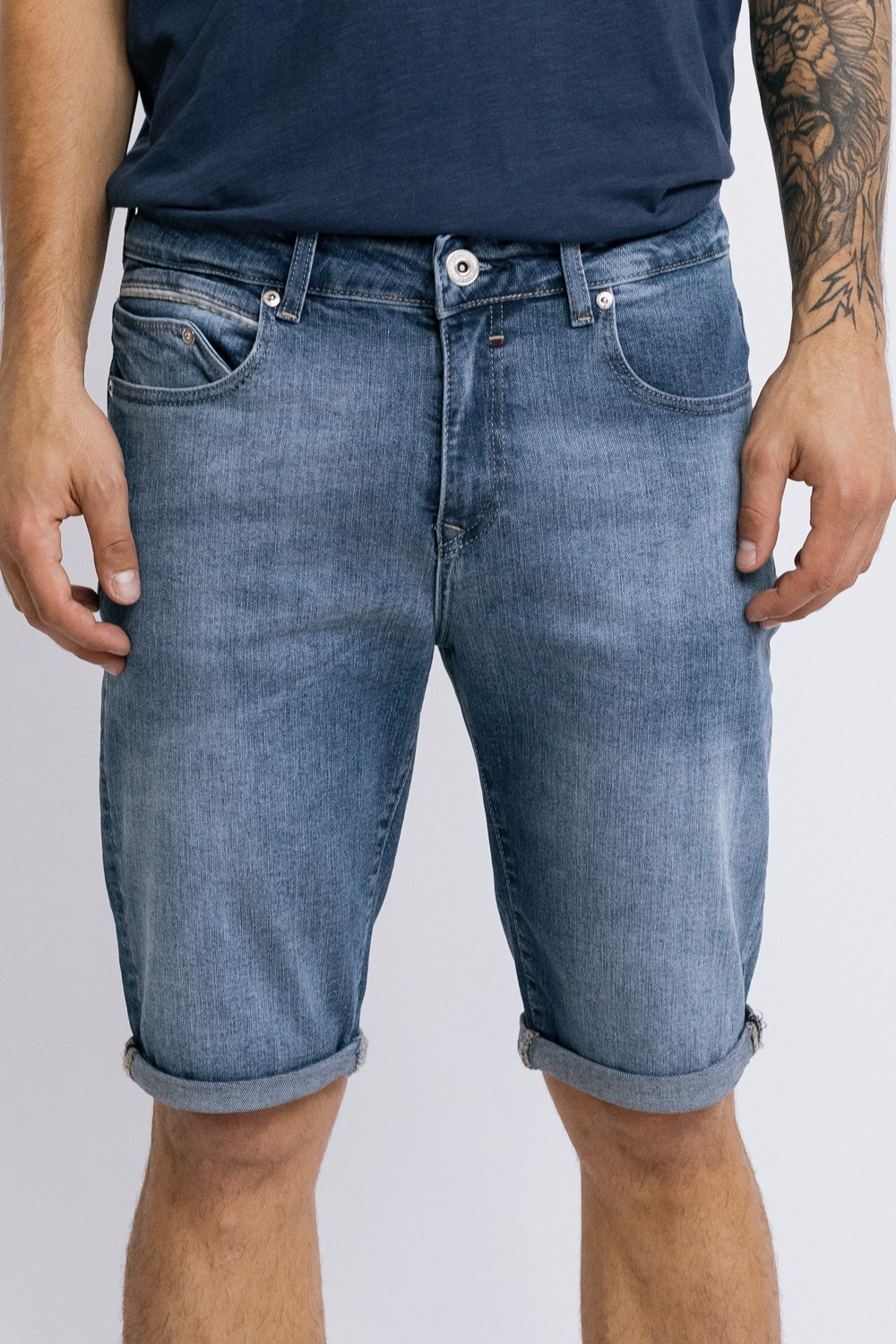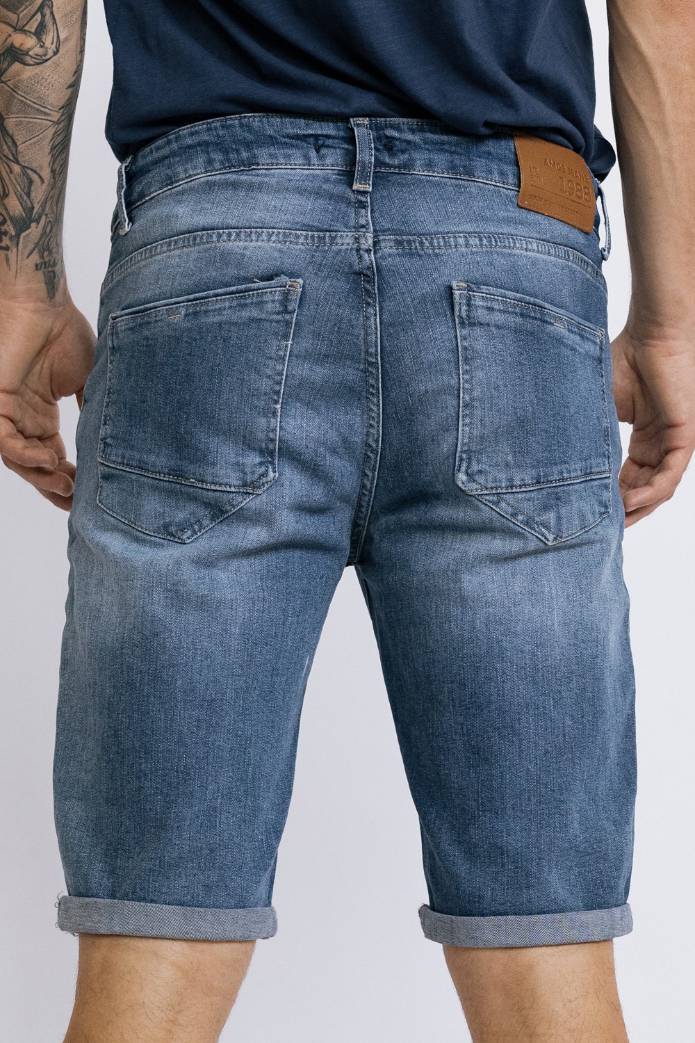 Traper bermude sa svijetlim pranjem sprijeda. Podavinute nogavice. Pet džepova, te kopčanje sprijeda patent zatvaračem i gumbom. -98% PAMUK, 2% ELASTINModel je visok 194 cm i nosi veličinu S..