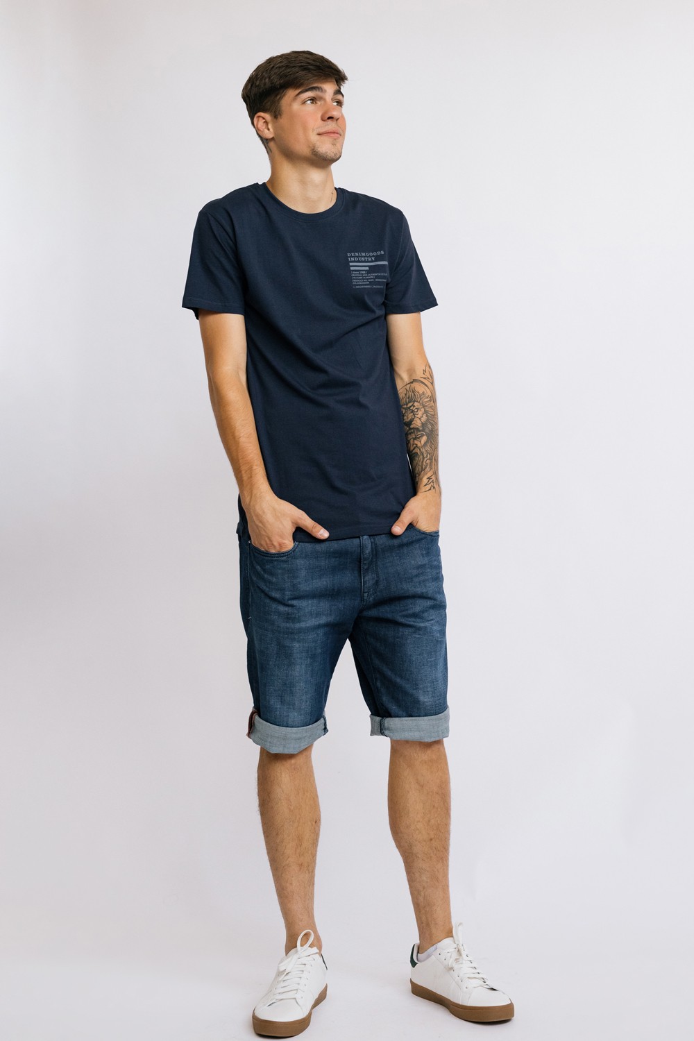 Muške traper bermude. Pet džepova i kopčanje patent zatvaračem i gumbom sprijeda. Regular slim fit nosivnost i srednja visina struka. -98% PAMUK, 2% ELASTINModel je visok 190 cm i nosi velič..