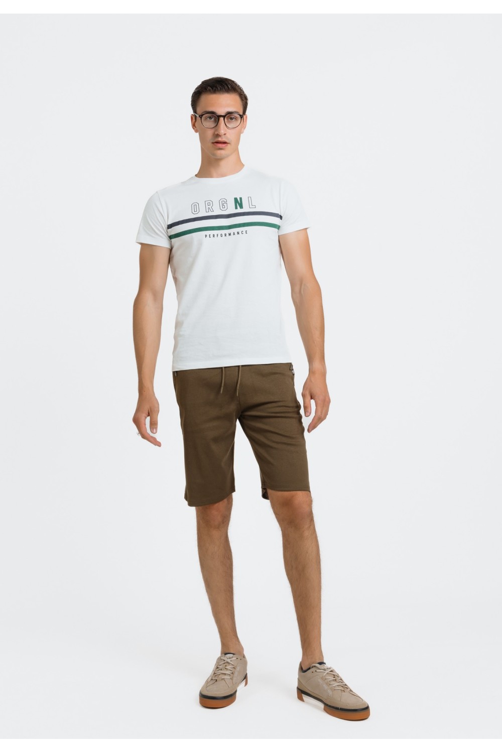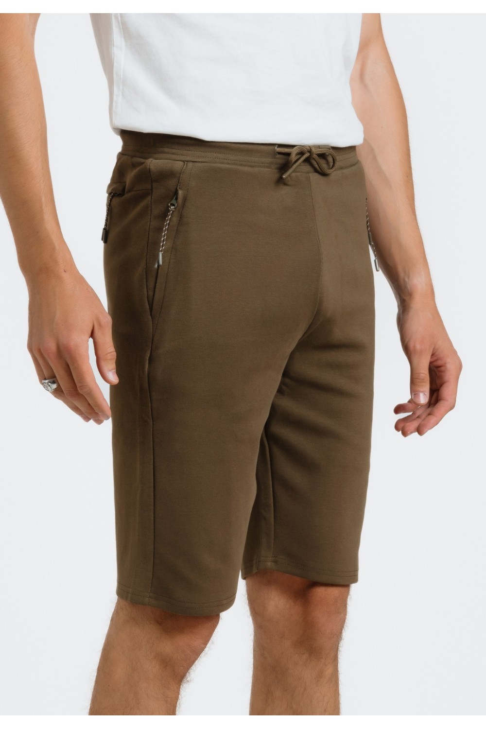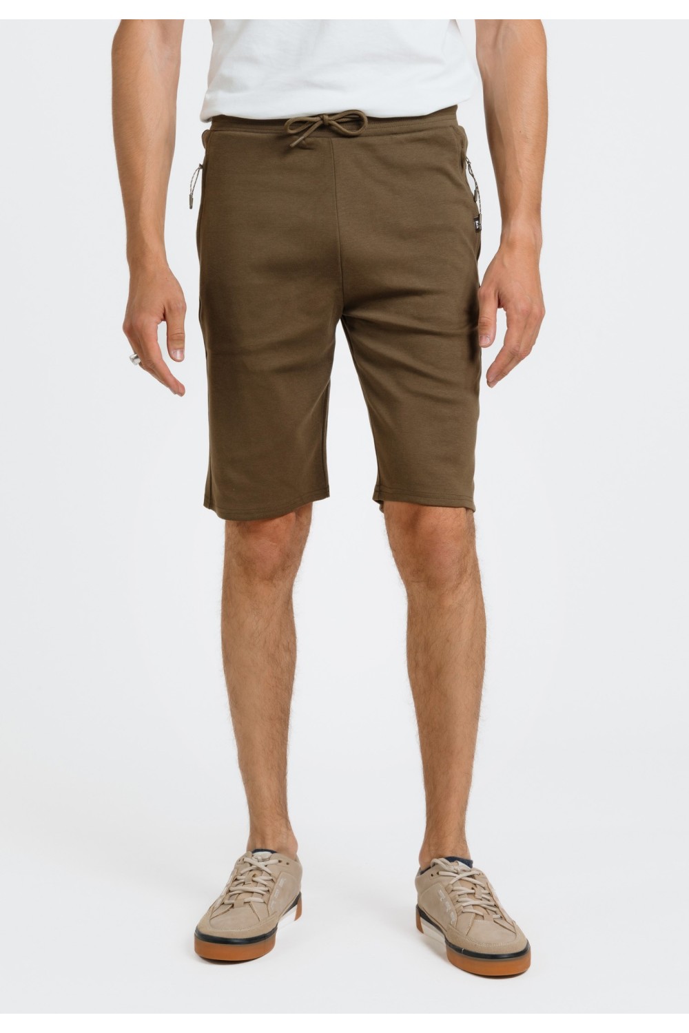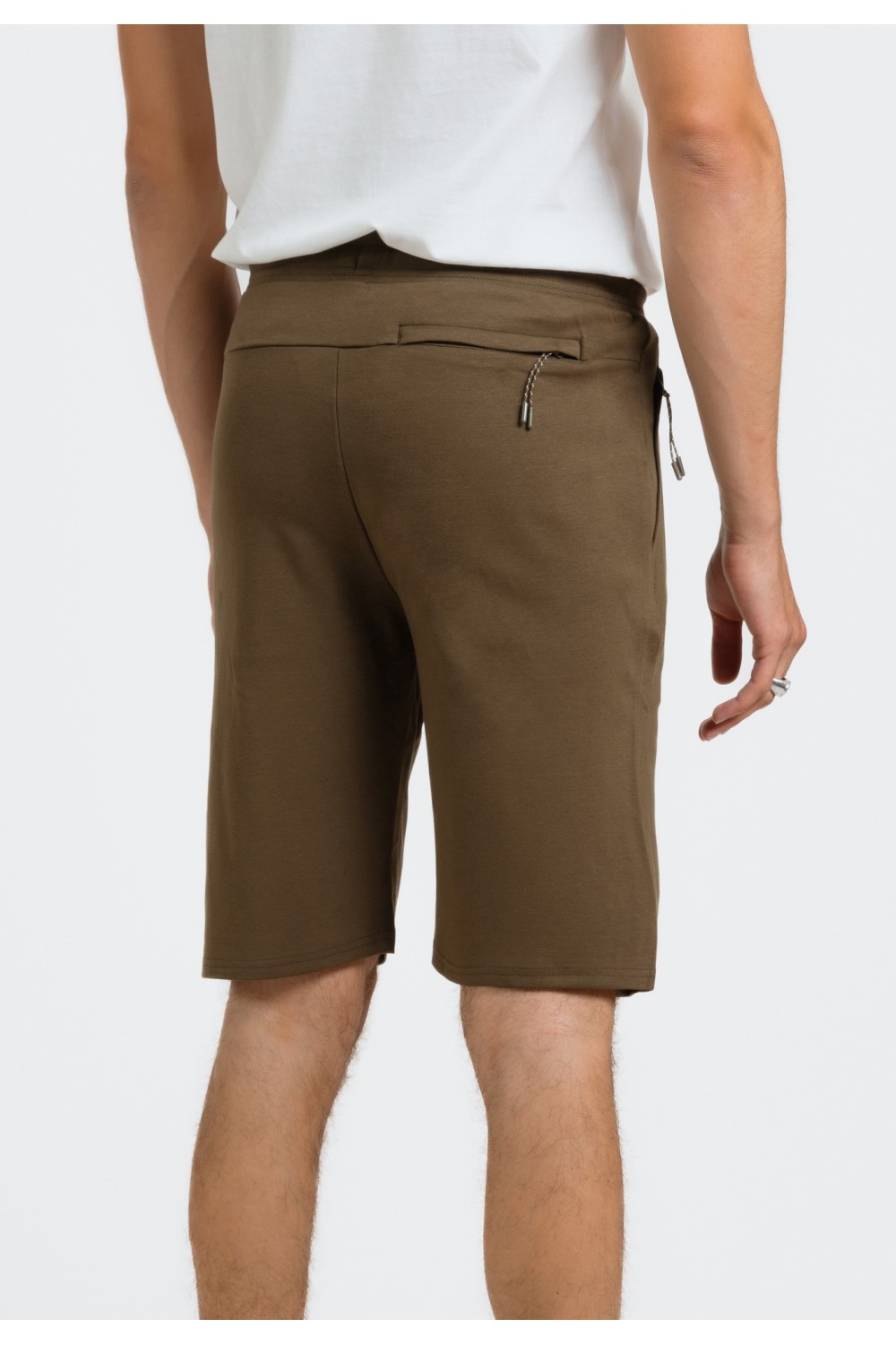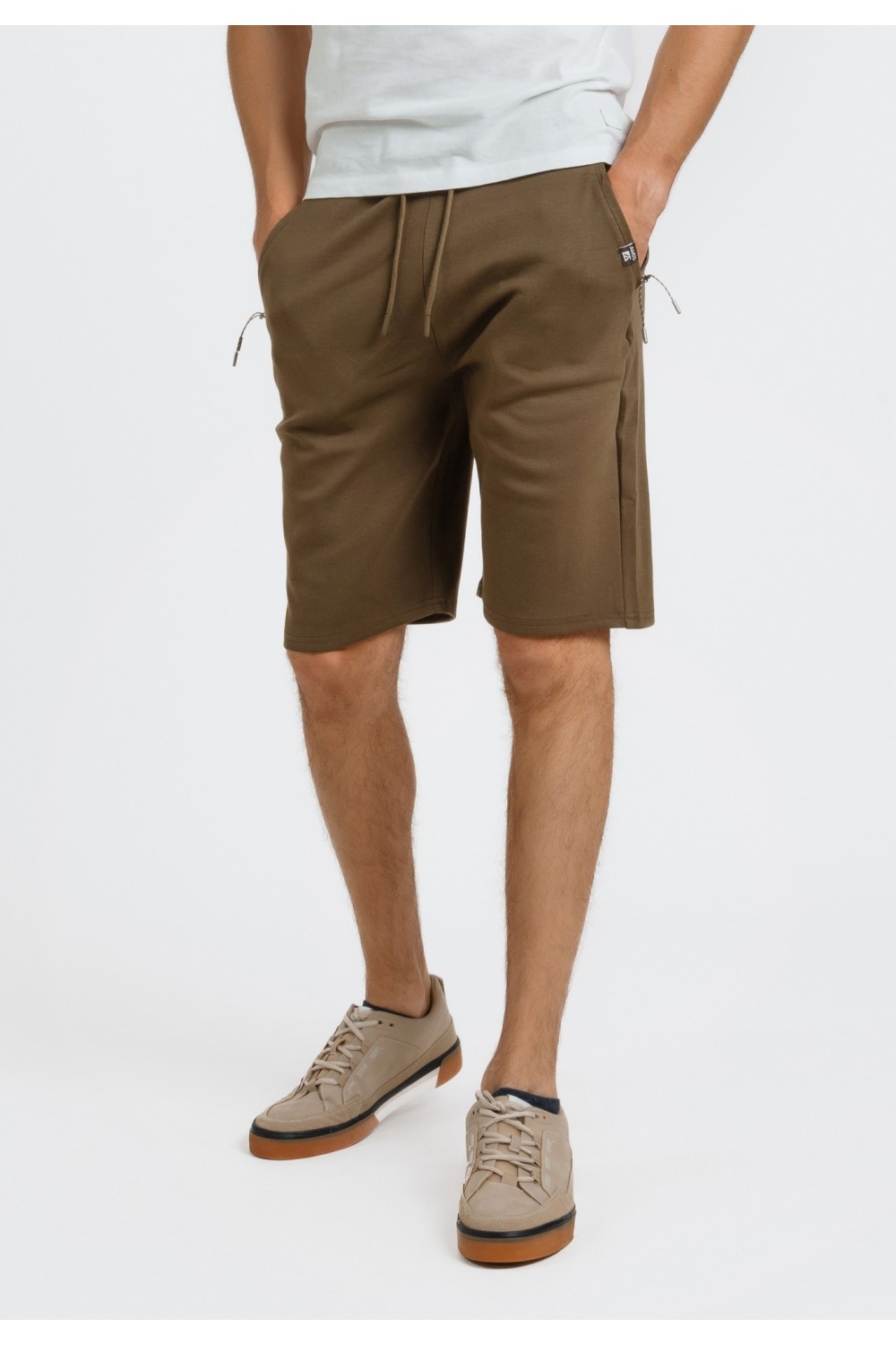 Maslinasto zelene bermude, s bočnim džepovima na preklop i vezicama za regulaciju. Sprijeda ušitci na nogavicama. Prednji, bočni te stražnji džepovi na preklop. Ušitci za remen. Kopčanje spr..