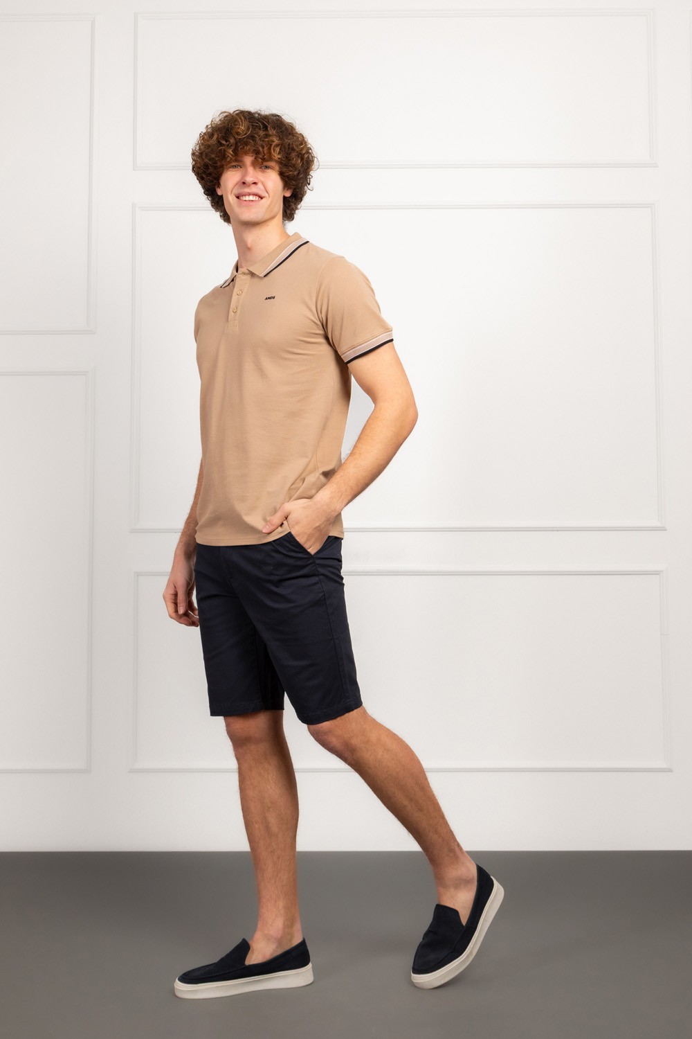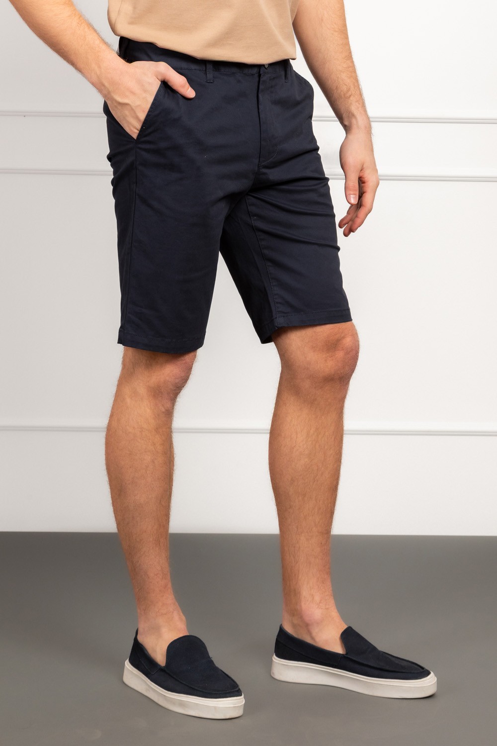 Muške bermude u maslinasto zelenoj nijansi izrađene od keper tkanine koja je izdržljiva, prozračna i udobna za svakodnevno nošenje. Cargo džepovi na bočnoj strani dodaju funkcionalnost i pra..