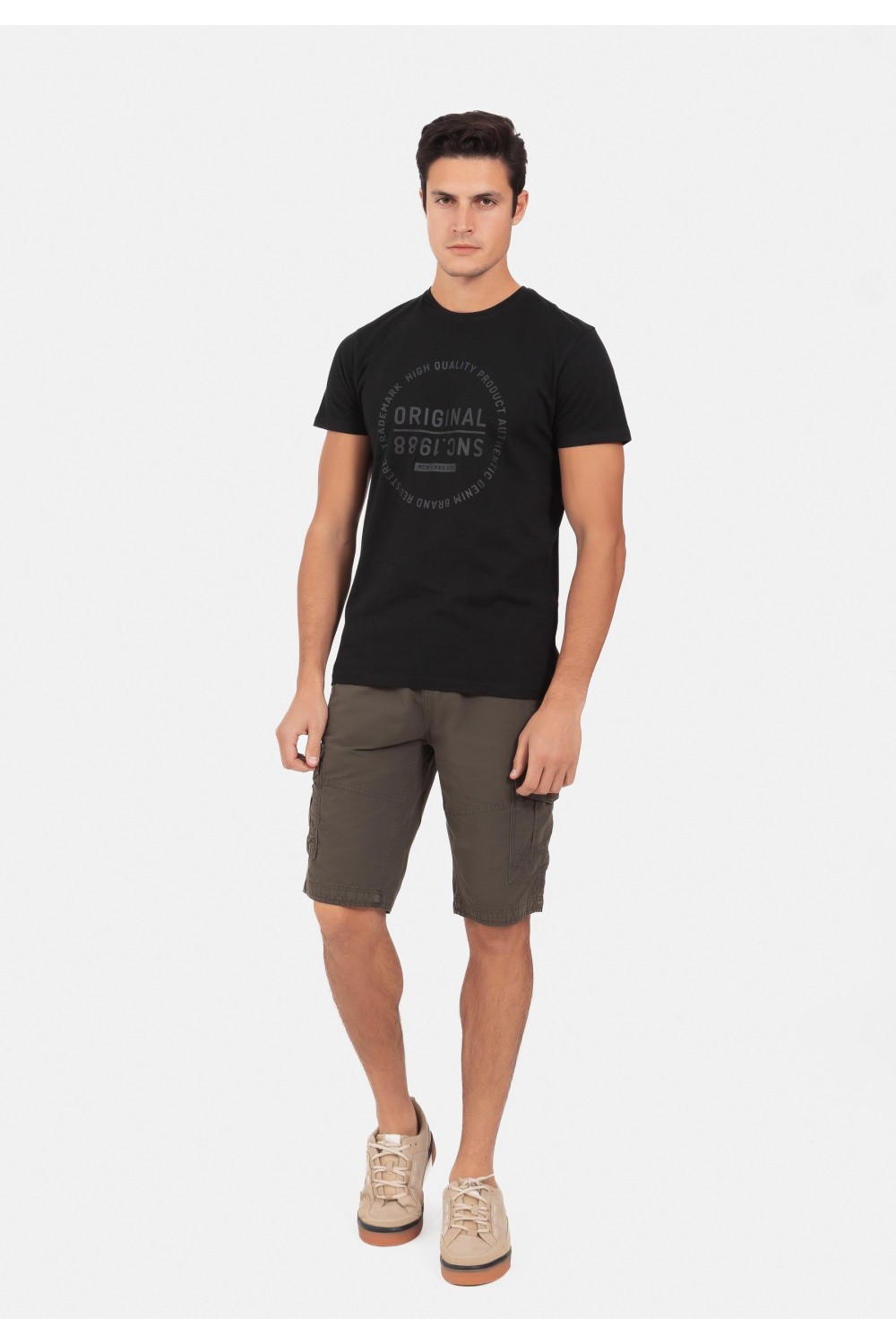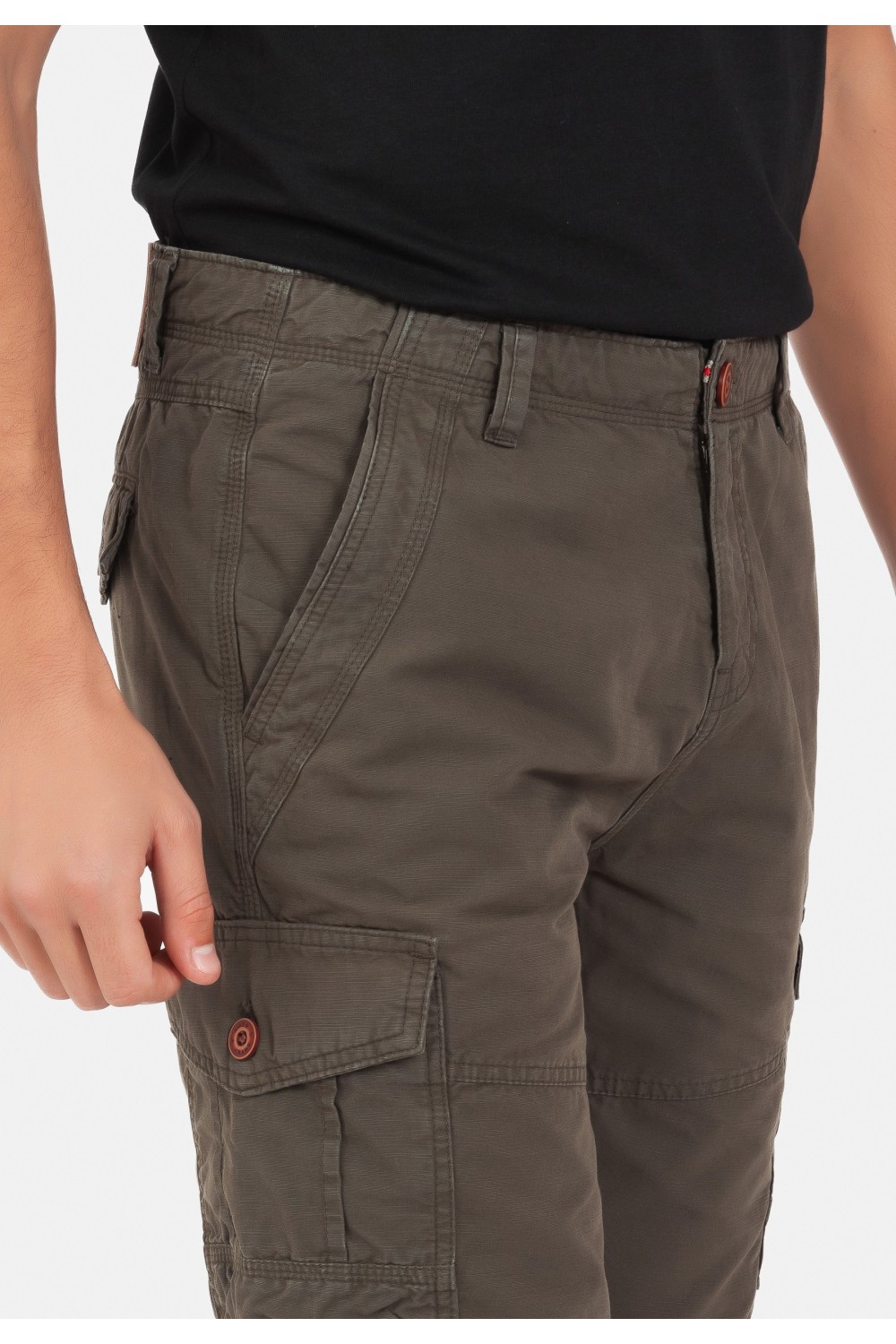 Muške bermude s bočnim džepovima na svakoj nogavici, uz dodatna četiri džepa. Regulacija nogavica na rubovima. Kopčanje patent zatvaračem i gumbom. ..