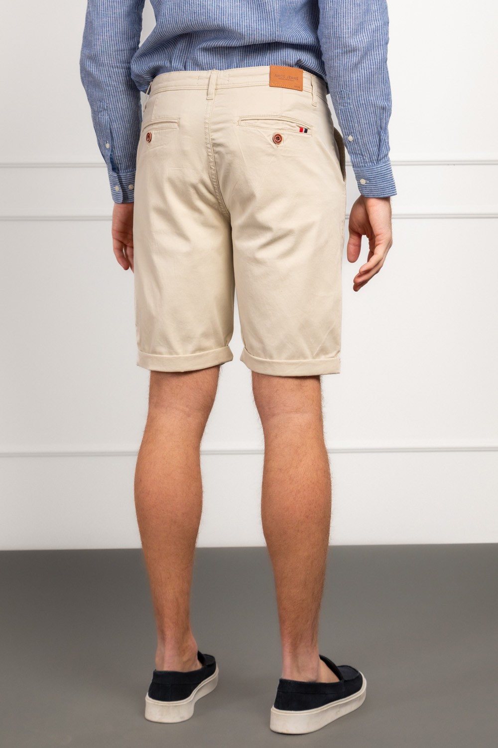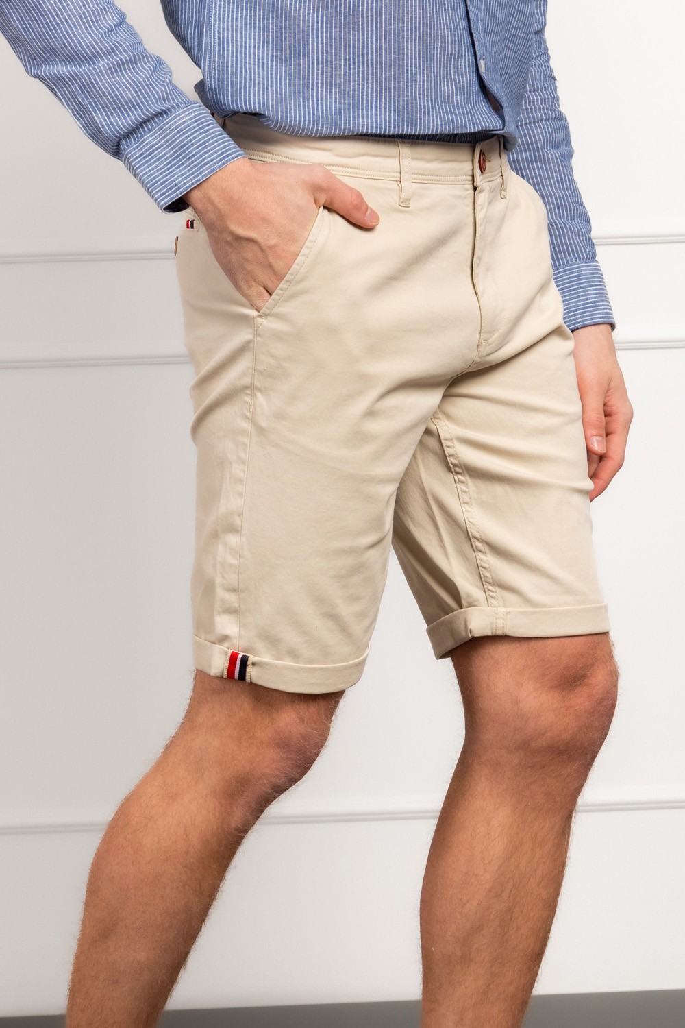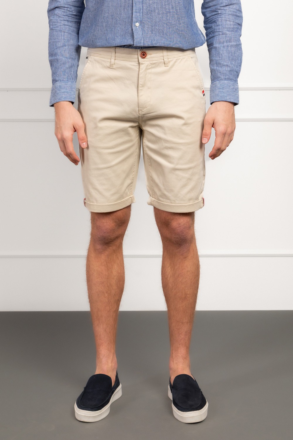 Muške bermude u maslinasto zelenoj nijansi izrađene od keper tkanine koja je izdržljiva, prozračna i udobna za svakodnevno nošenje. Cargo džepovi na bočnoj strani dodaju funkcionalnost i pra..