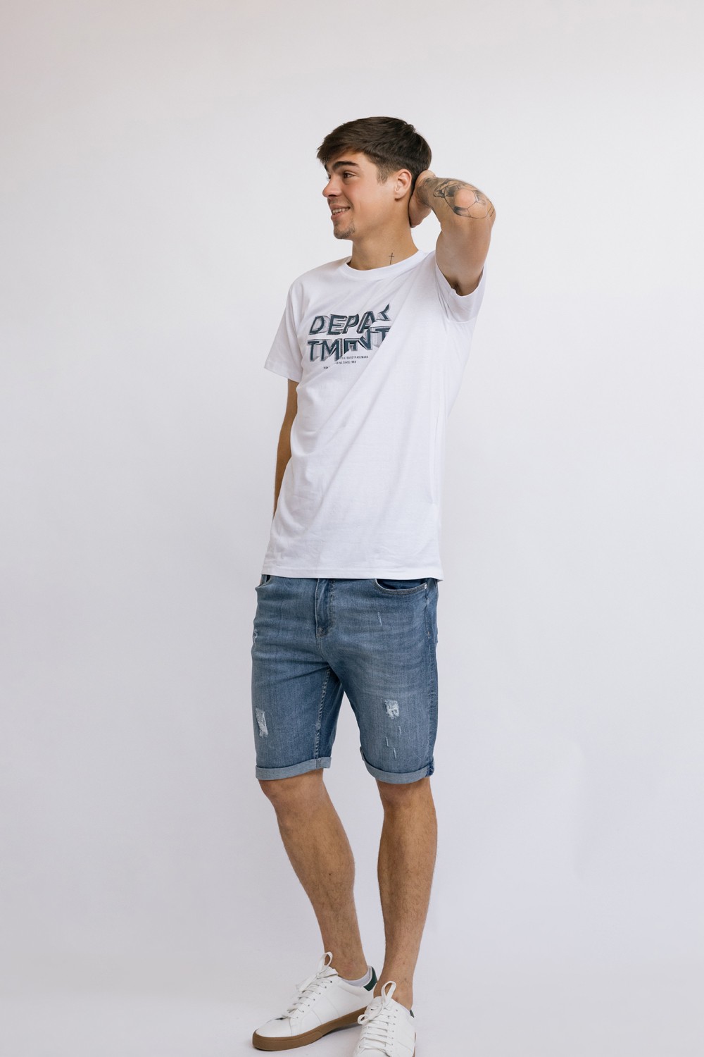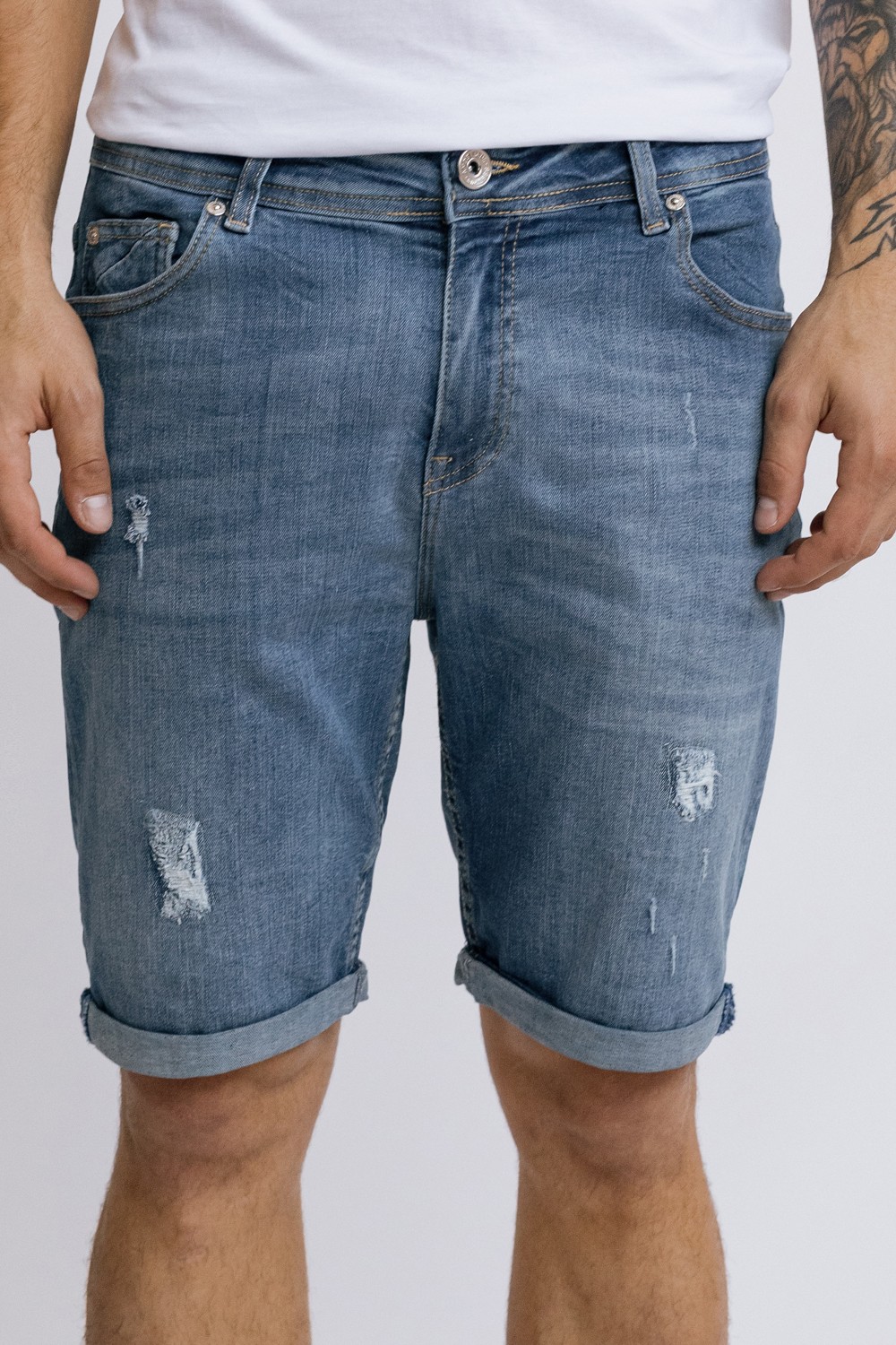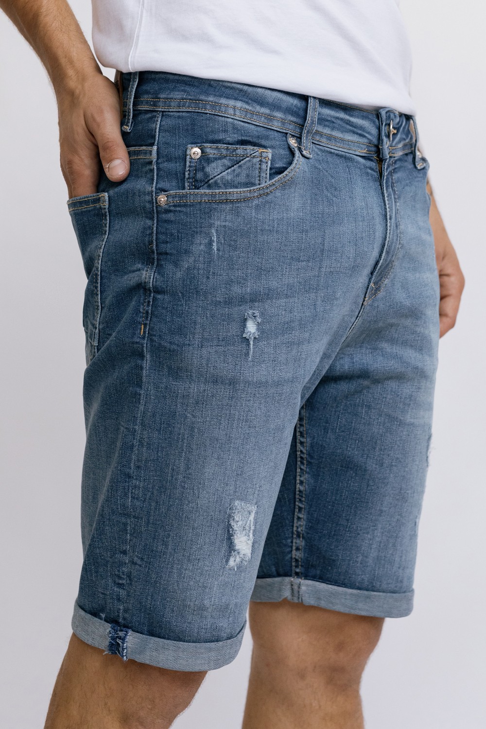 Traper bermude sa svijetlim pranjem sprijeda. Podavinute nogavice. Pet džepova, te kopčanje sprijeda patent zatvaračem i gumbom. -98% PAMUK, 2% ELASTINModel je visok 194 cm i nosi veličinu S..