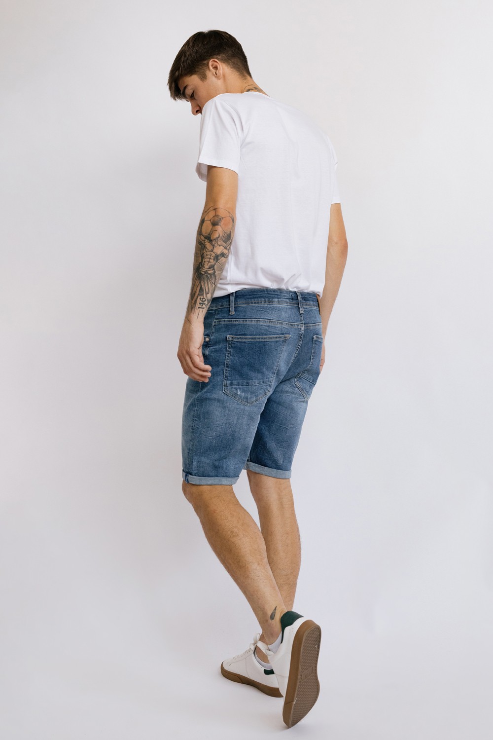 Muške traper bermude. Pet džepova i kopčanje patent zatvaračem i gumbom sprijeda. Regular slim fit nosivnost i srednja visina struka. -98% PAMUK, 2% ELASTINModel je visok 190 cm i nosi velič..