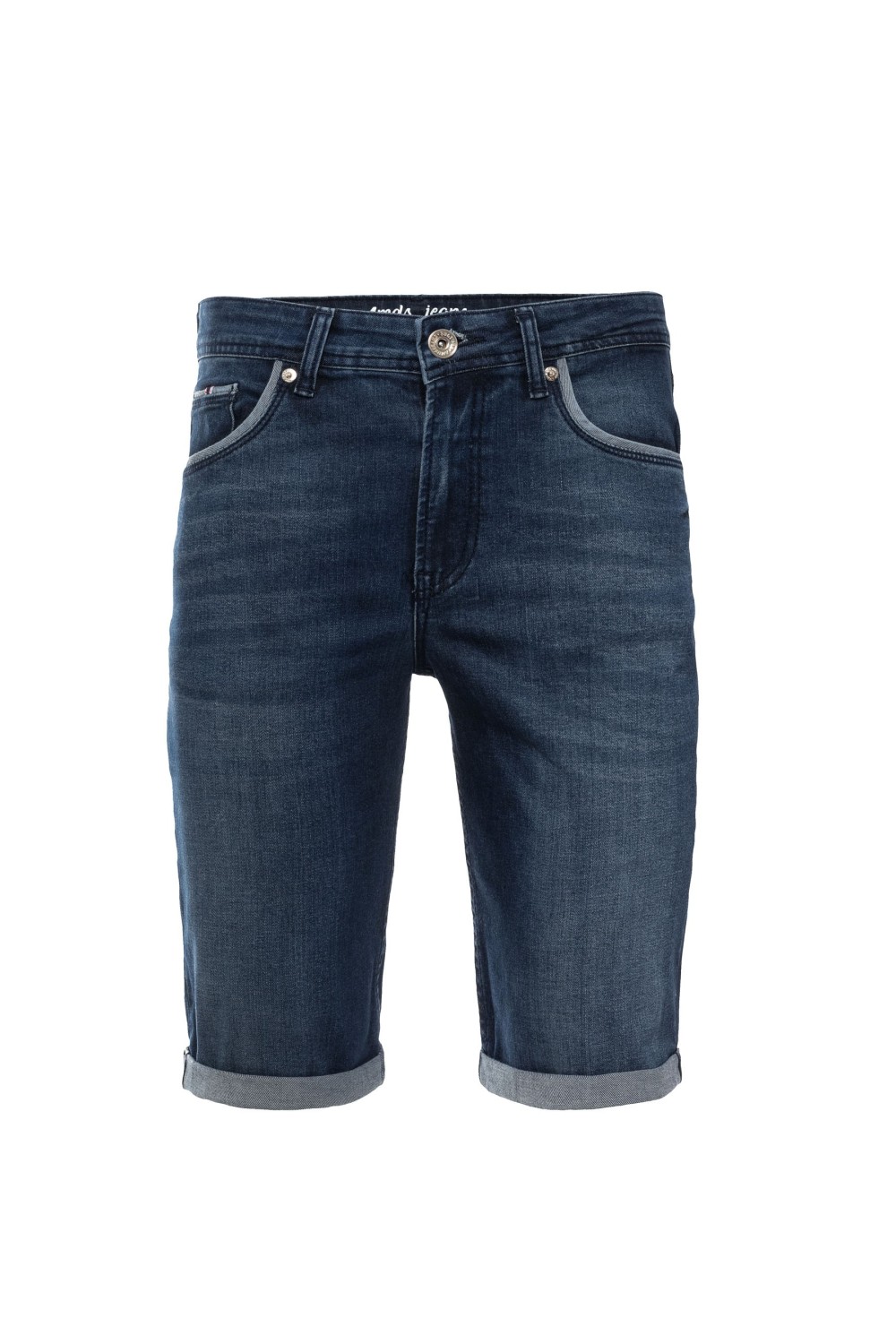 Muške traper bermude, svjetlijeg trapera. Ušiveni AMDS logo u obliku zastavice sa desne strane. Pet džepova i kopčanje patent zatvračem sprijeda. Regular slim fit nosivnost. -99% PAMUK, 1% E..