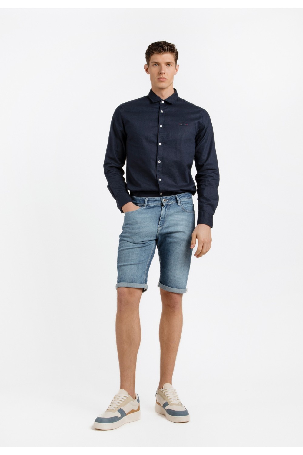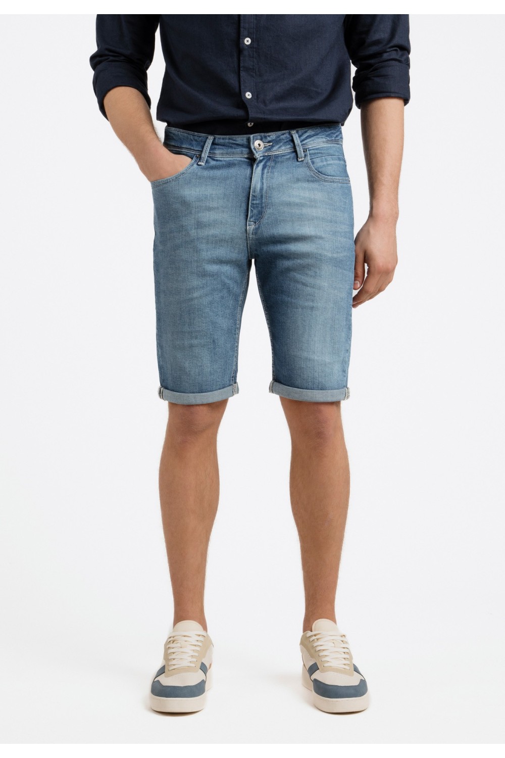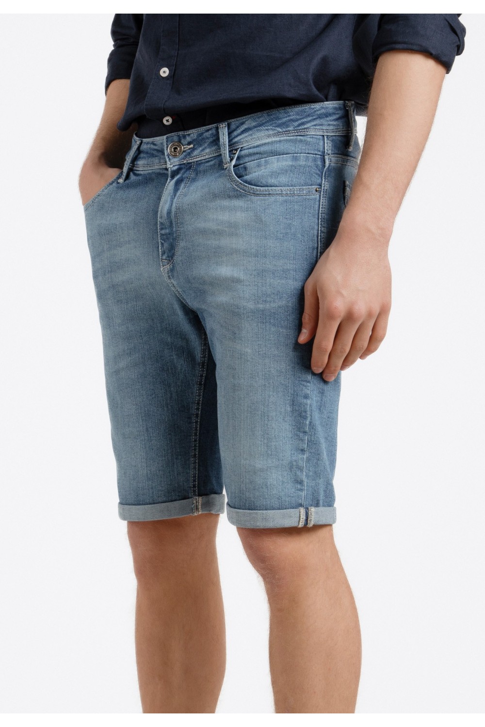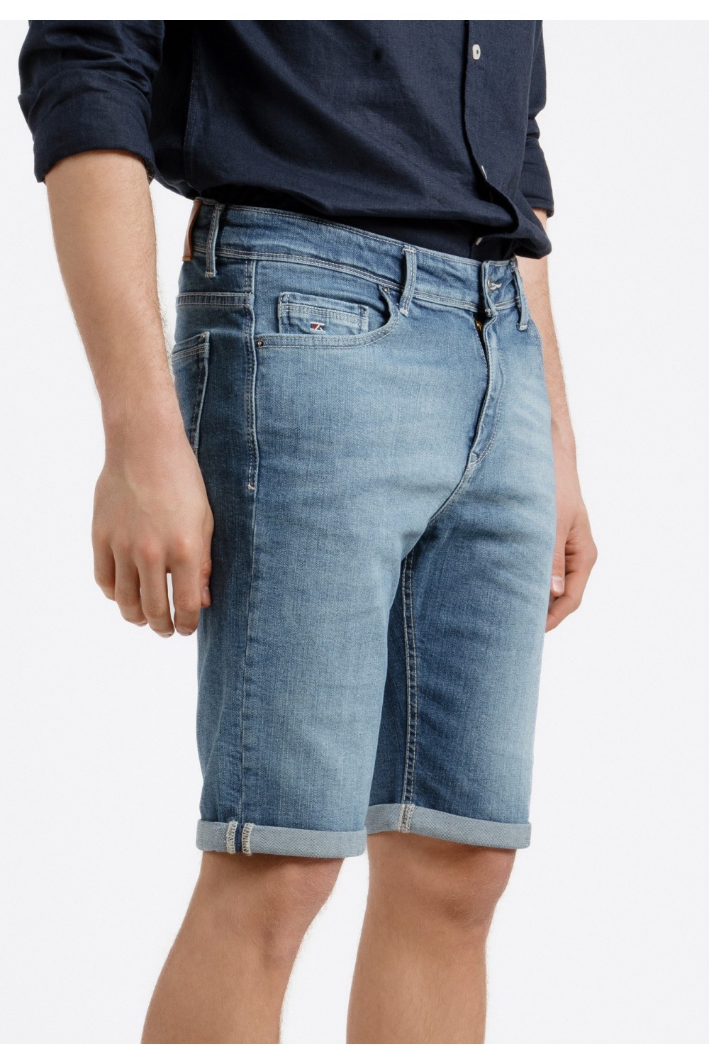 Traper bermude sa svijetlim pranjem sprijeda. Podavinute nogavice. Pet džepova, te kopčanje sprijeda patent zatvaračem i gumbom. -98% PAMUK, 2% ELASTINModel je visok 194 cm i nosi veličinu S..