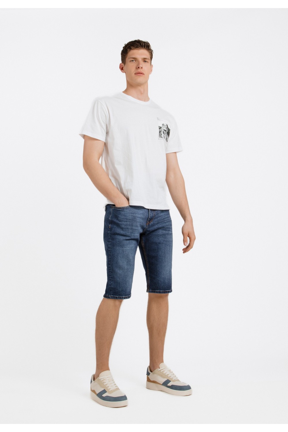 Traper bermude sa svijetlim pranjem sprijeda. Podavinute nogavice. Pet džepova, te kopčanje sprijeda patent zatvaračem i gumbom. -98% PAMUK, 2% ELASTINModel je visok 194 cm i nosi veličinu S..