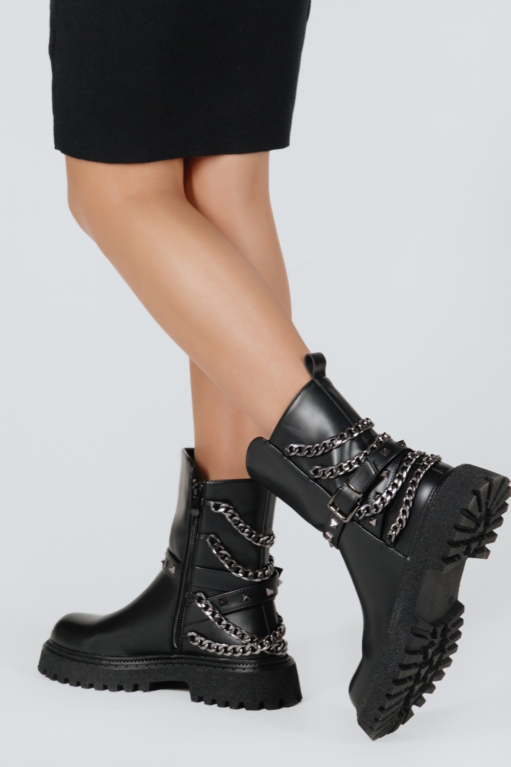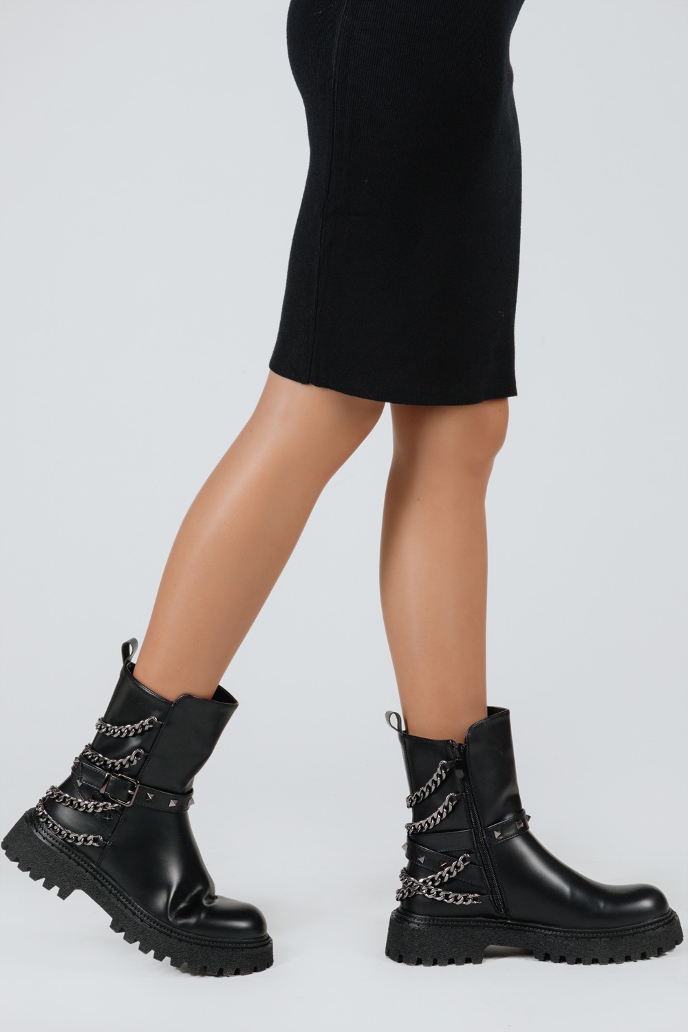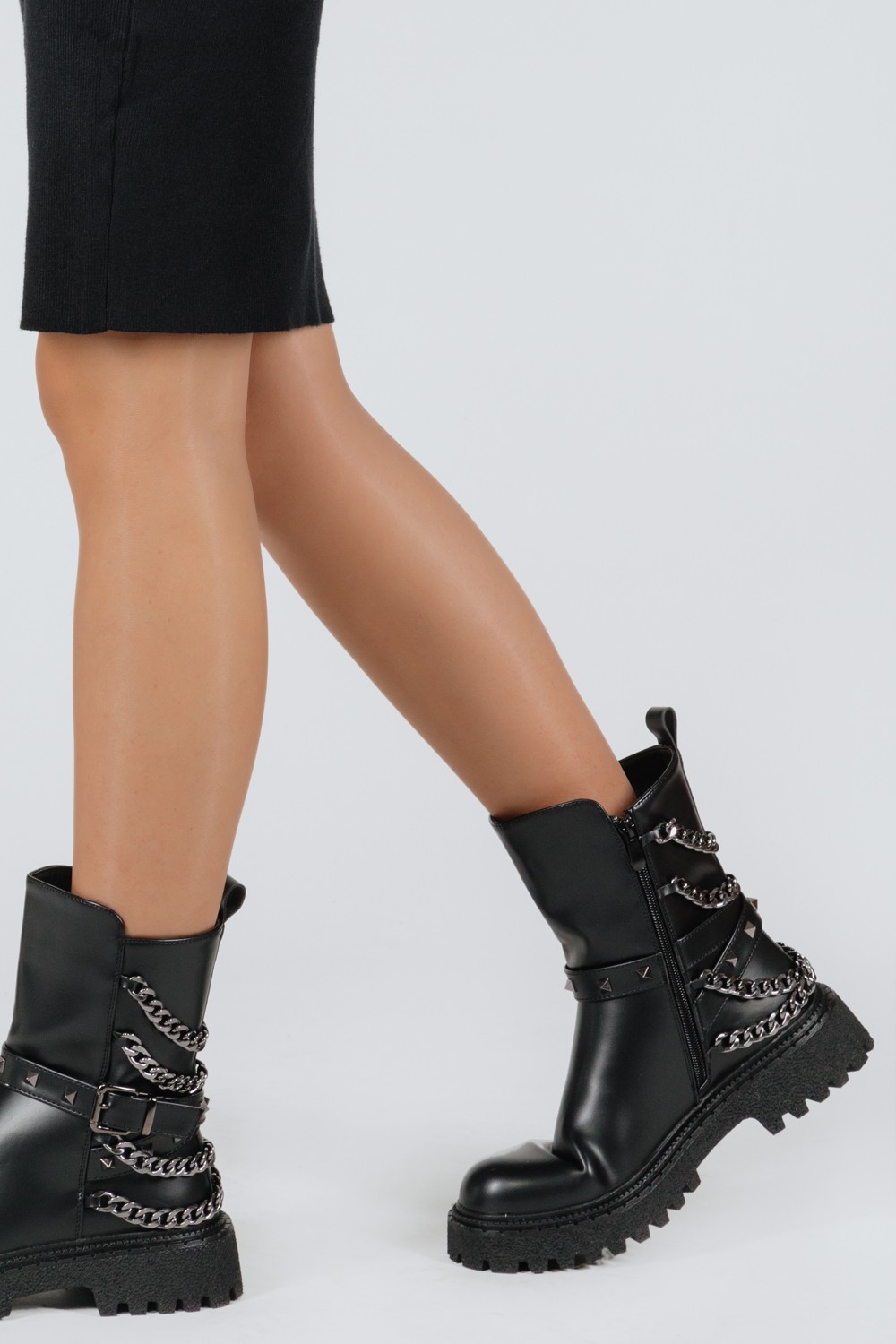 Čizme od umjetne kože u crnoj boji s dodatkom lanaca i zakovica.