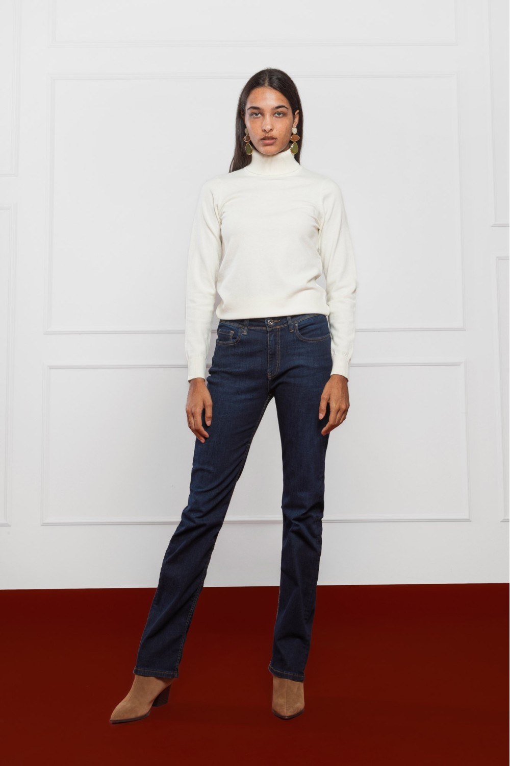 Elegantna crna ženska dolčevita s dugim rukavima. Prednji dio krase sjajne aplikacije u obliku vertikalnih linija, koje daju moderan i glamurozan izgled. Idealna za posebne prilike, ali i za..