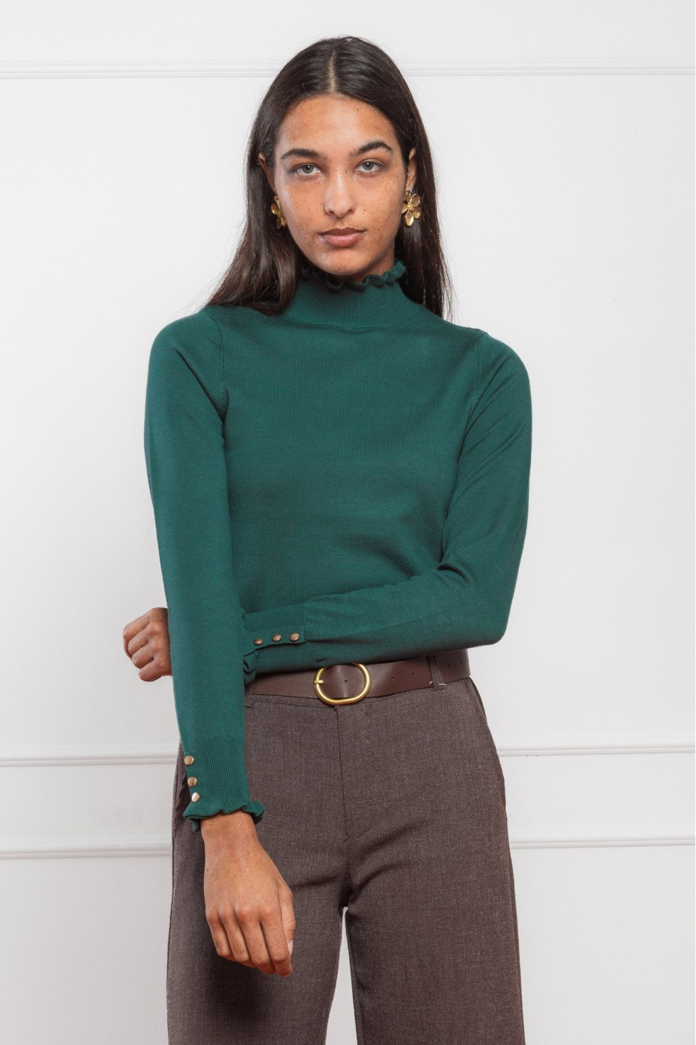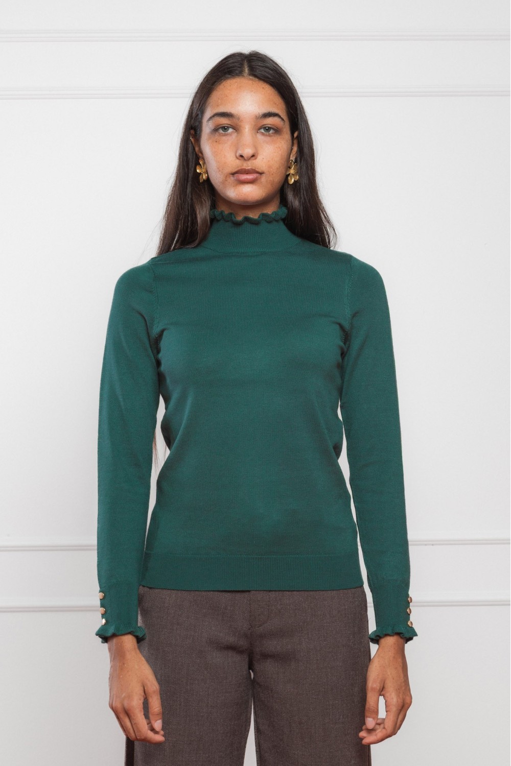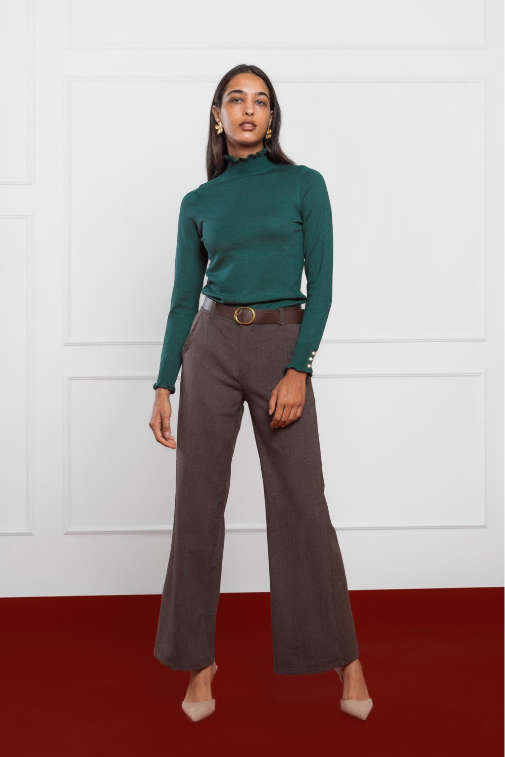 Model je visok 175 cm i nosi veličinu V34.