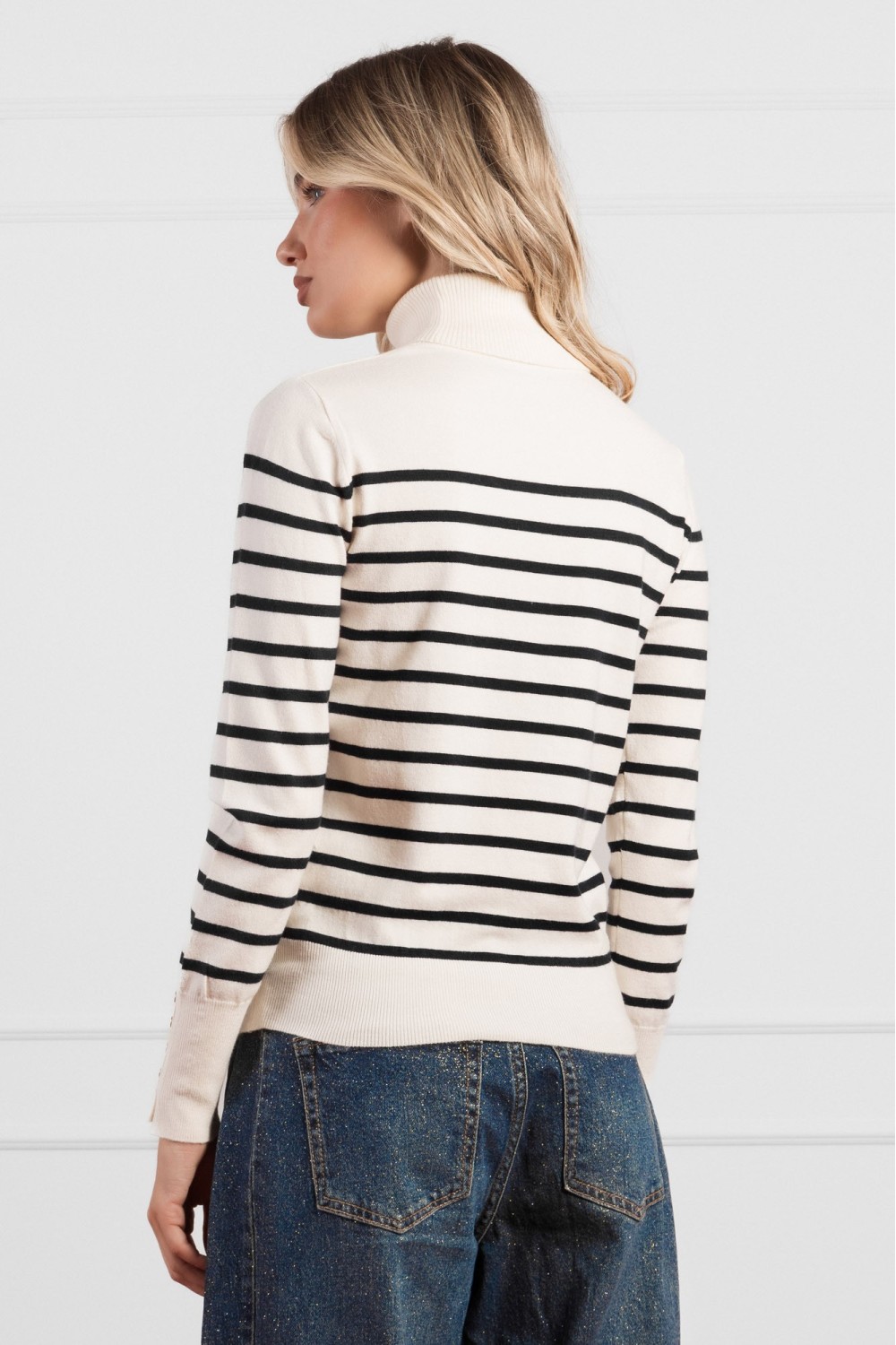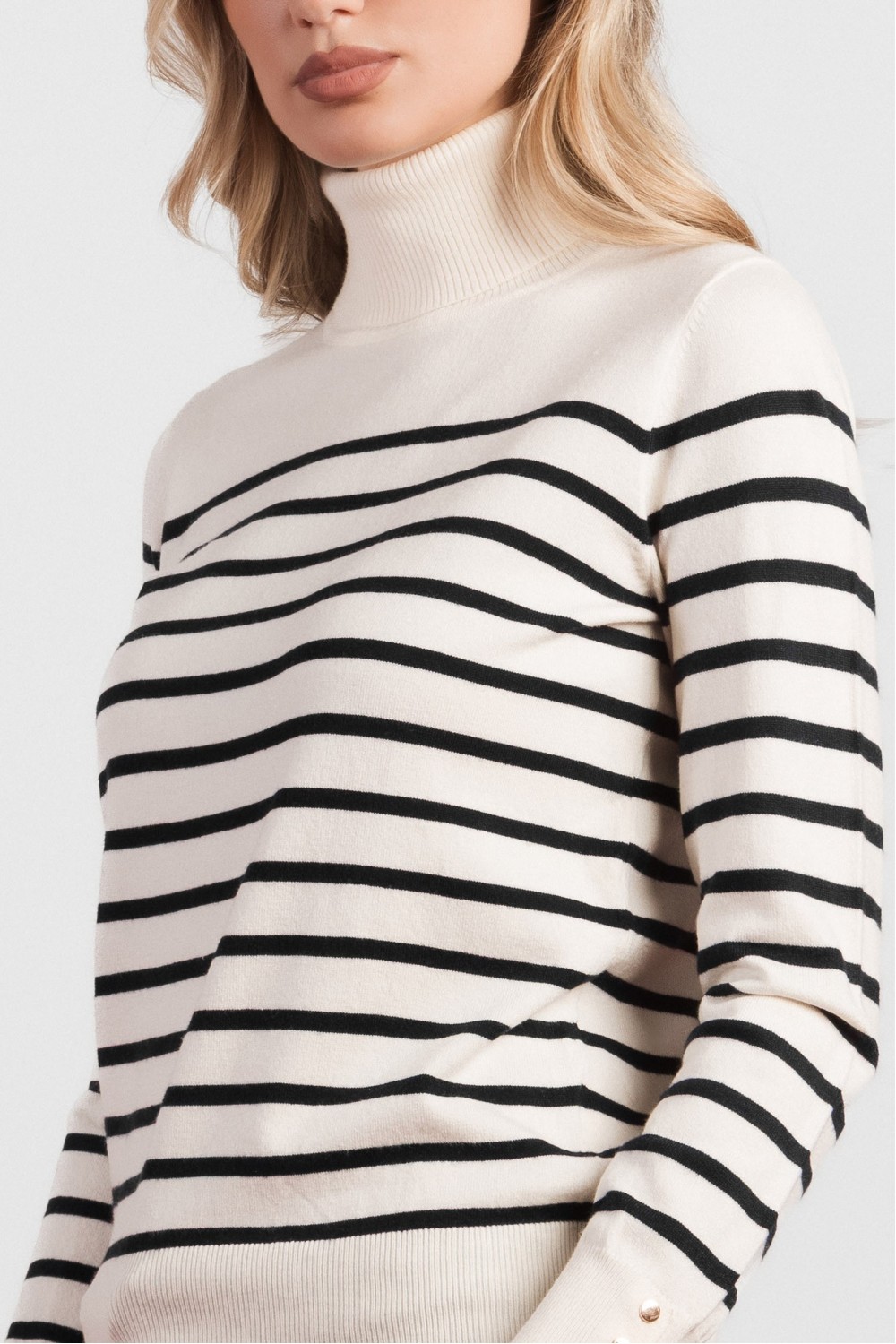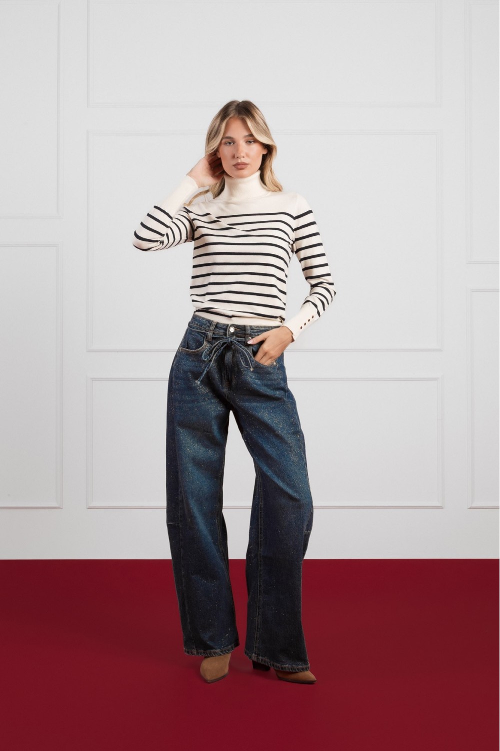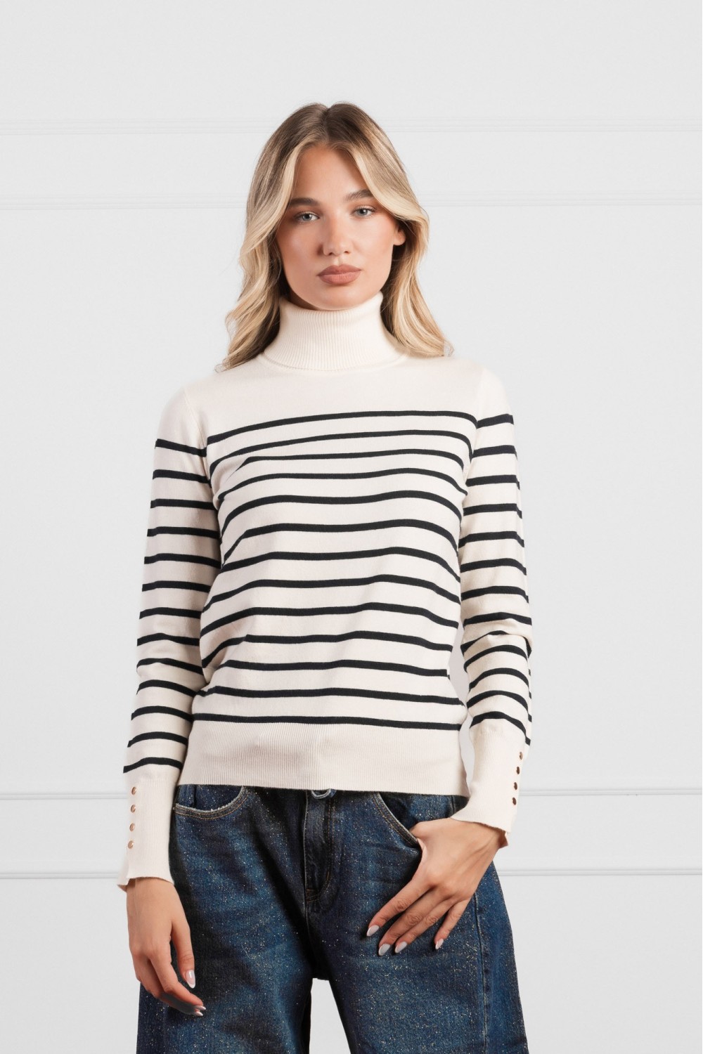 Tamnoplava dolčevita s dugim rukavima odiše elegancijom i praktičnošću. Diskretni sjajni detalji na ovratniku i manžetama daju profinjen izgled, dok klasičan kroj osigurava udobnost i lako k..