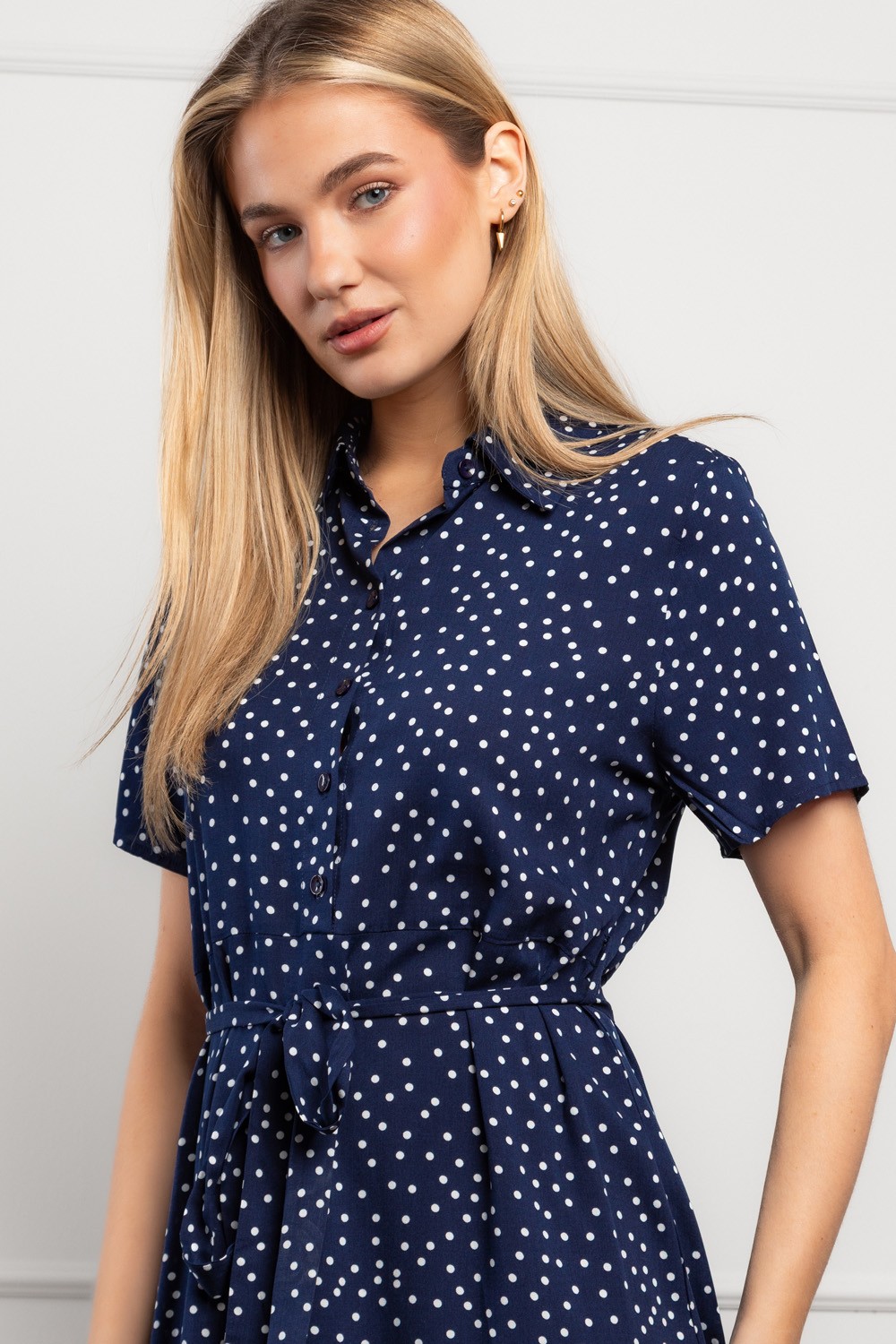 Model dolazi s kragnom i kopčanjem na gumbe, što joj daje decentan, ali profinjen izgled. Vezica u struku omogućuje prilagodbu širine i lijepo naglašava siluetu. Kratki rukavi i lepršavi kroj čine je praktičnom i nosivom u raznim prilikama – od posla, šetnje gradom do opuštenih večernjih druženja.