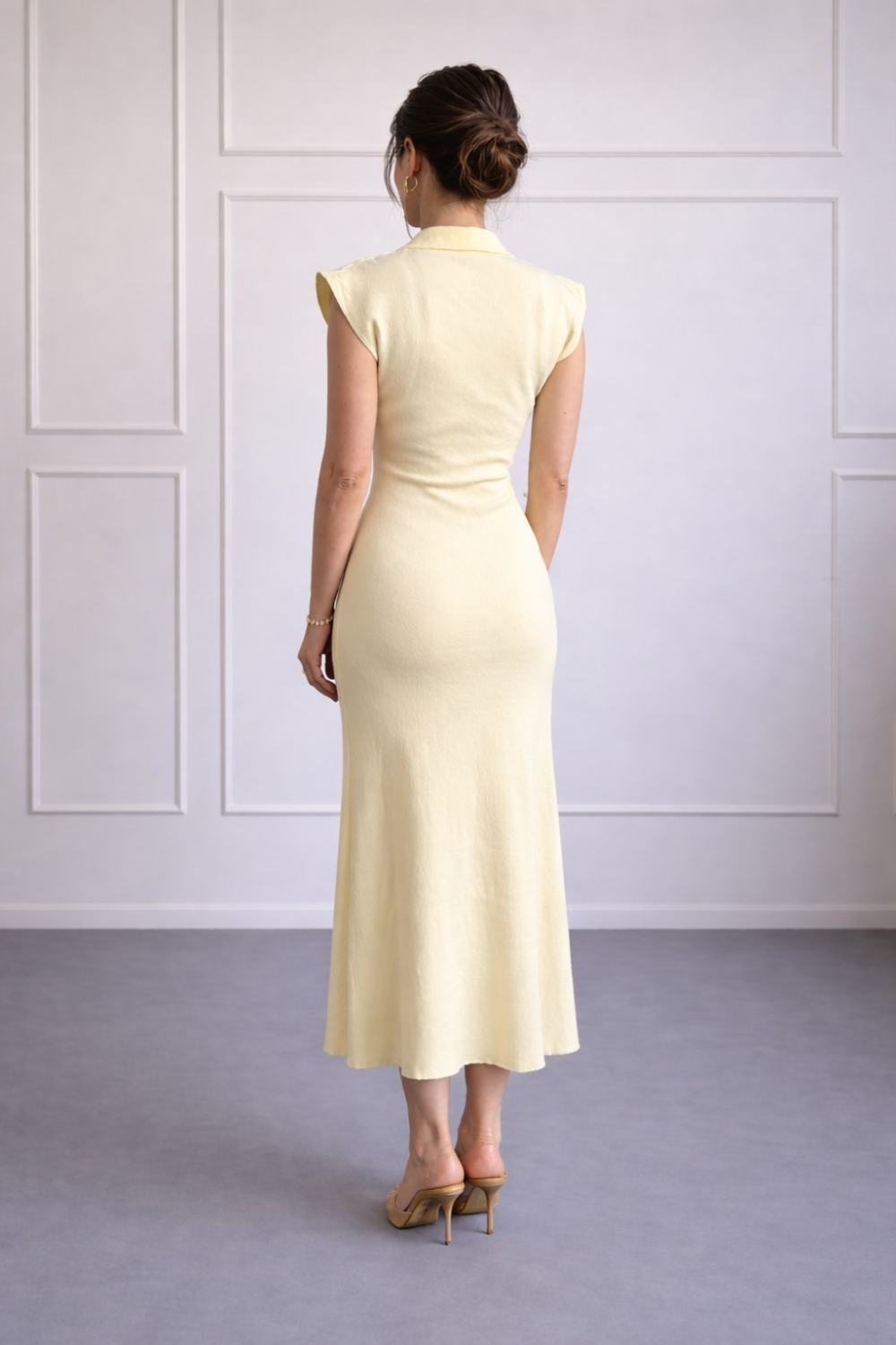 Prirodna, profinjena i bezvremenska, ova bež midi haljina savršen je izbor za ljubiteljice minimalističkog, ali upečatljivog stila. Košulja kroj s klasičnom kragnom i kopčanjem sprijeda daje..
