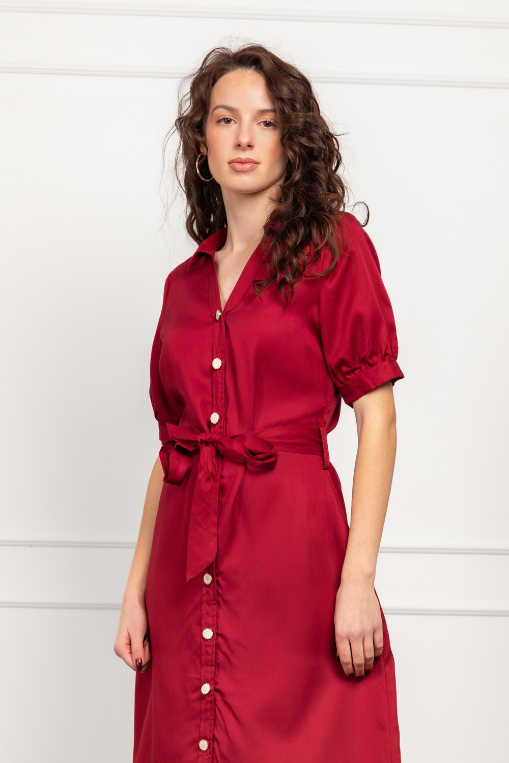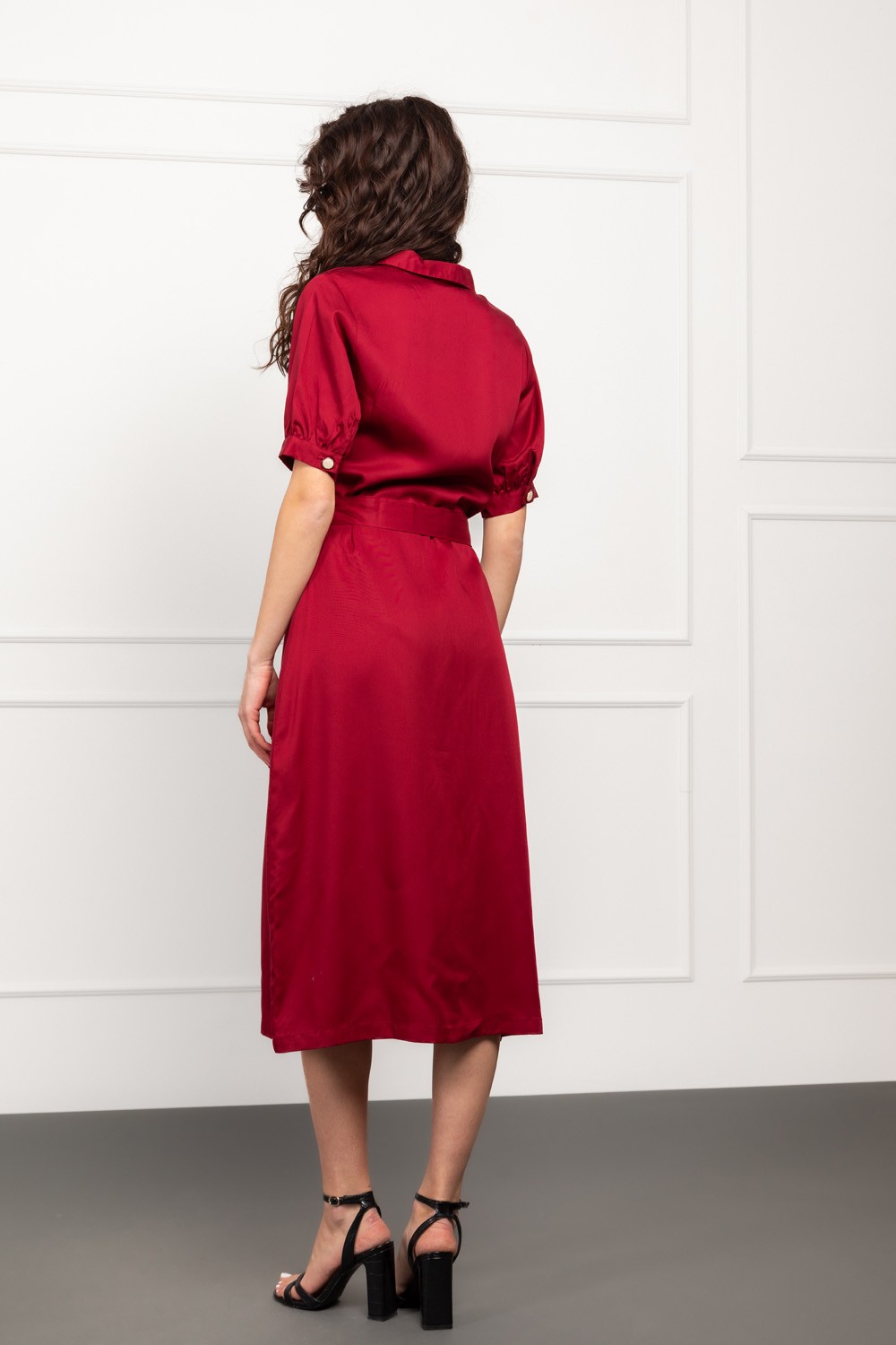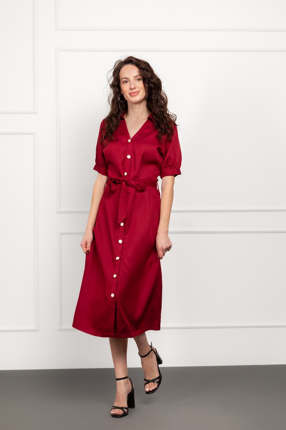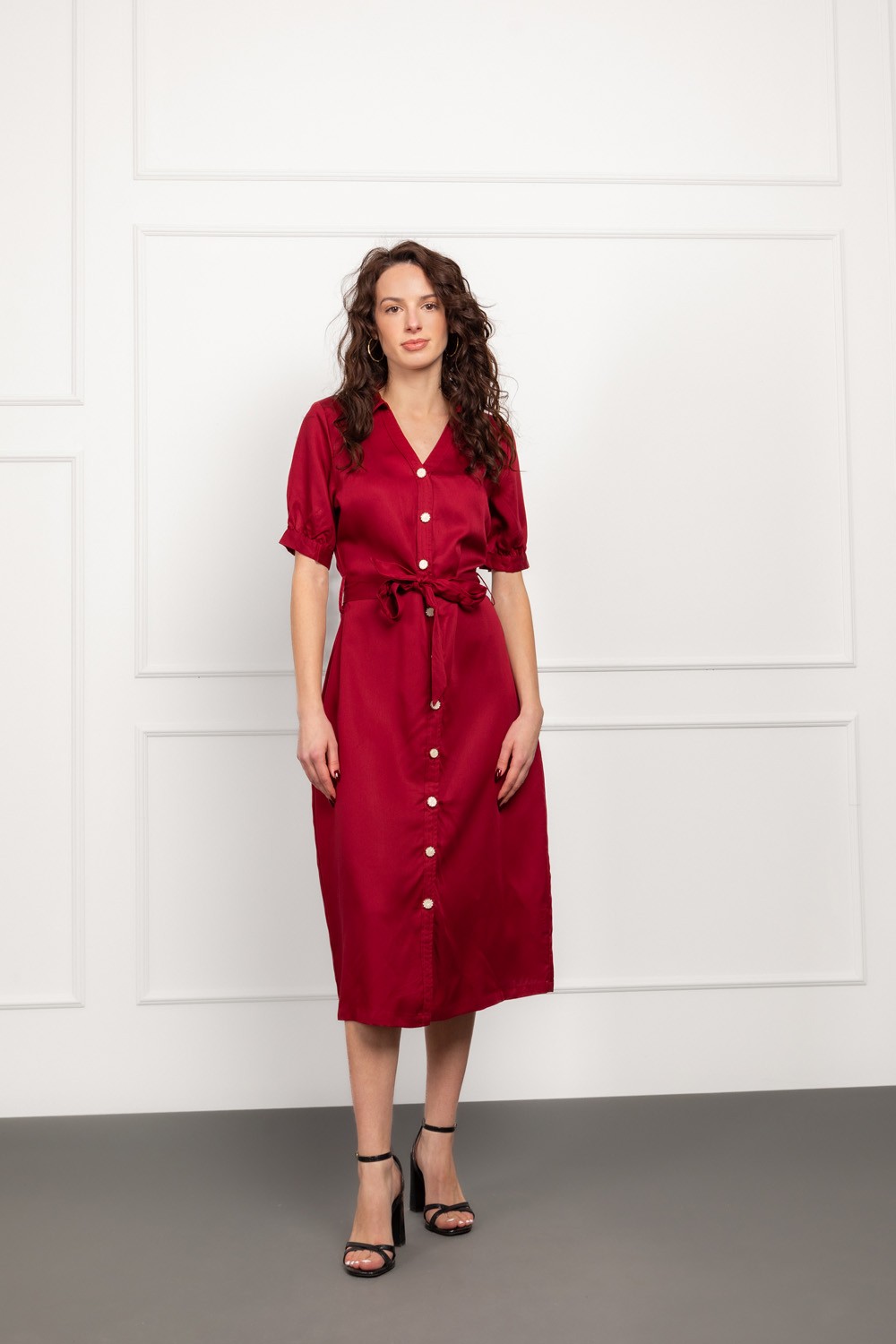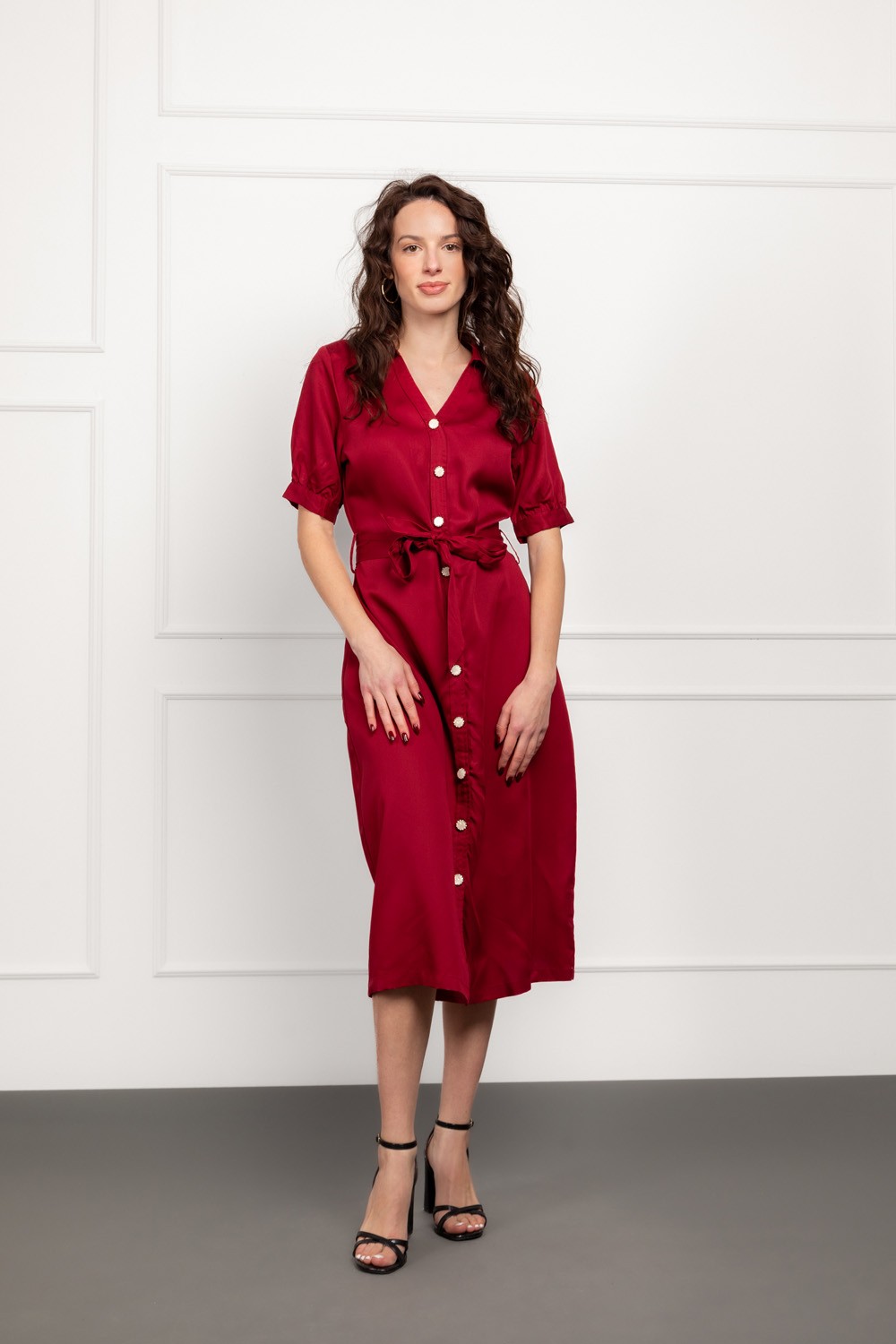 Prirodna, profinjena i bezvremenska, ova bež midi haljina savršen je izbor za ljubiteljice minimalističkog, ali upečatljivog stila. Košulja kroj s klasičnom kragnom i kopčanjem sprijeda daje..