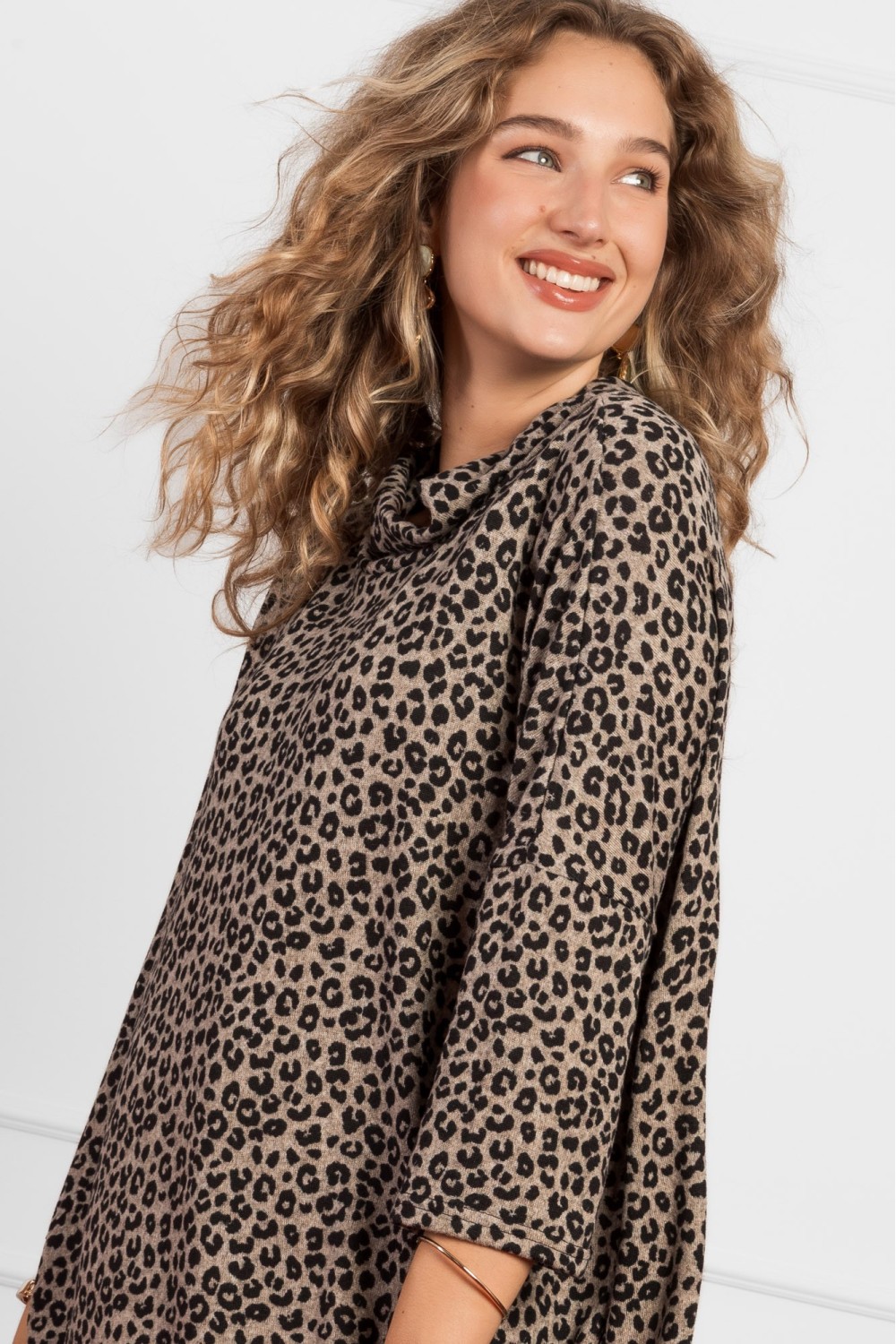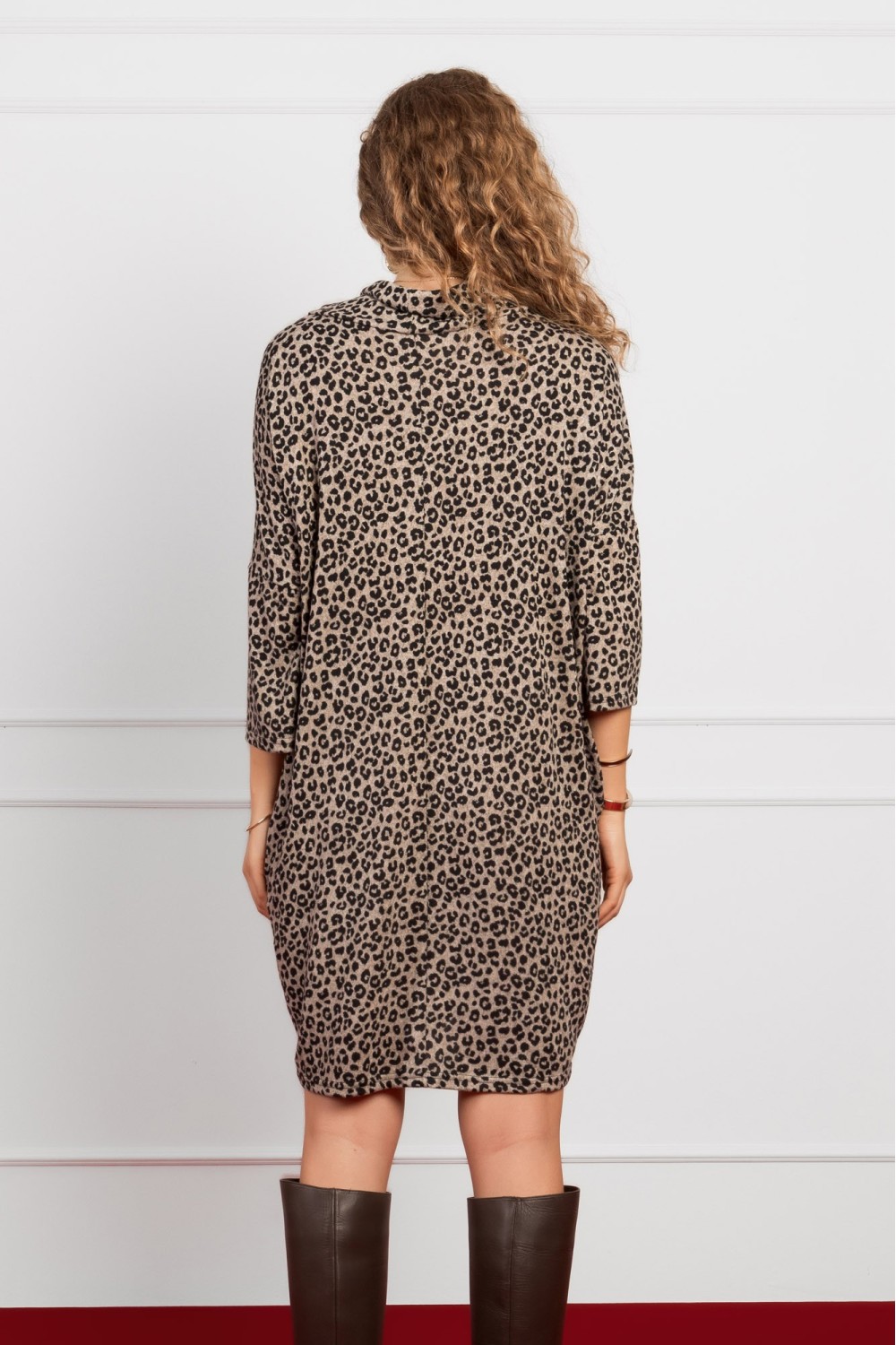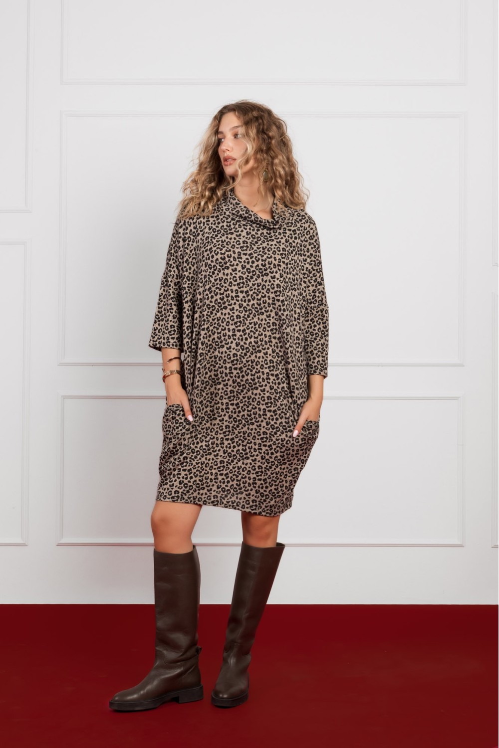 Ova haljina dugih rukava s modernim zebra uzorkom donosi kombinaciju elegancije i odvažnosti. Kopčanje sprijeda i remen u struku naglašavaju figuru, dok lepršavi kroj osigurava udobnost kroz..