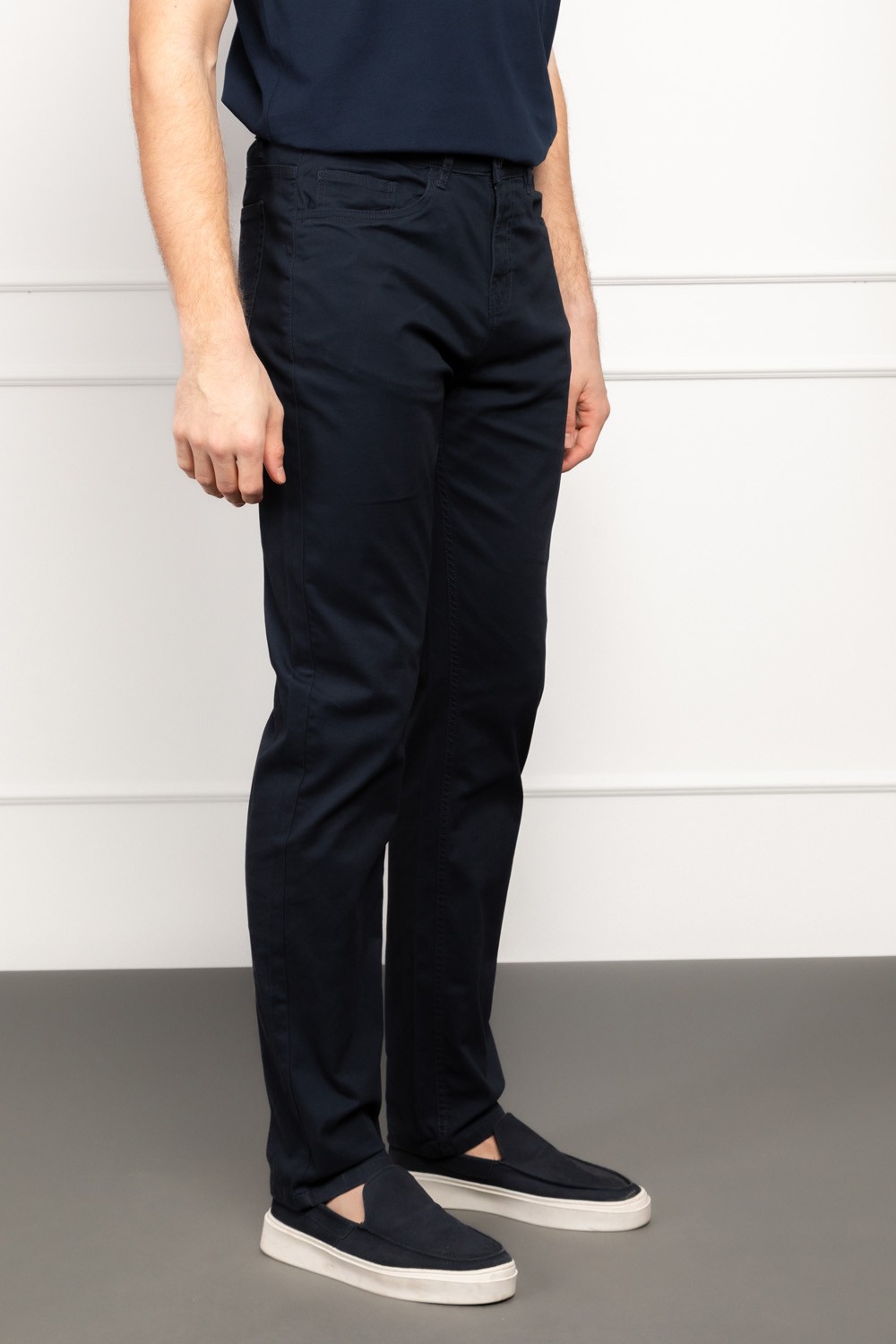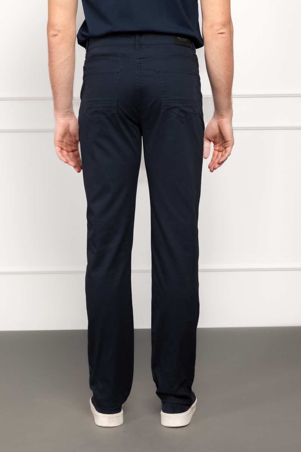 Kroj je ravan i udoban, a dodatak elastina osigurava bolju pokretljivost i ugodu pri nošenju kroz cijeli dan. Tamno plava nijansa lako se slaže uz bijele, sive, smeđe i svijetloplave tonove pa se bez puno razmišljanja može kombinirati uz većinu muških majica, košulja i tenisica.