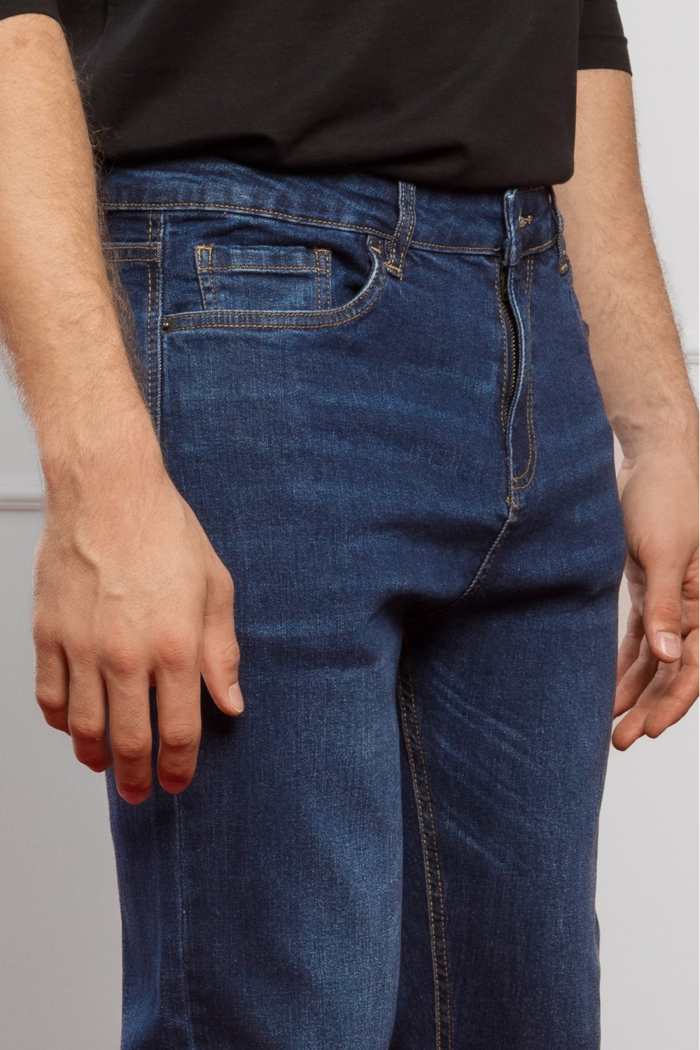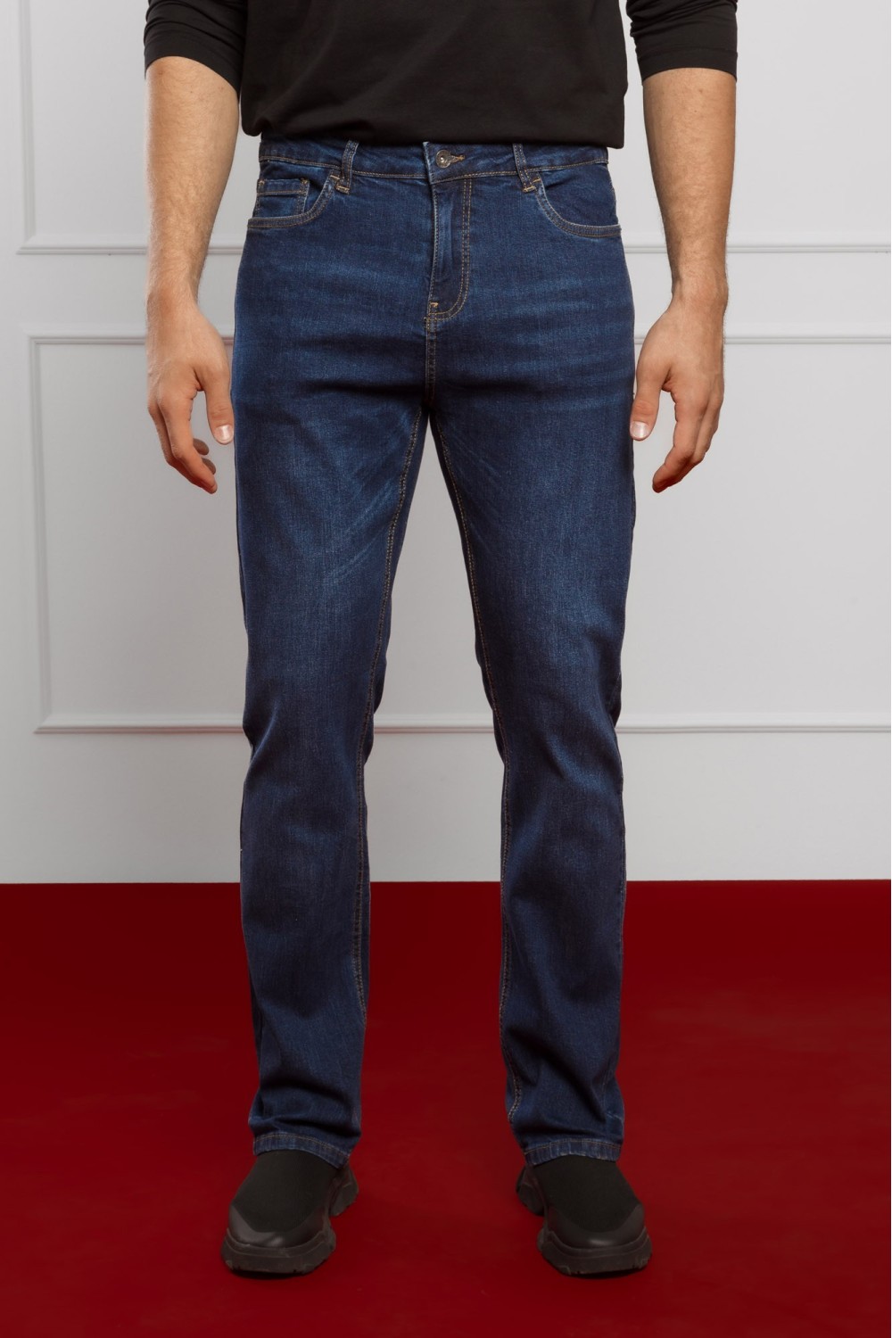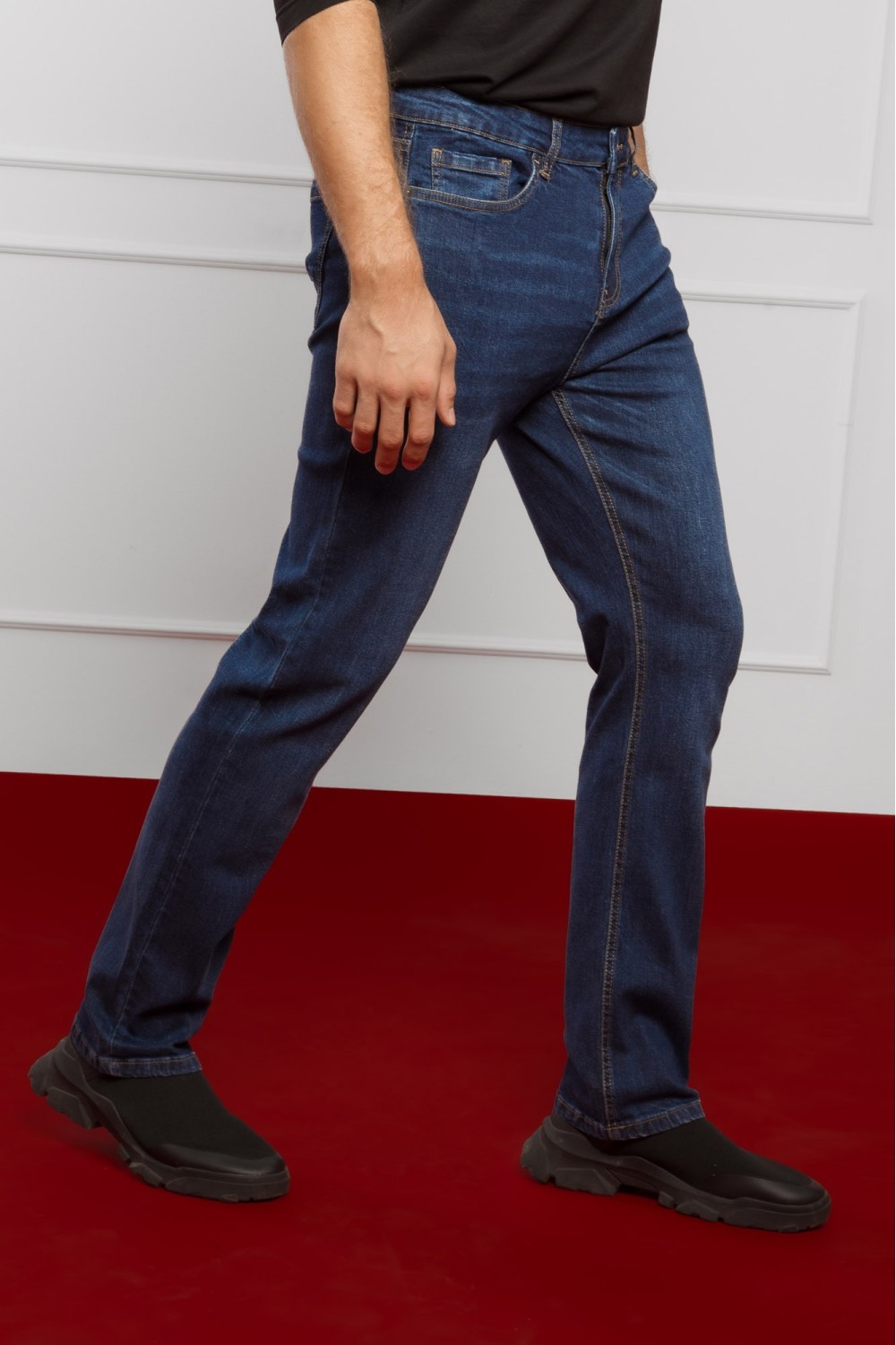 Tamne traper muške hlače, ravnih nogavica. Regular fit nosivost. Pet džepova, kopčanje sprijeda patent zatvaračem i gumbom.-98% PAMUK, 2% ELASTINModel je visok 190 cm i nosi veličinu S32...