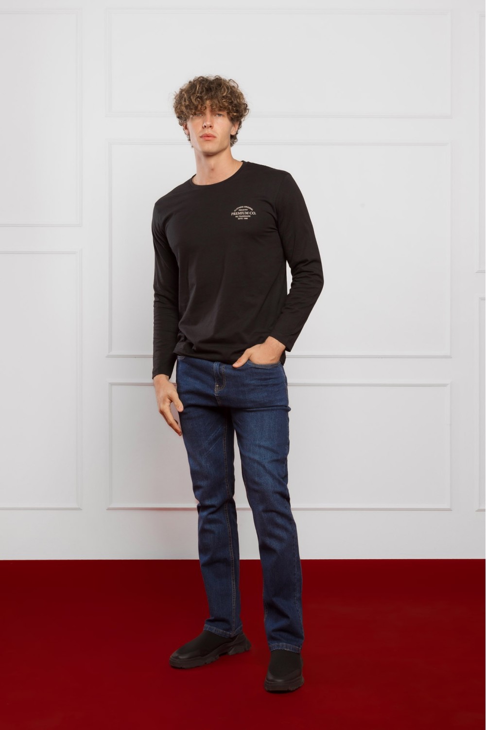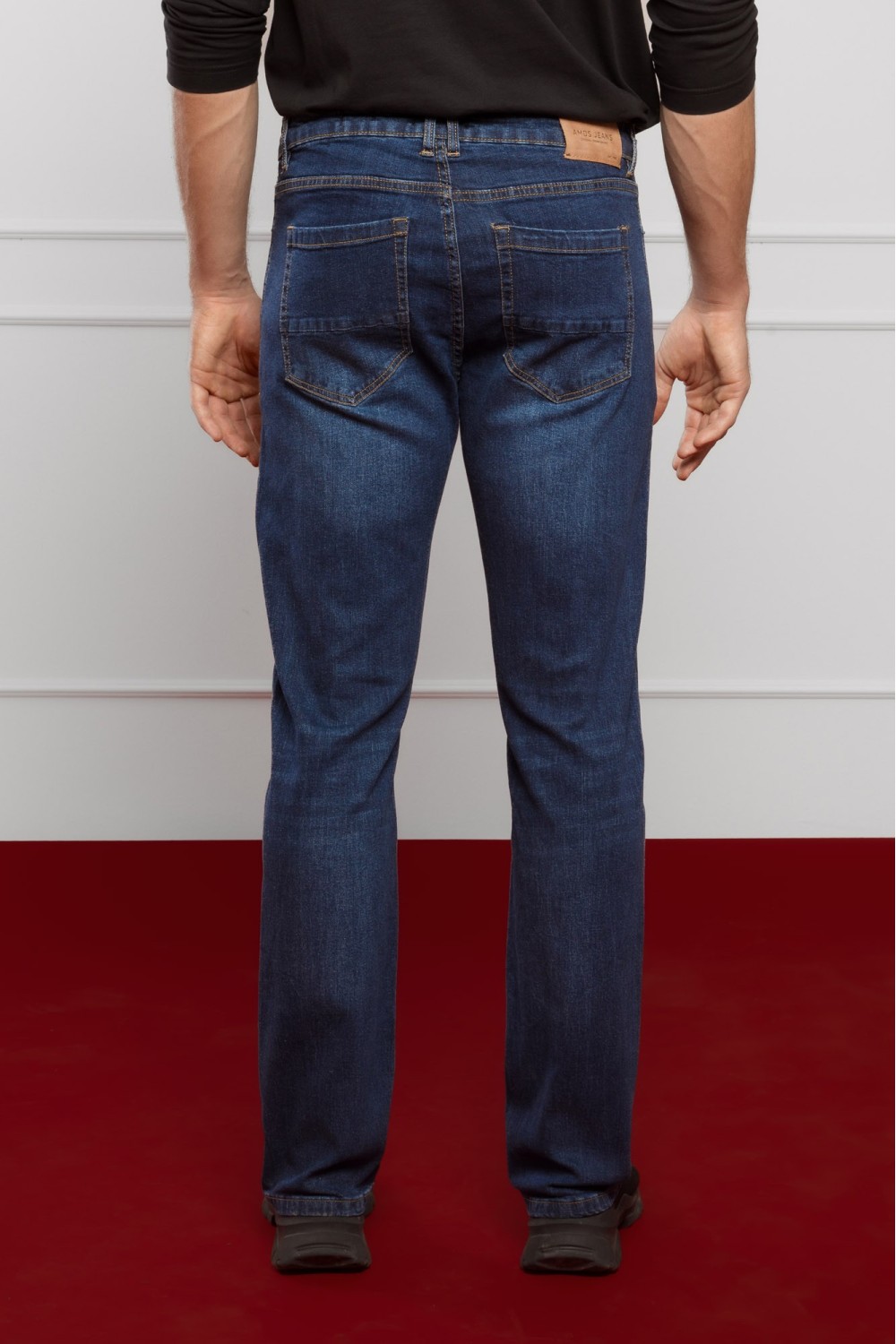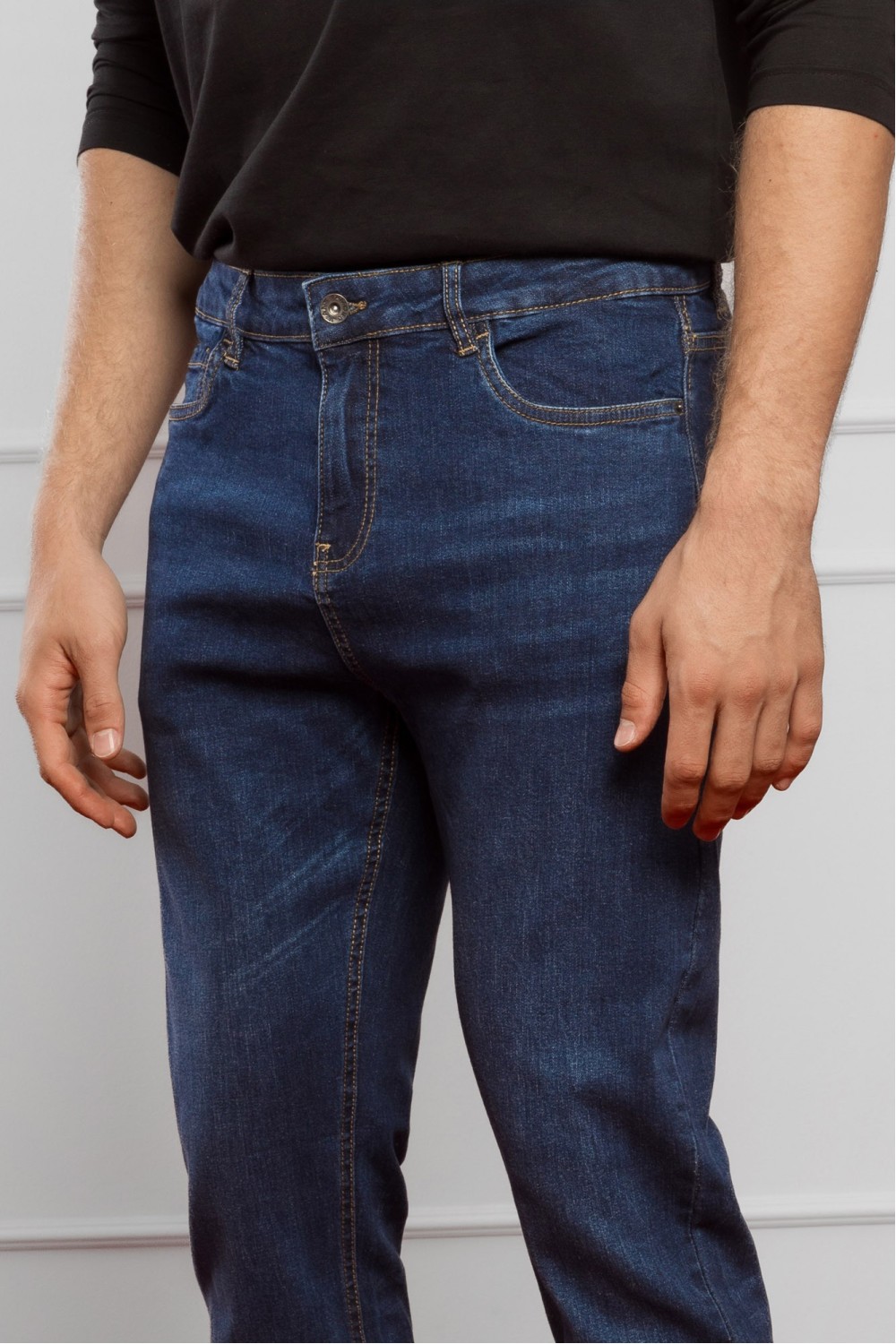 Tamne traper muške hlače, ravnih nogavica. Regular fit nosivost. Pet džepova, kopčanje sprijeda patent zatvaračem i gumbom.-98% PAMUK, 2% ELASTINModel je visok 190 cm i nosi veličinu S32...