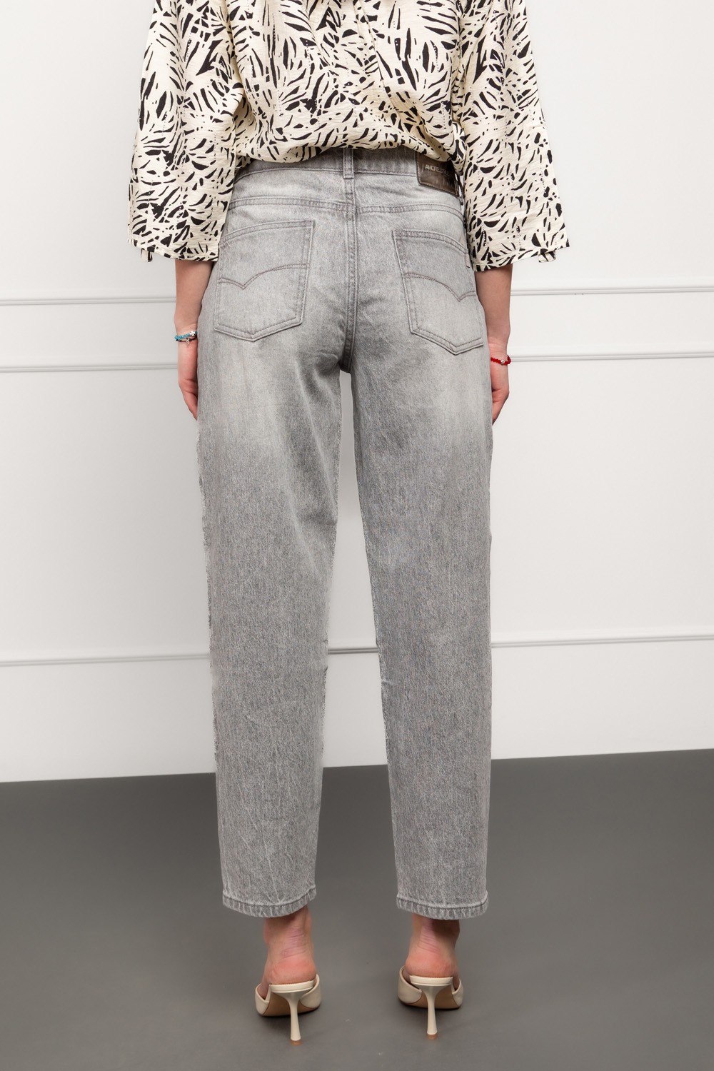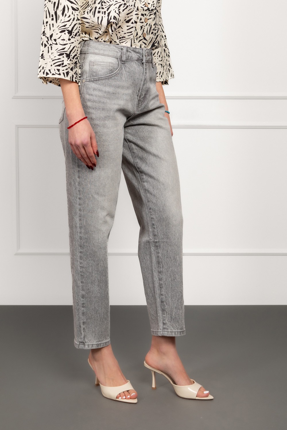 Sive regular high waist traper hlače odličan su izbor za one koji žele alternativu klasičnom plavom ili crnom denimu. Kroj je ležeran i ugodan za svakodnevno nošenje. Sivi denim izgleda vrlo urbano i lako se kombinira s neutralnim tonovima, bijelim T-shirtom, košuljama ili sakoom.