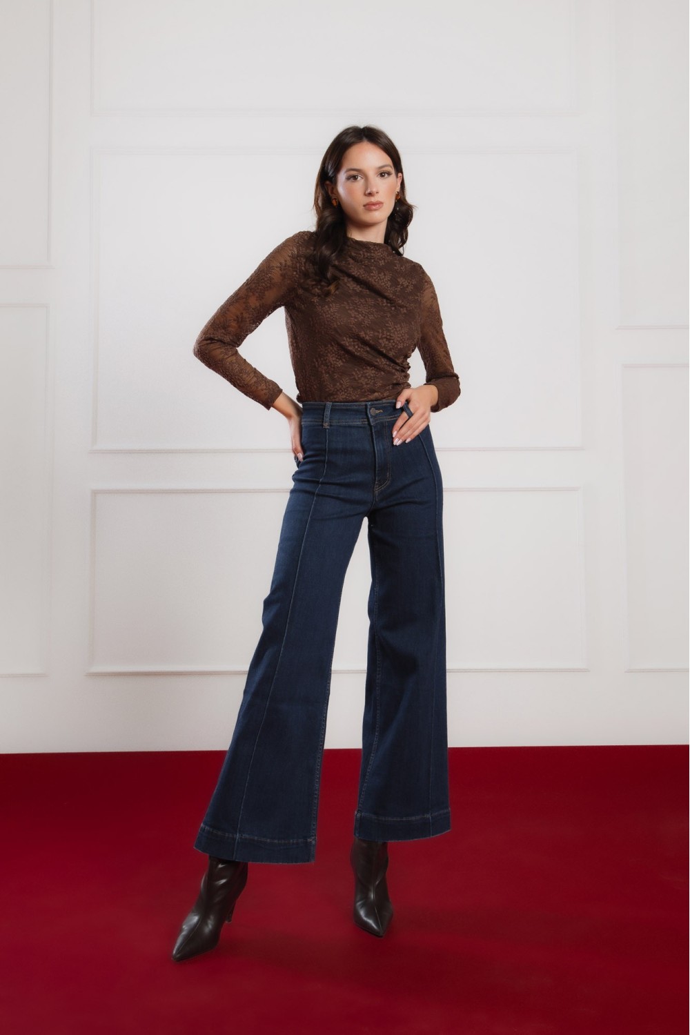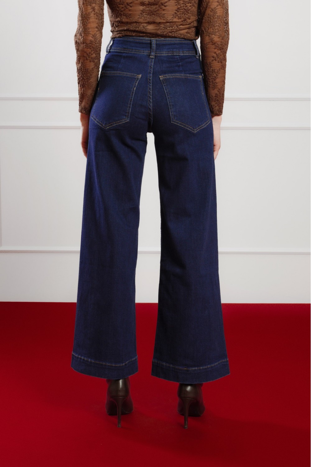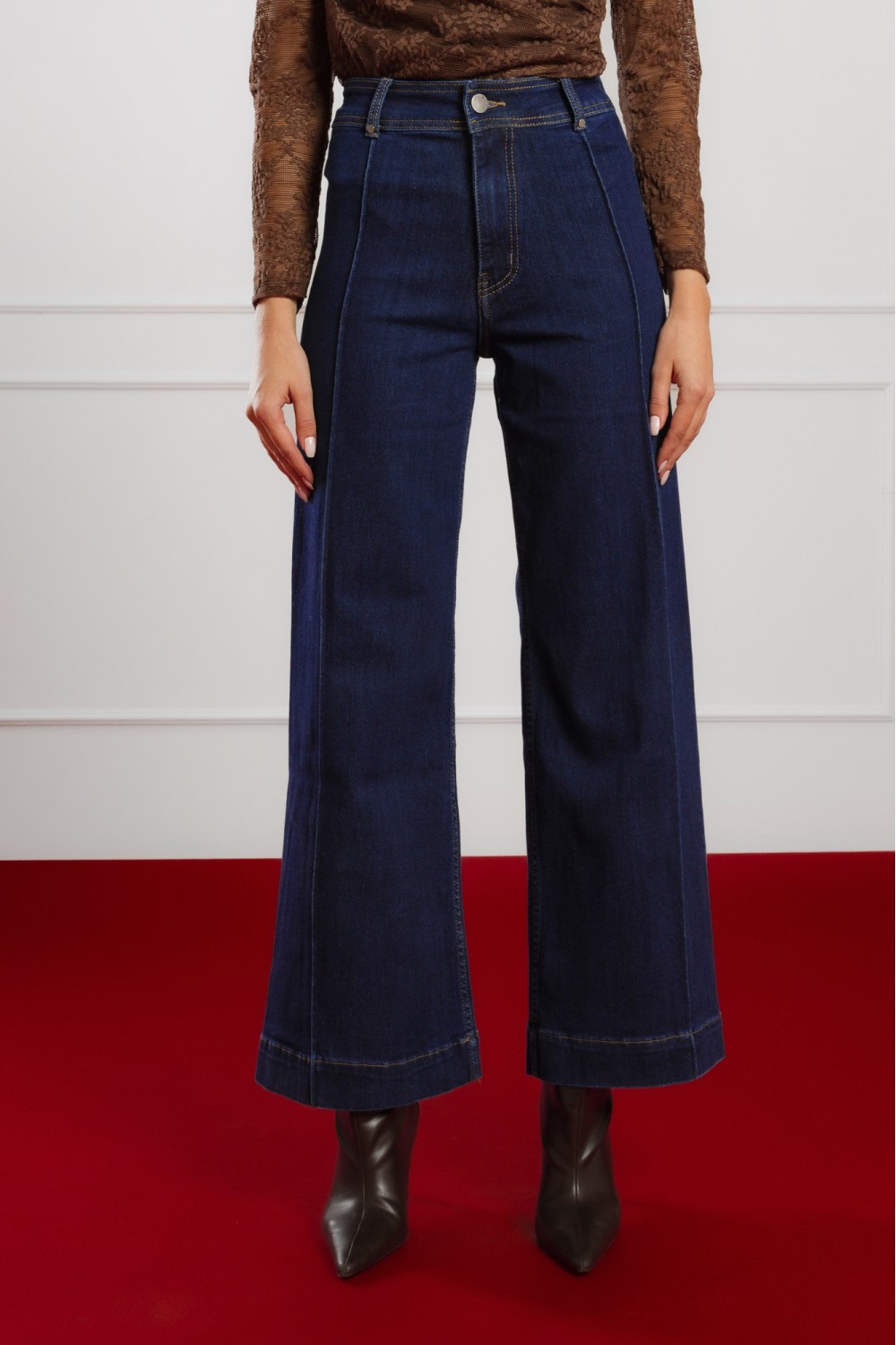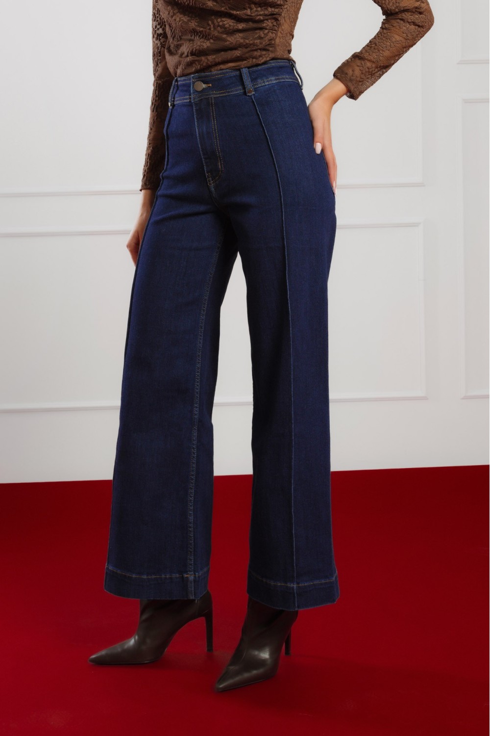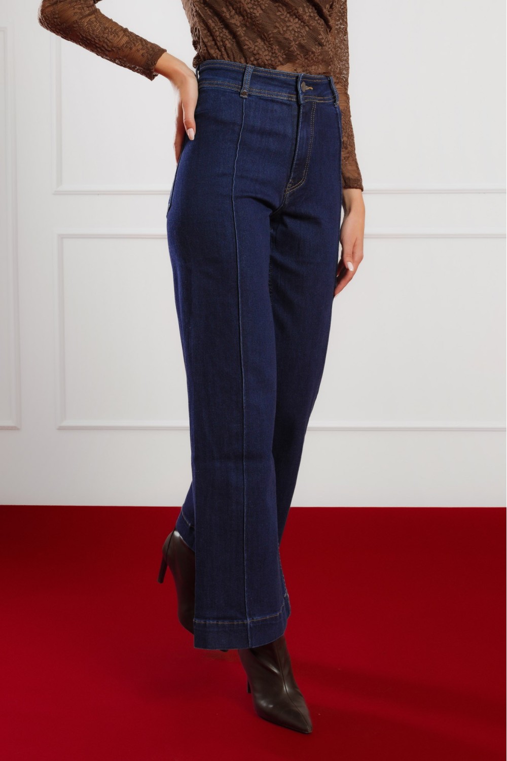 Svijetloplave traperice širokog kroja donose ležeran i opušten izgled. Izrađene od čvrstog trapera s laganim “ispranim” efektom. Može se kombinirati od jednostavne bijele majice do elegantne..