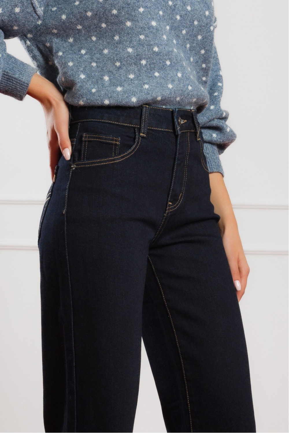 Klasične traper hlače bootcut kroja – bezvremenski komad koji svaka žena treba u ormaru. Izrađene od 99% pamuka s dodatkom elastina, pružaju udobnost i savršeno pristajanje uz tijelo. Tamno ..