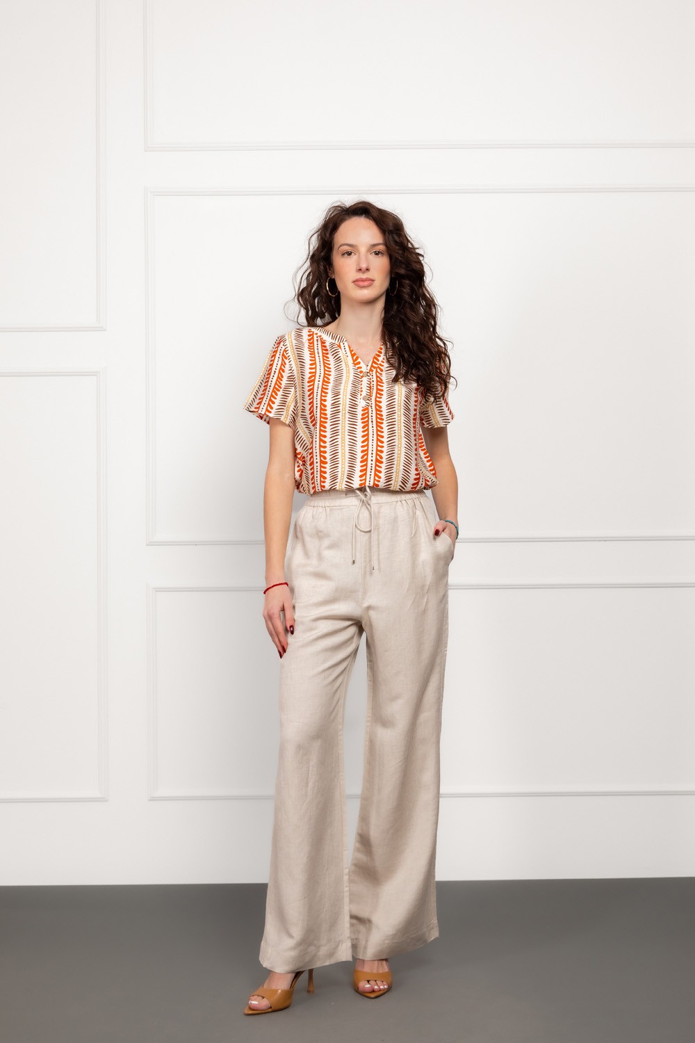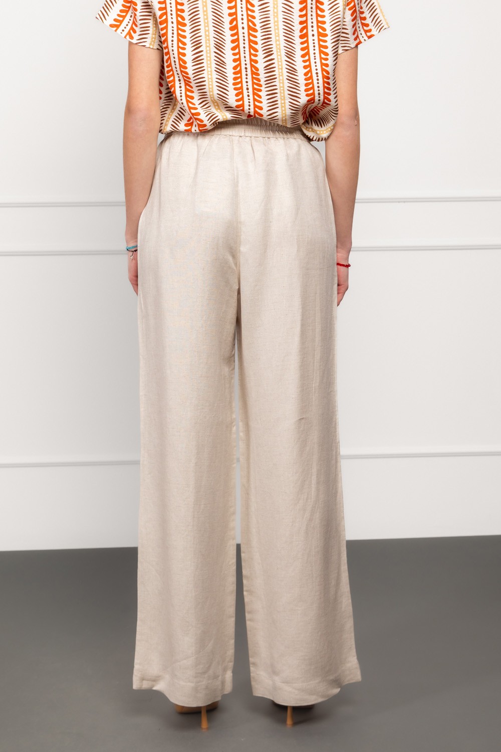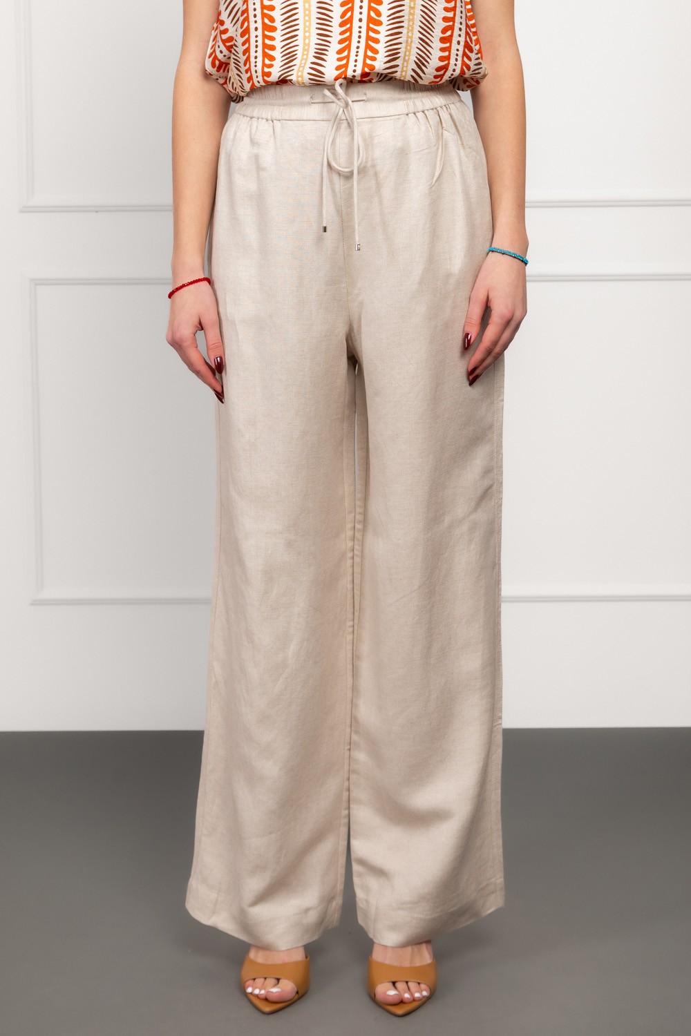 Bež hlače od lana i viskoze su savršen izbor za tople dane kad želiš da ti je ugodno, ali da i dalje izgledaš sređeno. Kroj je opušten sa gumicom u struku i vezicom što pruža odličnu prilagodljivost bez stezanja i bez drame. Materijal je lagan, prozračan i prirodnog izgleda