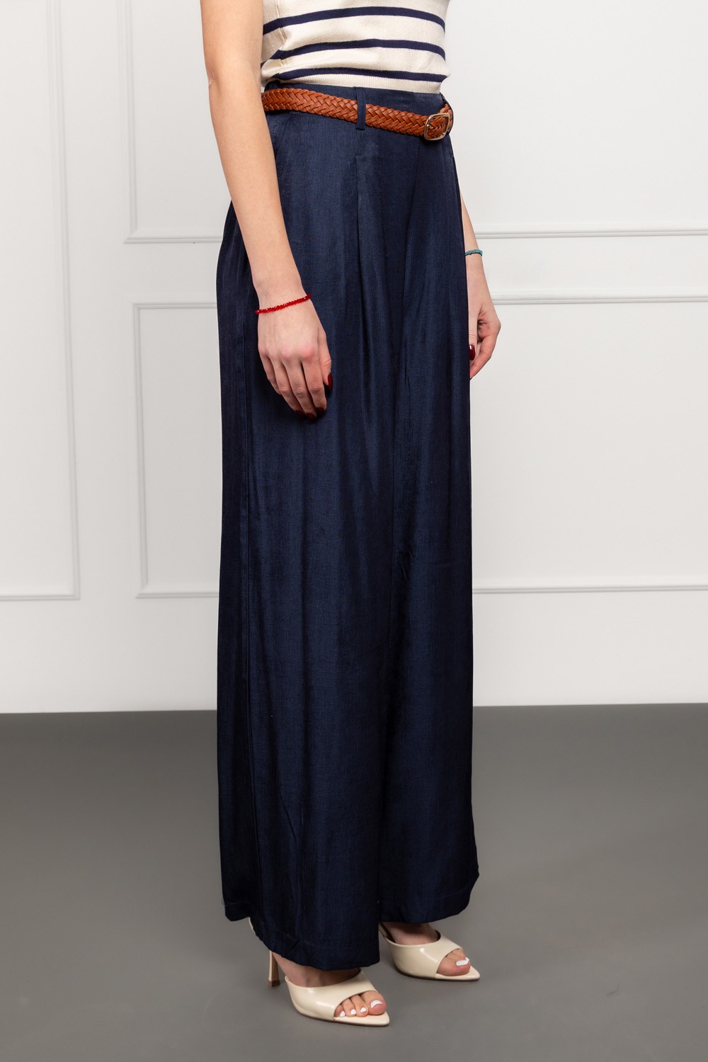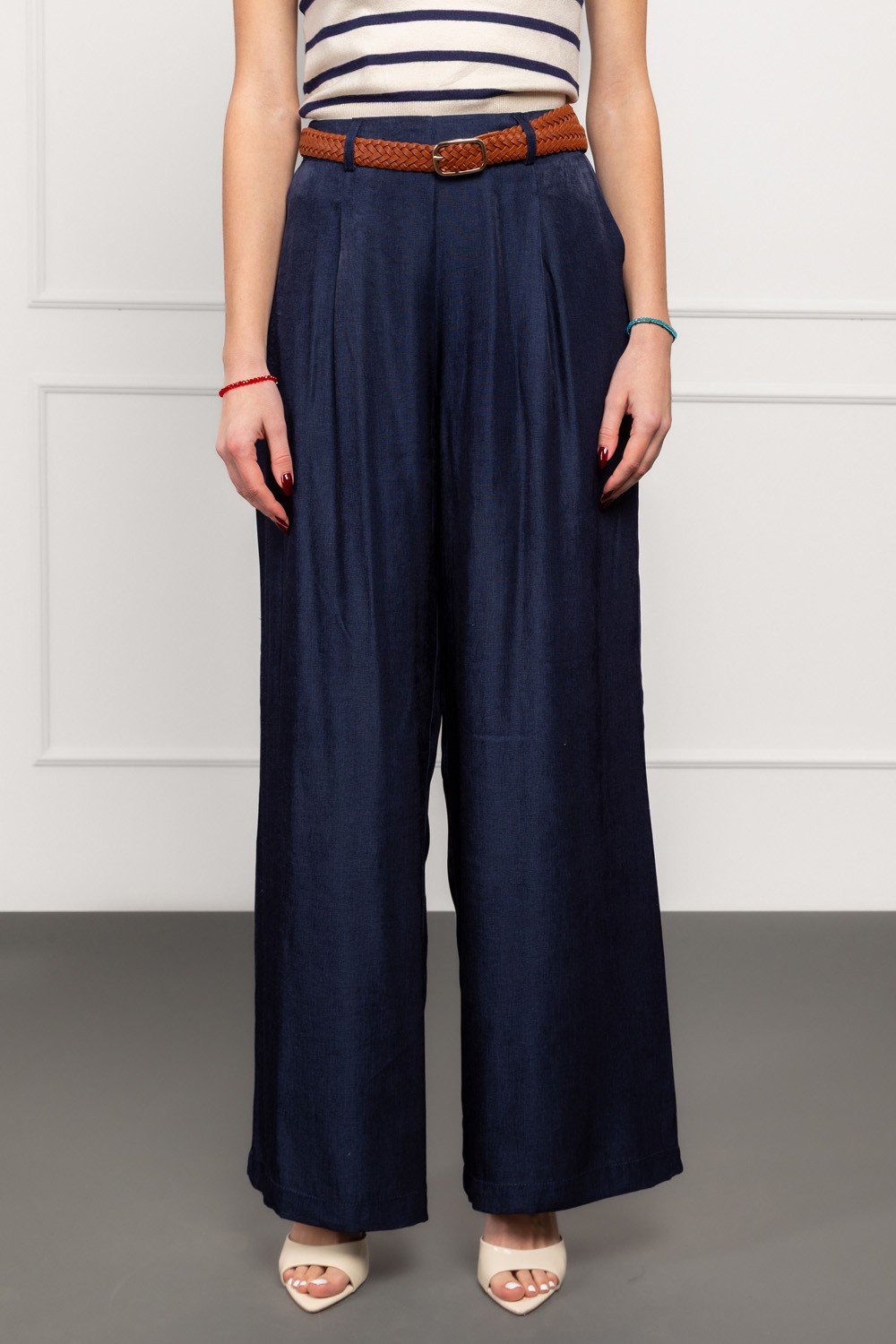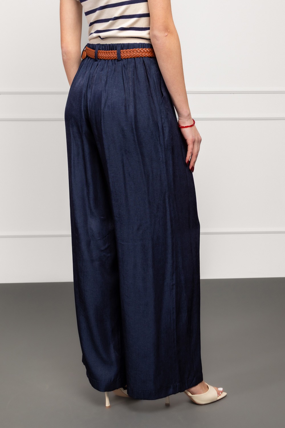 Bež hlače od čistog pamuka savršene su za one koji vole prirodne, prozračne i ugodne materijale. Kroj je ležeran s blagim naborima u prednjoj zoni, što vizualno omekšava siluetu i daje moder..