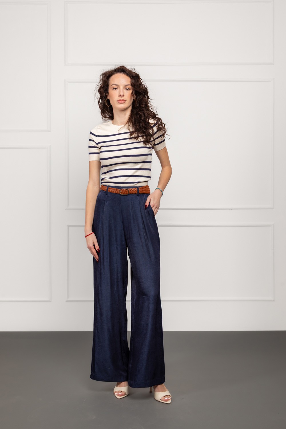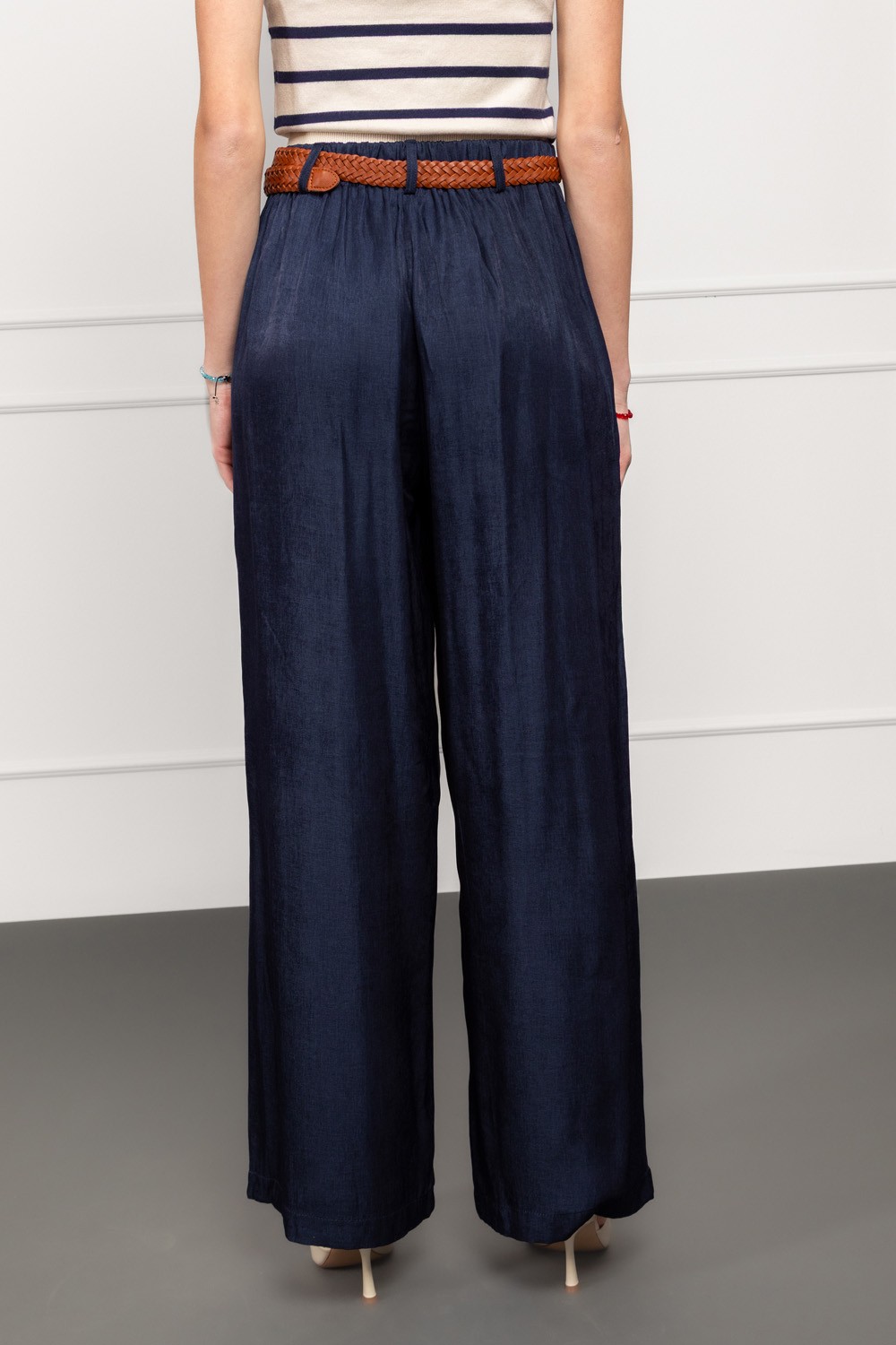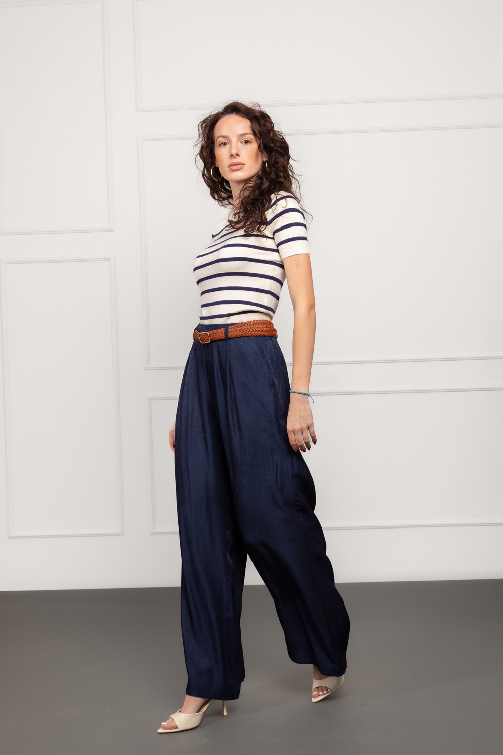 Bež hlače od čistog pamuka savršene su za one koji vole prirodne, prozračne i ugodne materijale. Kroj je ležeran s blagim naborima u prednjoj zoni, što vizualno omekšava siluetu i daje moder..