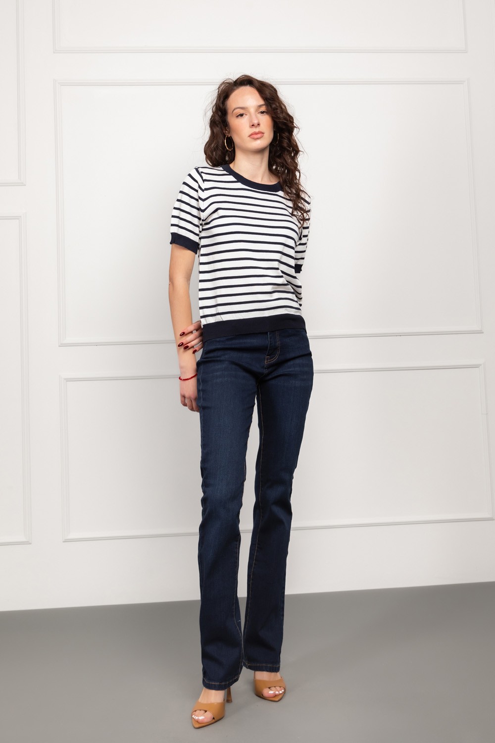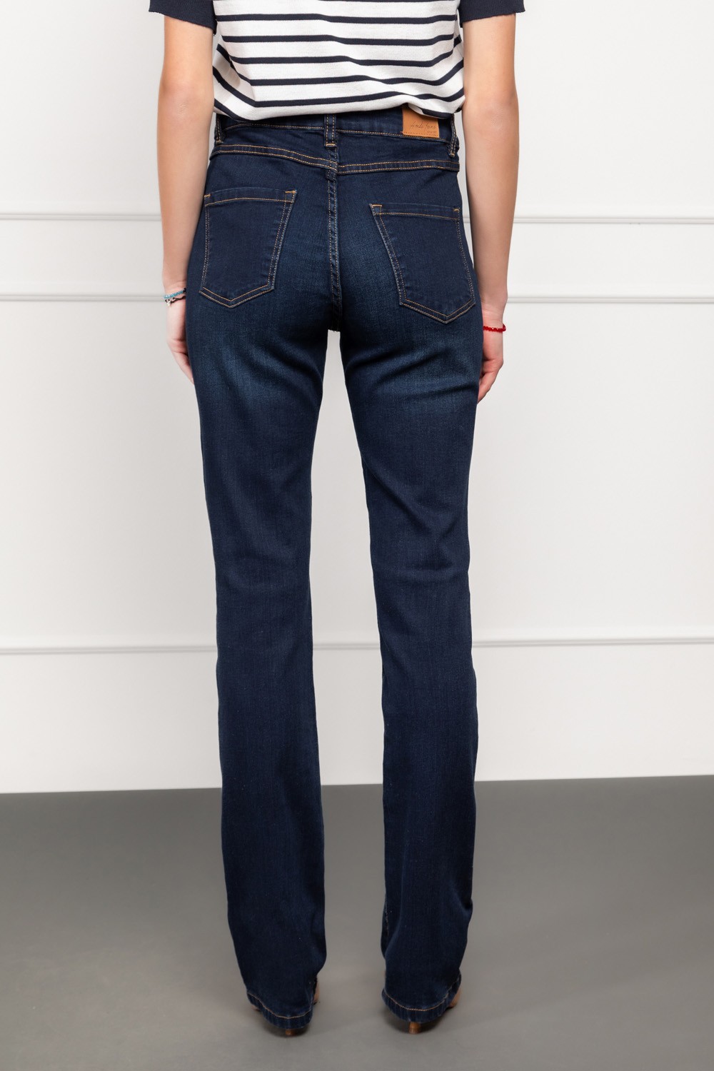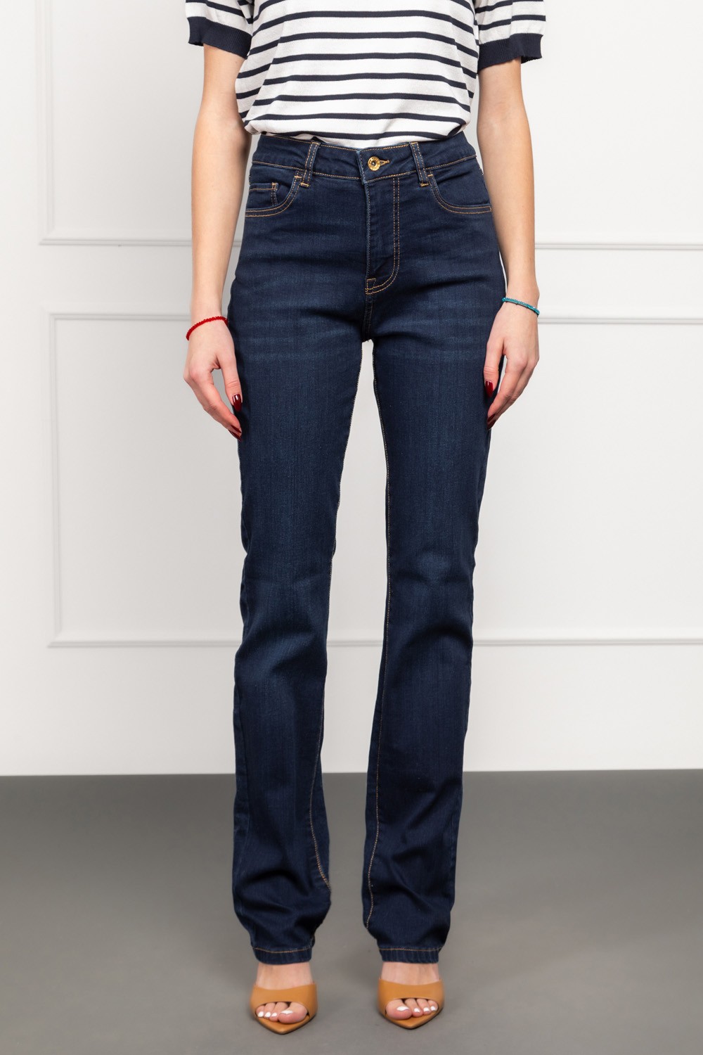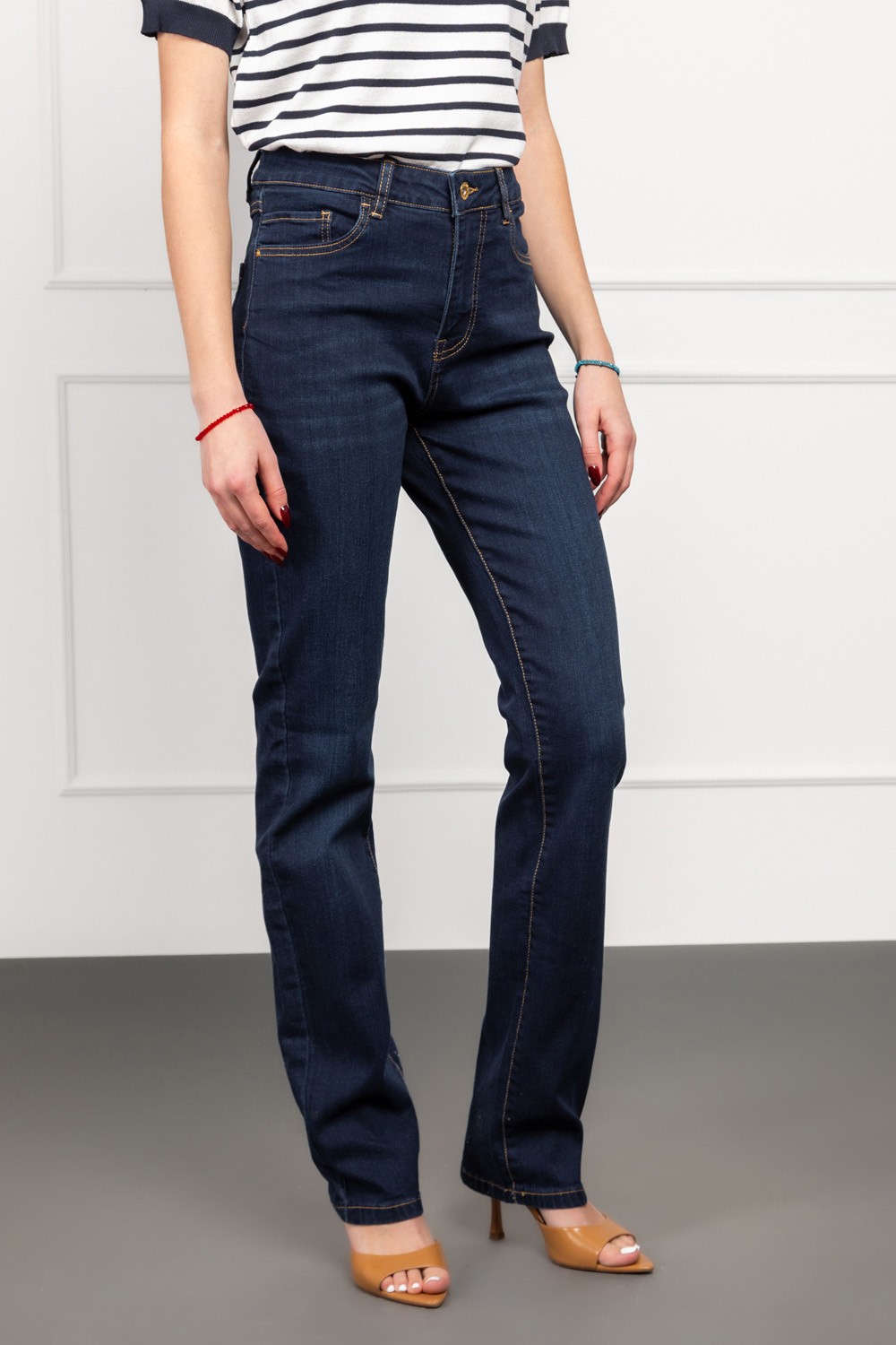 Tamnoplave traper hlače u regular fit kroju klasičan su komad koji se lako uklapa u svakodnevnu garderobu. Zahvaljujući tamnijoj nijansi i čistim linijama izgledaju uredno, a malo elastičnosti u sastavu omogućava udobnost i slobodu pokreta tijekom cijelog dana. Kontrastni šavovi i zlatni gumb daju klasičan denim karakter koji nikad ne izlazi iz mode.