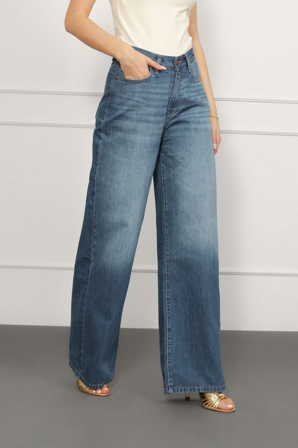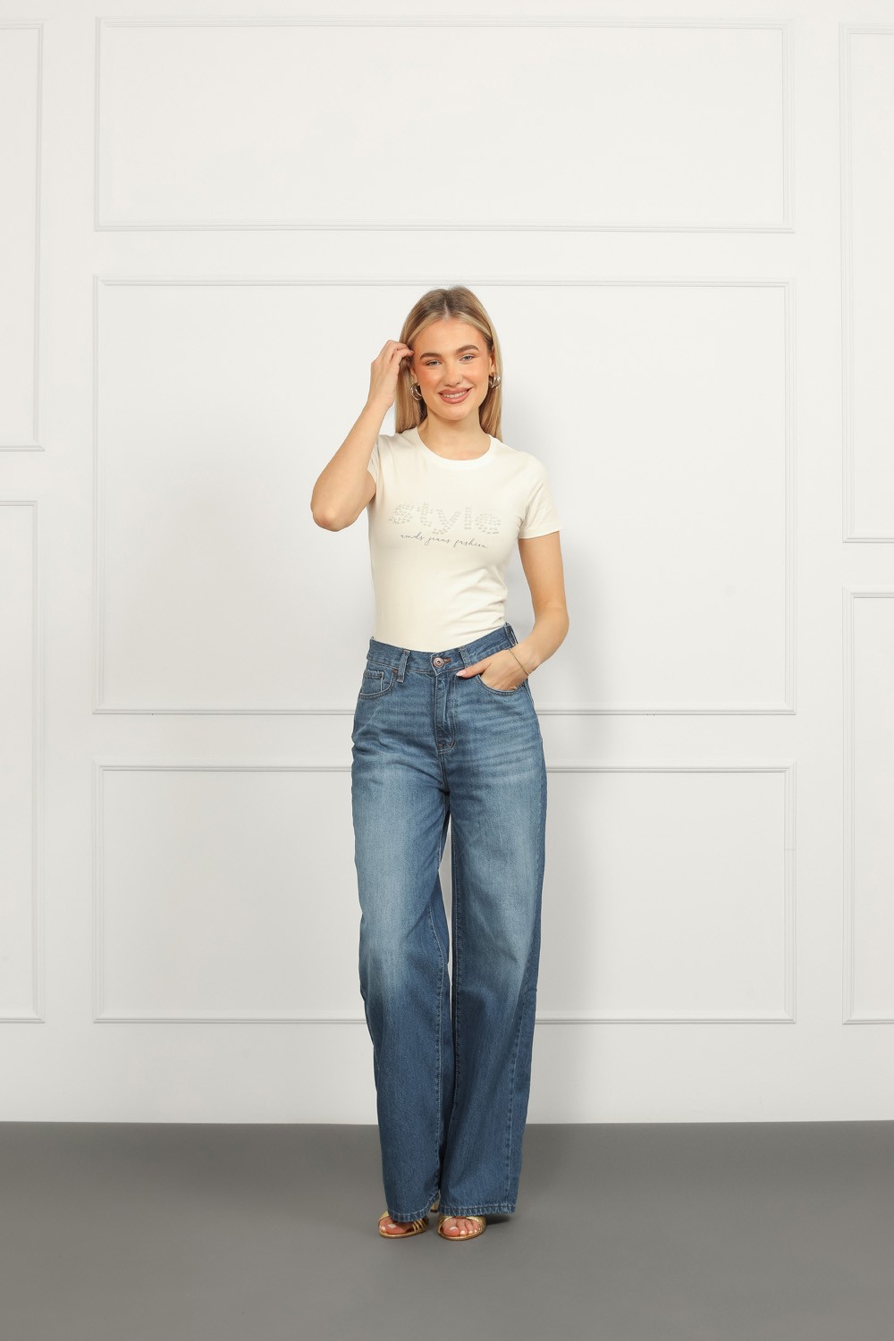 Model je visok 175 cm i nosi veličinu S27.