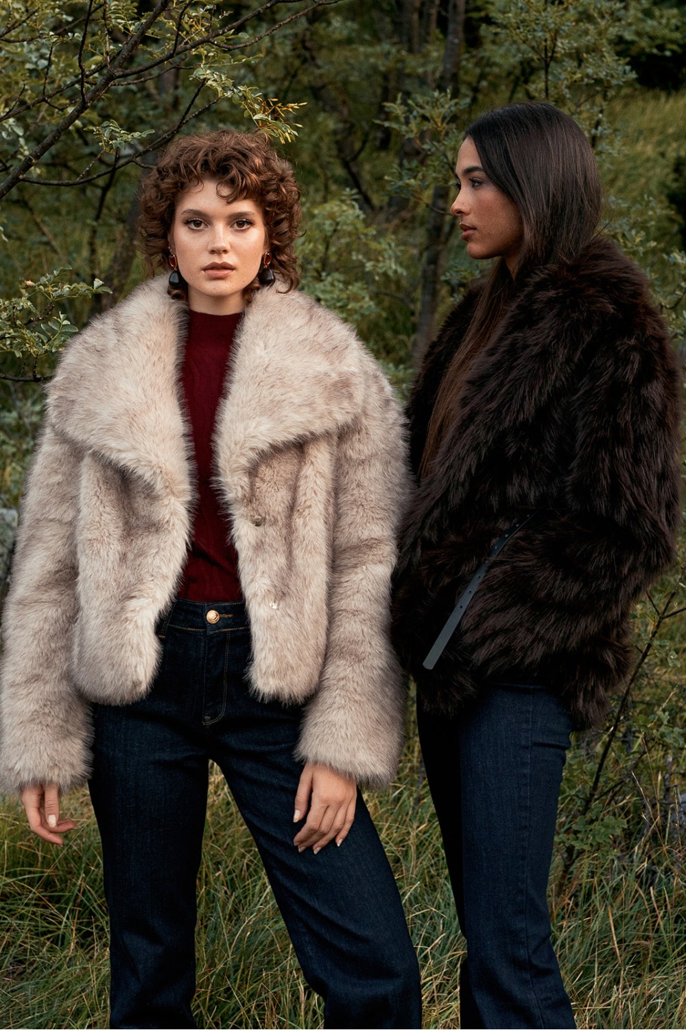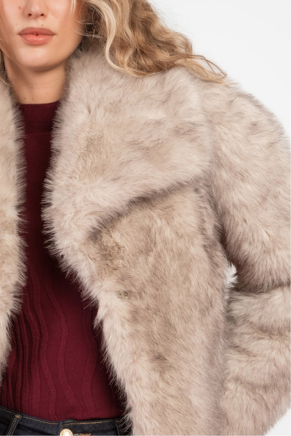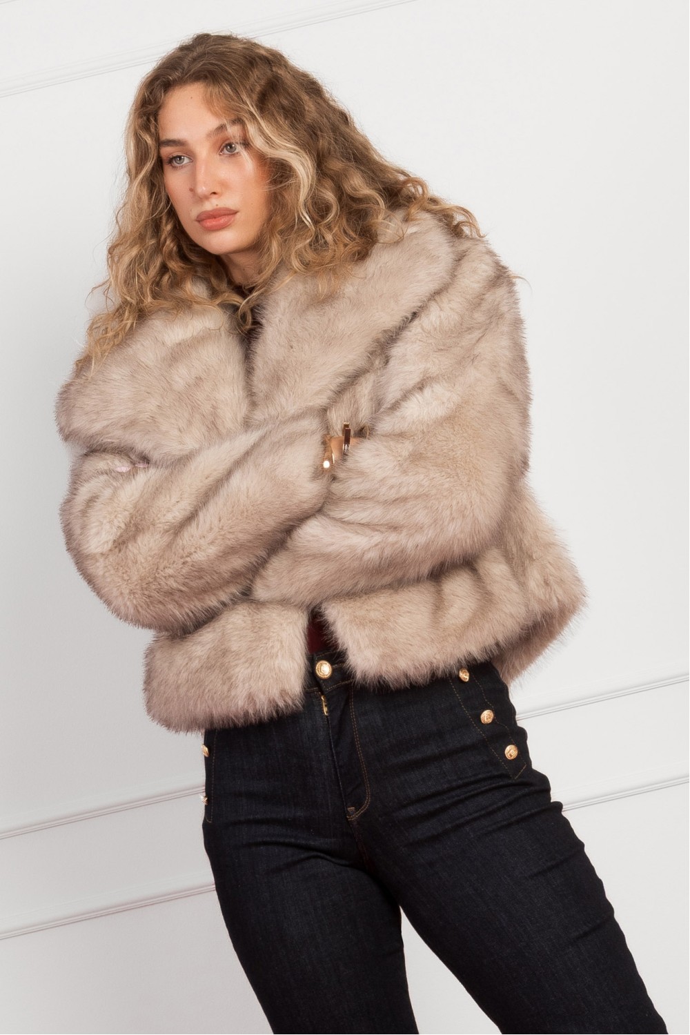 3. Kratka bunda od umjetnog krzna u bež tonovima