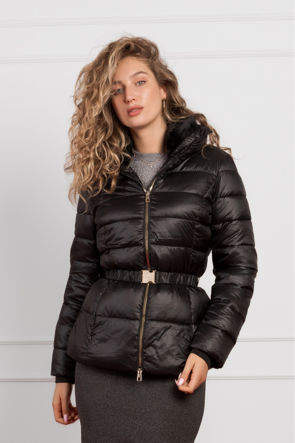 Crna ženska punjena jakna – idealan izbor za hladne dane kada želiš spoj topline i ženstvenog stila. Moderan kroj s naglašenim strukom i vezicom koja se može podešavati naglašava figuru i pruža udobnost tijekom nošenja. Zatvara se praktičnim zlatnim patentnim zatvaračem koji joj daje elegantan izgled, a lagano punjenje osigurava toplinu bez dodatnog opterećenja. Savršena za svakodnevne kombinacije, šetnje gradom i casual outfite. Model je visok 175 cm i nosi veličinu V36. SASTAV:100% Poliester Podstava: 100% Poliester Punjenje: 100% Poliester..