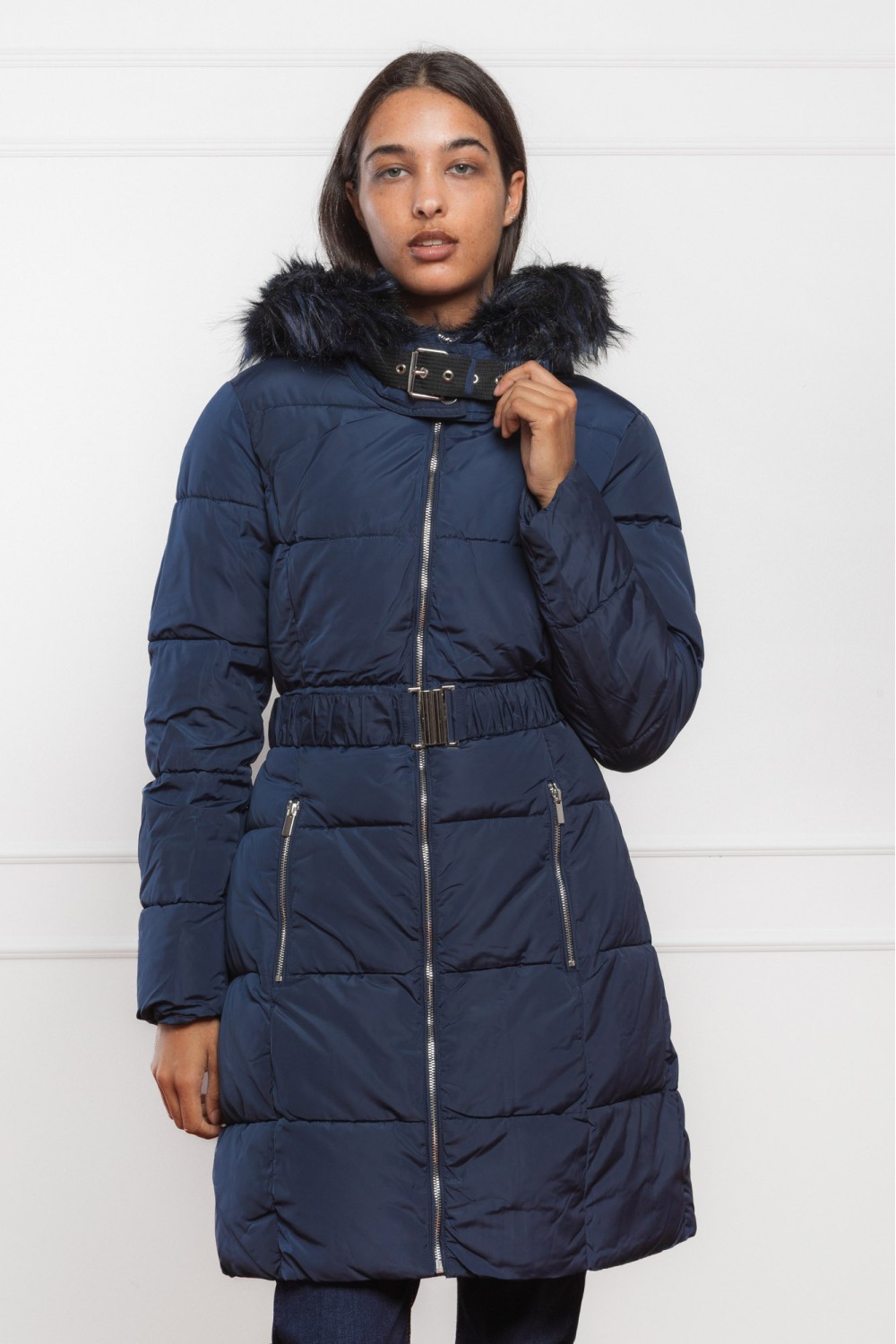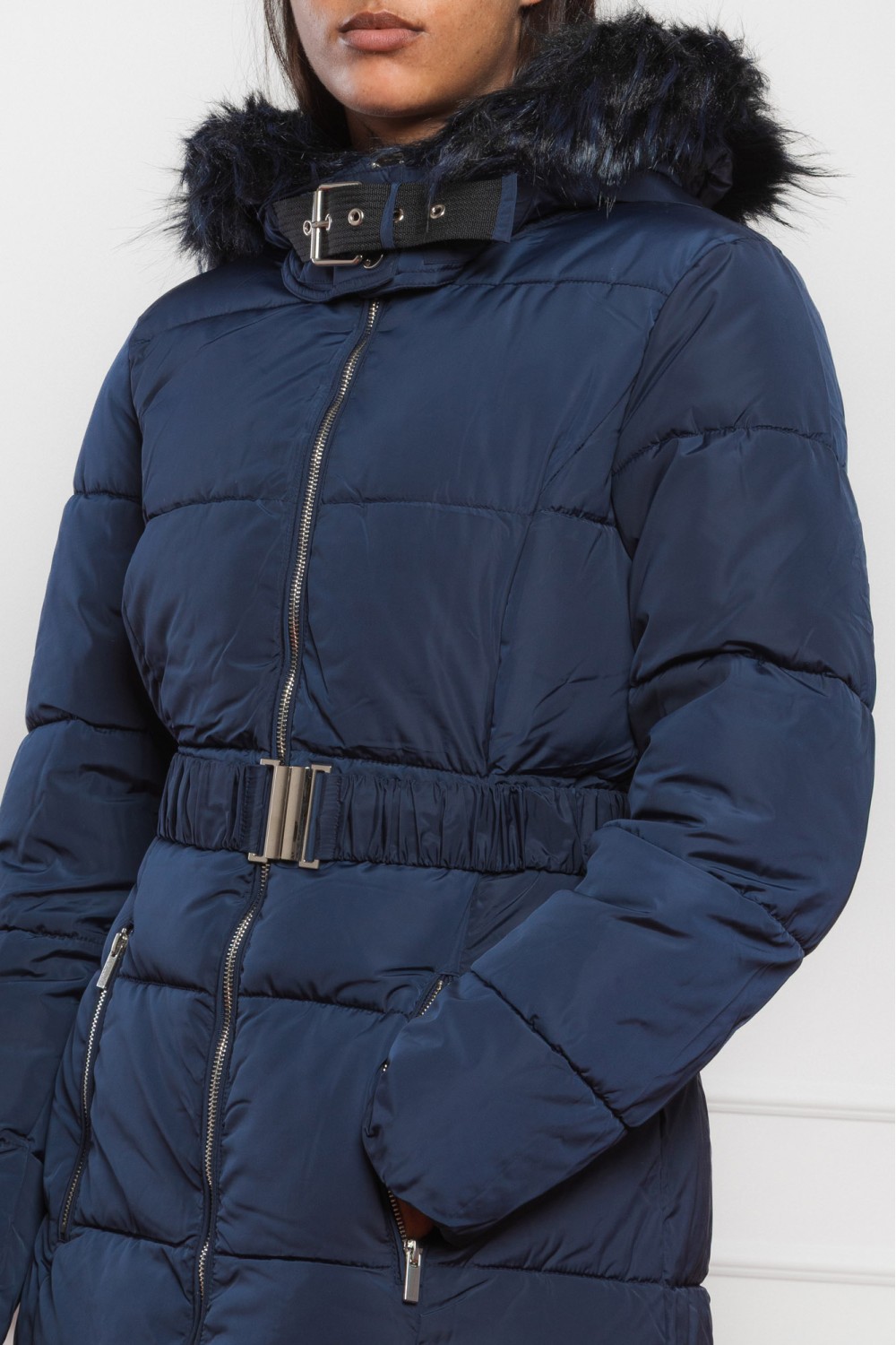 Duga ženska zimska jakna u klasičnoj crnoj boji, idealna za hladne dane. Topla i udobna, s vezicom u struku koja naglašava figuru te daje elegantan izgled. Prošiveni dizajn pruža dodatnu toplinu, dok praktični džepovi i remen čine ovaj model savršenim spojem funkcionalnosti i stila. Jakna je odličan izbor za svakodnevno nošenje – od posla do šetnje gradom.Model je visok 175 cm i nosi veličinu V38...