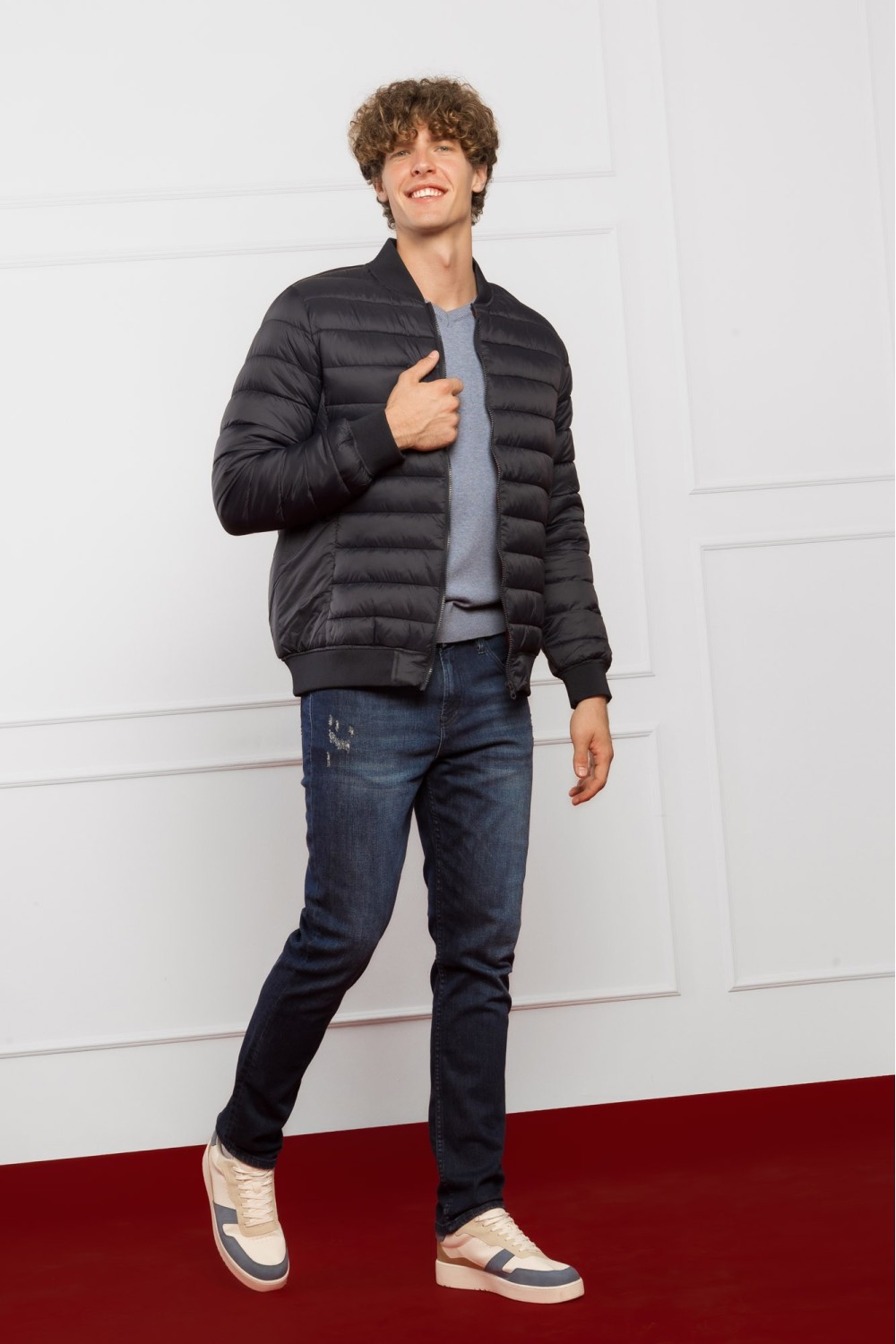 Muška tamno plava zimska jakna idealna je za hladne dane – topla, lagana i praktična. Prošiveni dizajn pruža moderan izgled, dok kapuljača osigurava dodatnu zaštitu od vjetra i kiše. Klasiča..