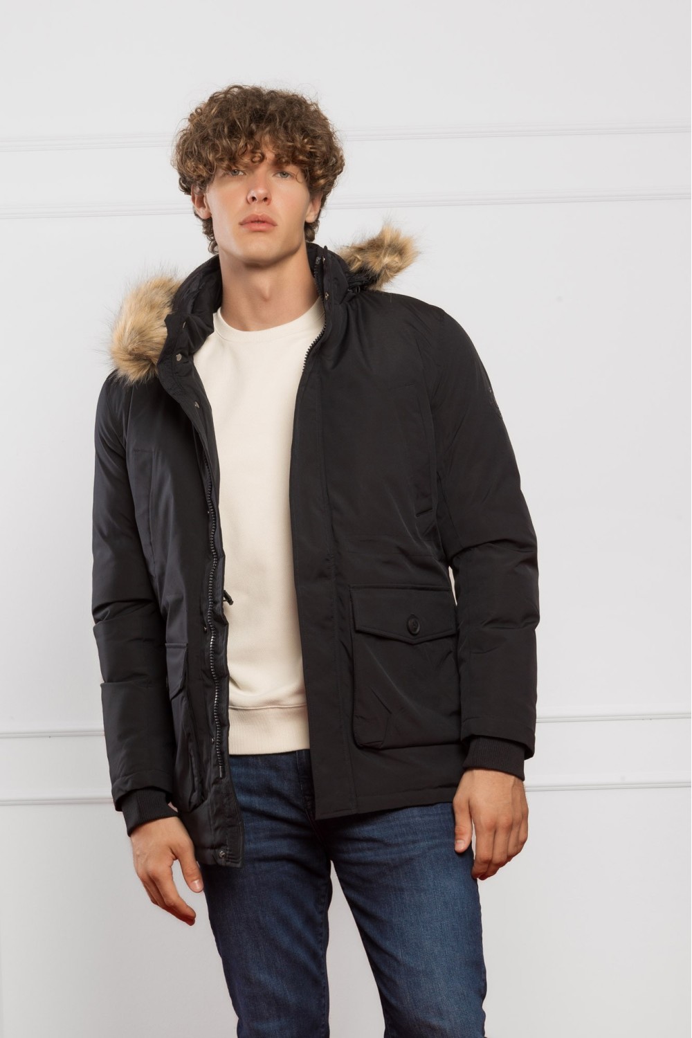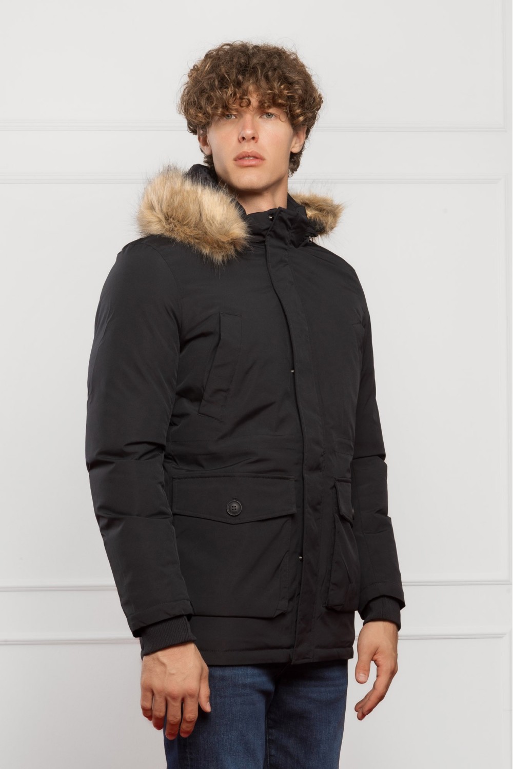 Elegantna ženska zimska jakna u tamno plavoj boji, savršena za hladne zimske dane. Jakna ima toplu kapuljaču s bogatim umjetnim krznom koje pruža dodatnu zaštitu od vjetra i hladnoće. Struk ..