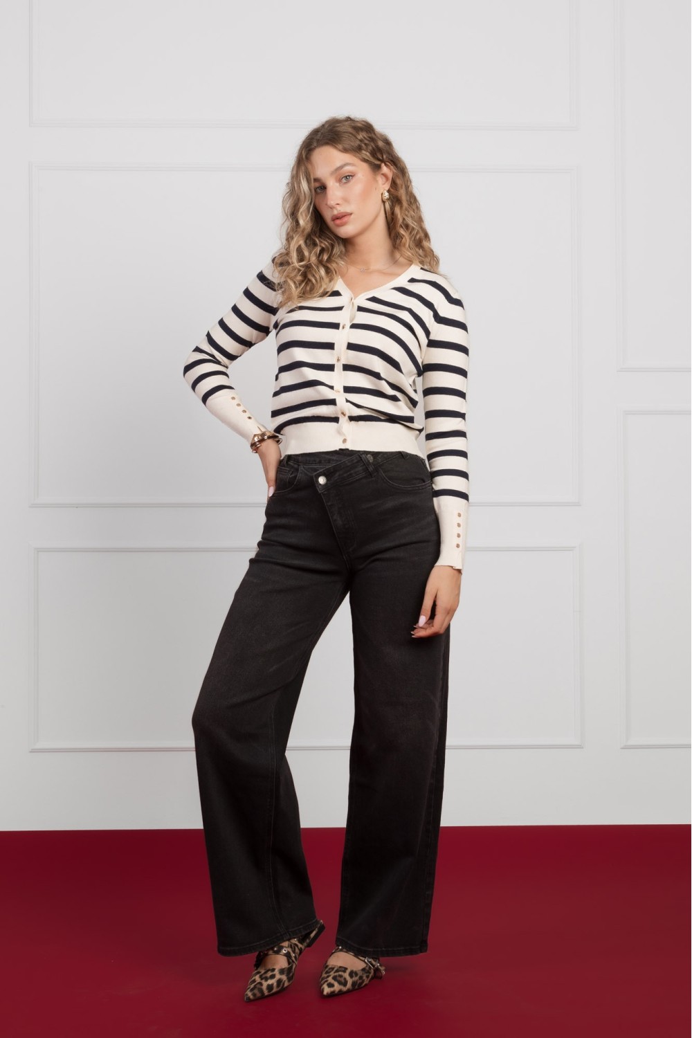 Model je visok 175 cm i nosi veličinu SM.