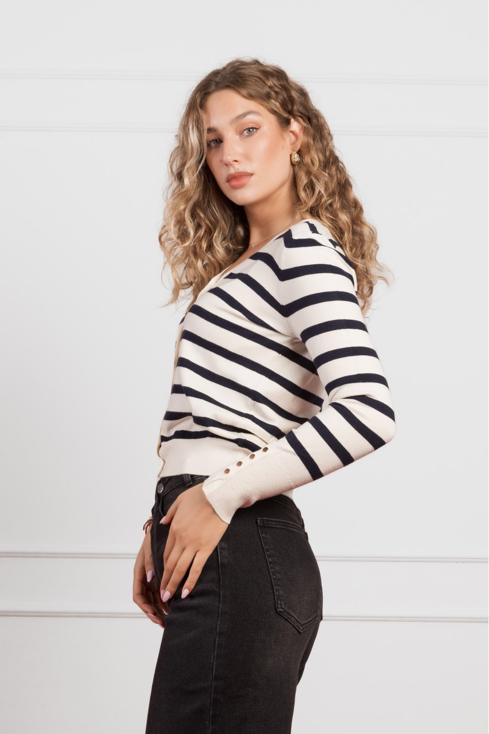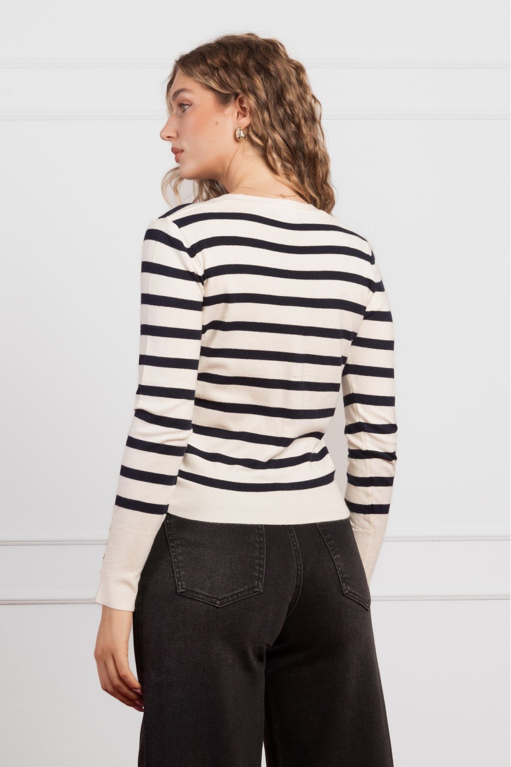 Elegantni kardigan u bijeloj boji izrađen od visokog udjela viskoze, s minimalističkim krojem i jednim ukrasnim gumbom u predjelu struka. Mekan na dodir i lagan za nošenje, ovaj kardigan lak..