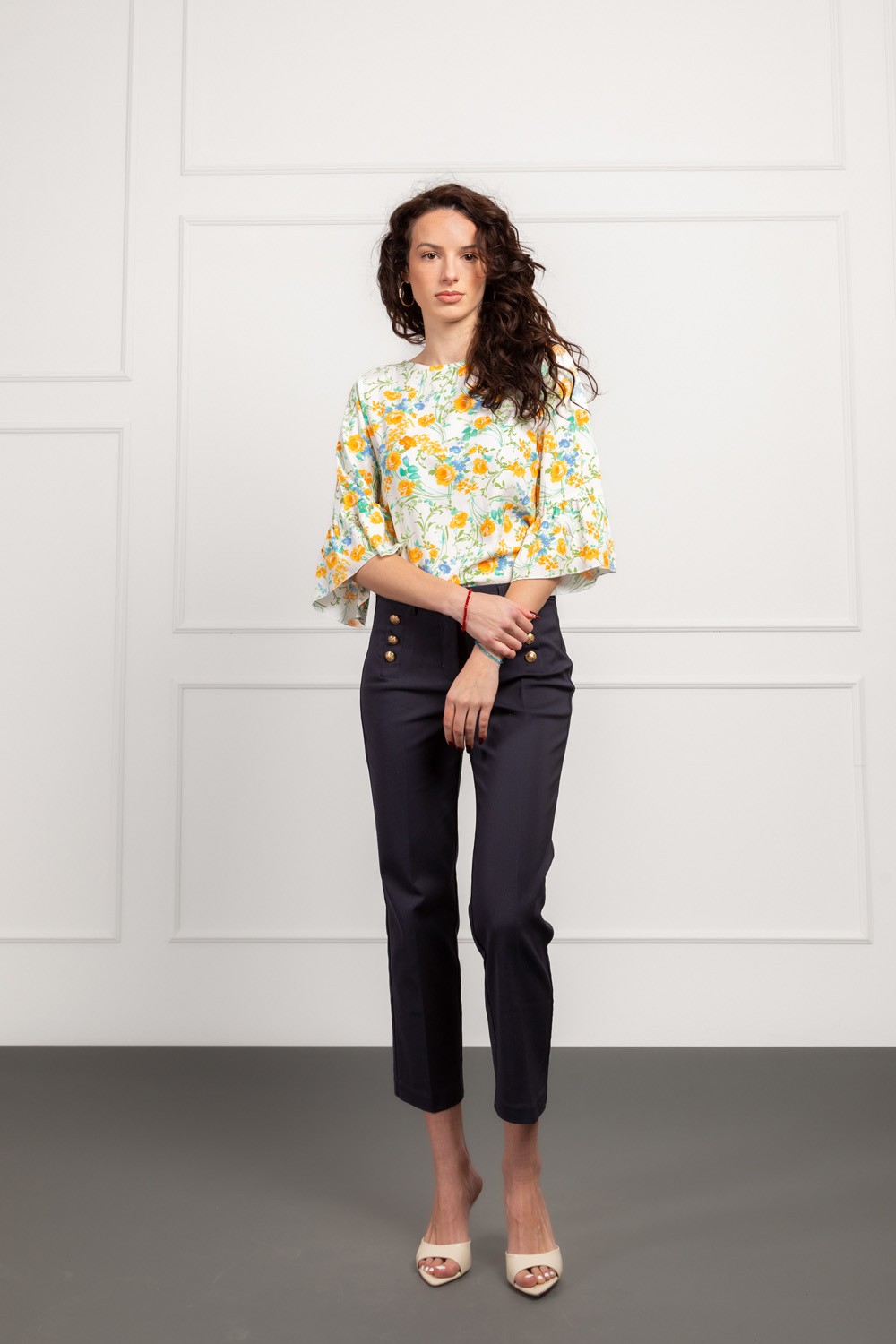 Košulja s 3/4 rukavom u crno bijelom printu koja spaja laganu ljetnu teksturu s upečatljivim uzorkom. Detalj drvenih gumba po sredini daje joj prirodniji karakter, dok decentno dodani metaln..