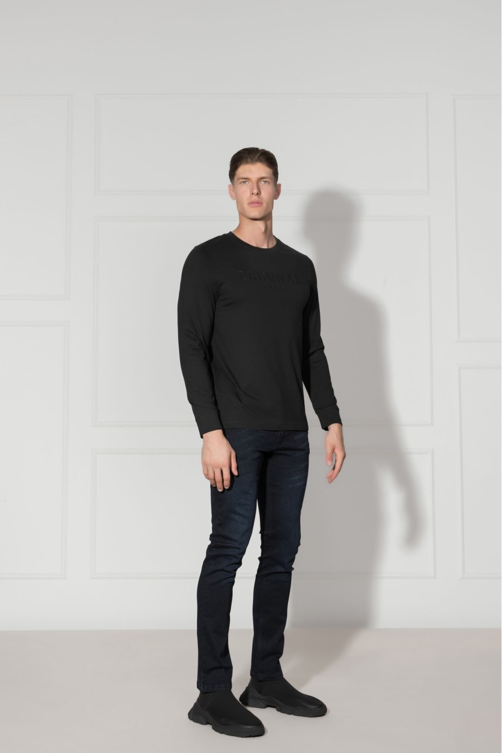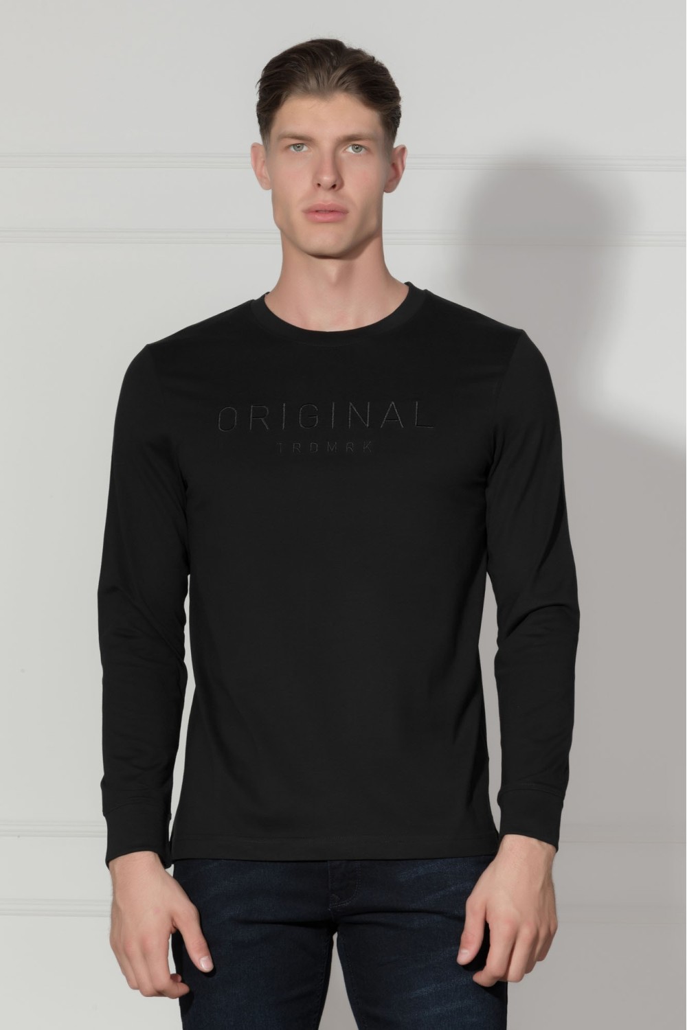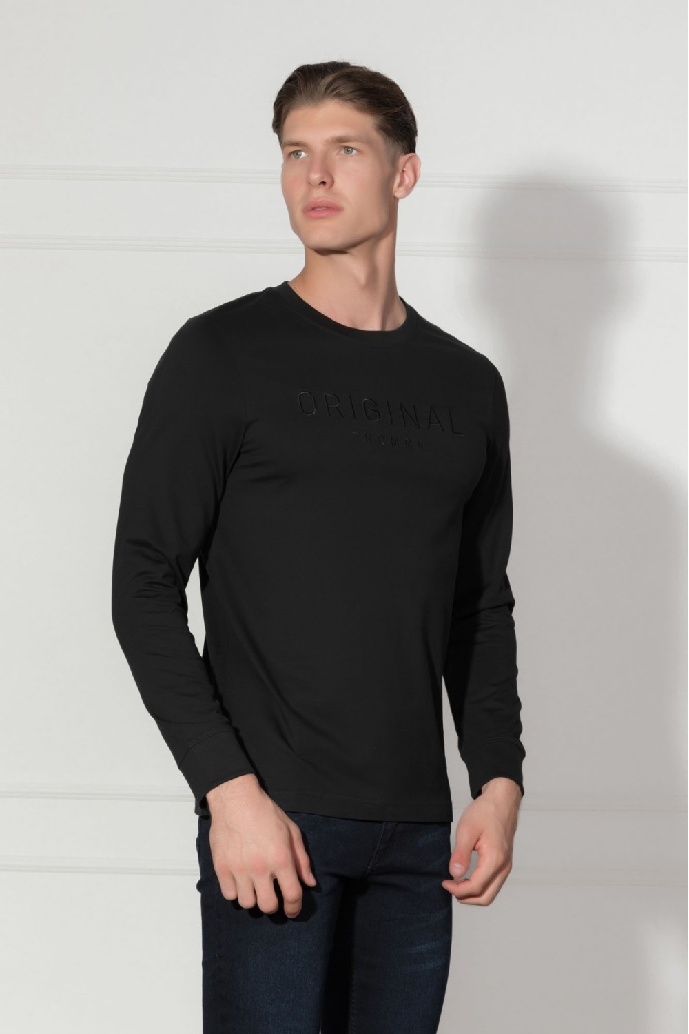 Majica dugog rukava s tekstualnim tiskom sprijeda, u formi štika i crnoga konca.