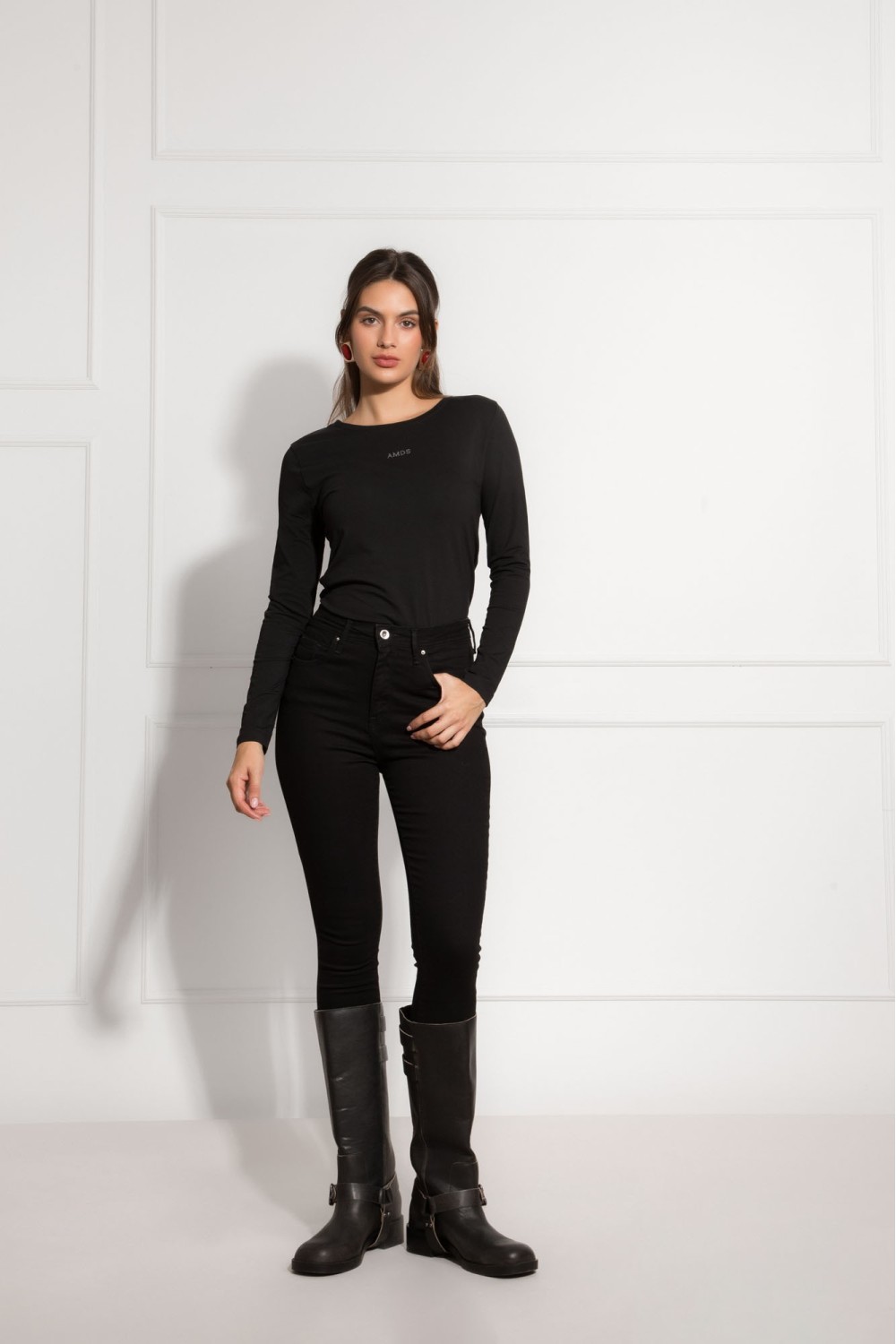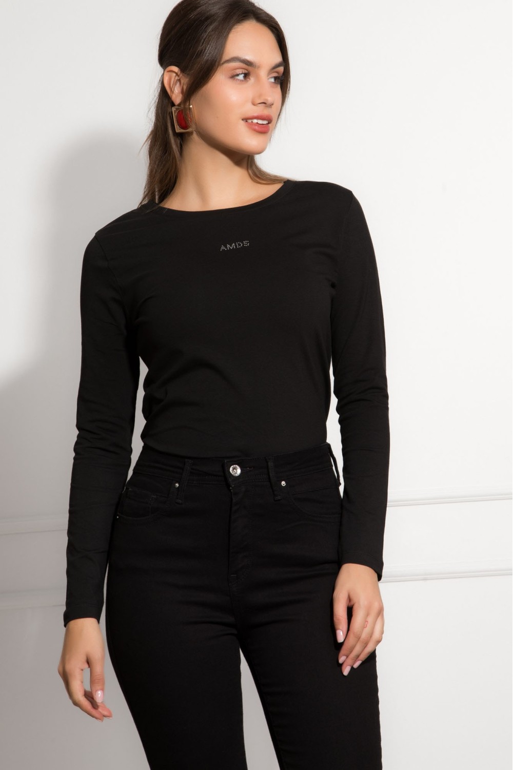 Crna majica dugih rukava s romantičnim detaljem – srce ukrašeno 3D aplikacijom i biserima koje daju poseban, ženstven touch. Natpis unosi dašak pozitivne energije i čini ovaj komad savršenim..