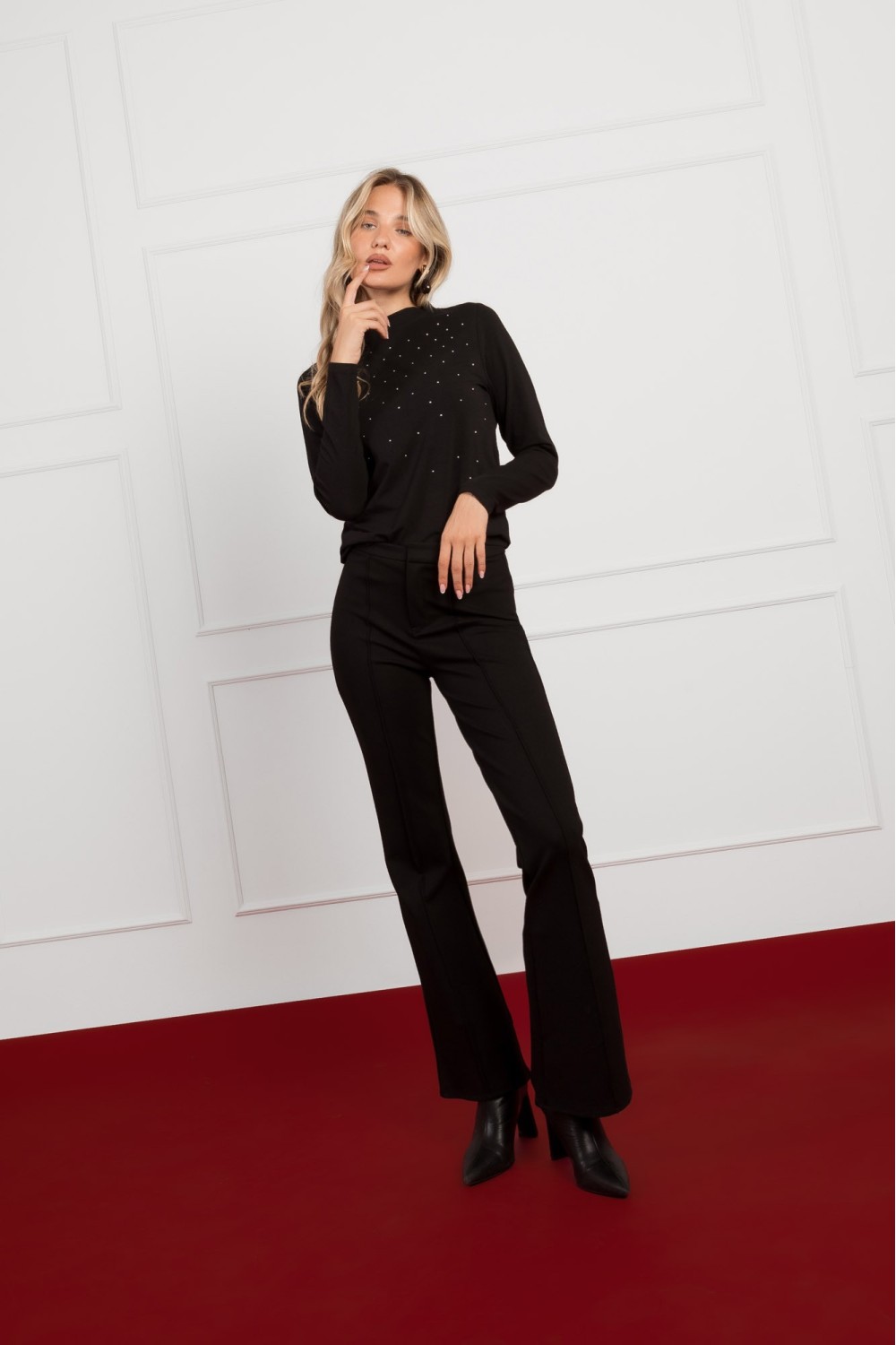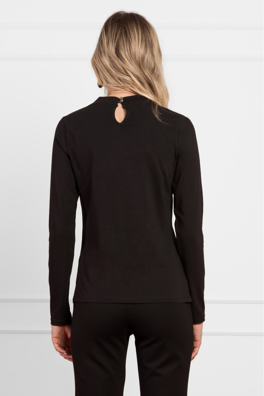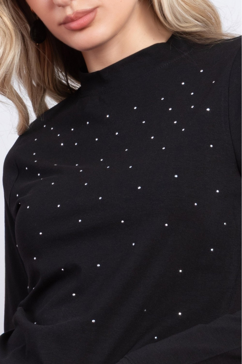 Elegantna majica dugog rukava, okruglog izreza s detaljima cirkona na vratnom otvoru. -95% VISKOZA, 5% ELASTINModel je visok 170 cm i nosi veličinu S/V36...