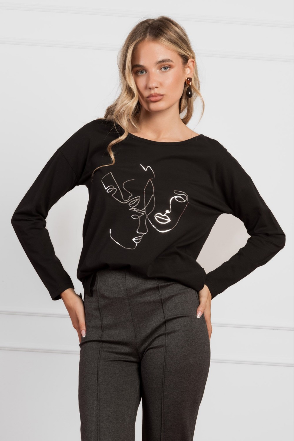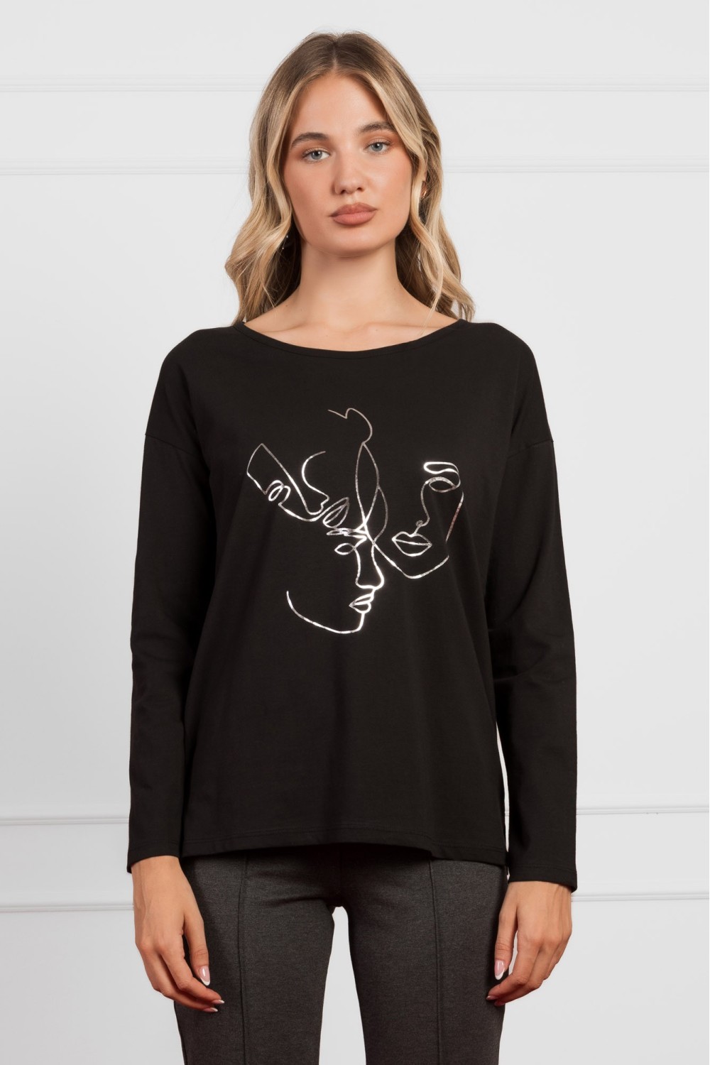 Majica dugog rukava, okruglog izreza s kružnim folijskim tiskom sprijeda.-100% PAMUKModel je visok 170 cm i nosi veličinu S/V36...