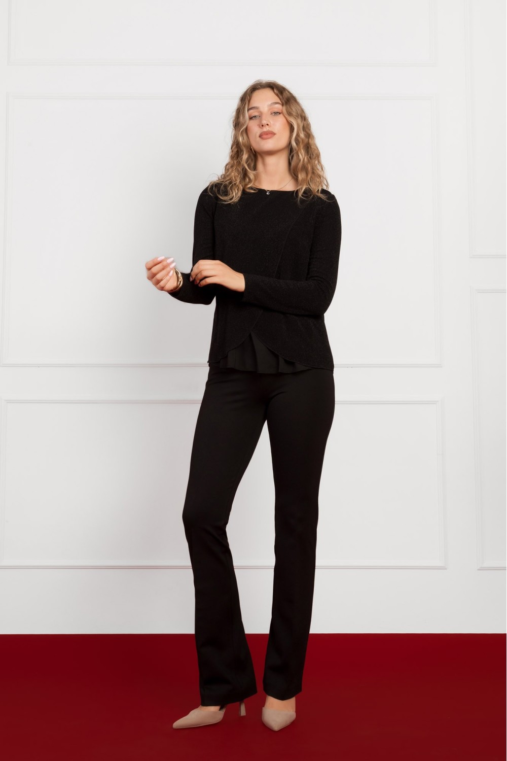 Model je visok 175 cm i nosi veličinu V38.