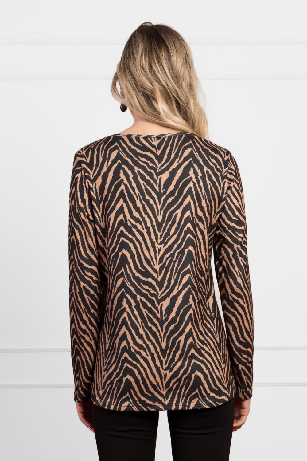 Elegantna majica dugog rukava, okruglog izreza s detaljima cirkona na vratnom otvoru. -95% VISKOZA, 5% ELASTINModel je visok 170 cm i nosi veličinu S/V36...