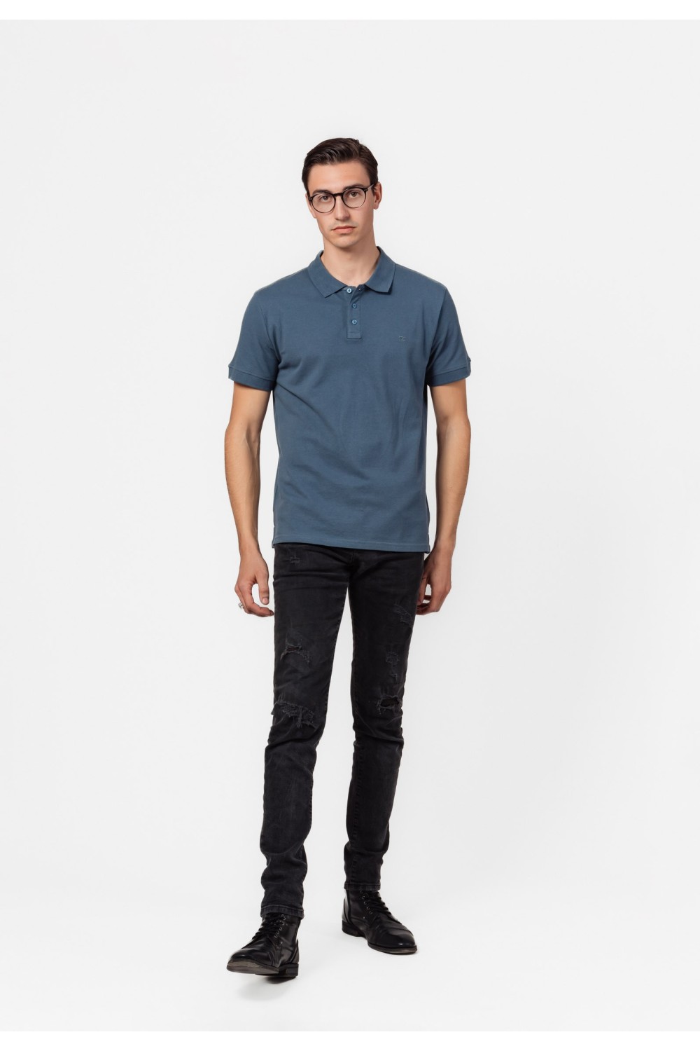 Polo muška majica na bijele pruge. Kratkog rukava sa kragnom i gumbima na kopčanje sprijeda. Ušiveni AMDS logo u crvnoj boji konca s lijeve strane, sprijeda. Ispod kragne natpis. Regular f..