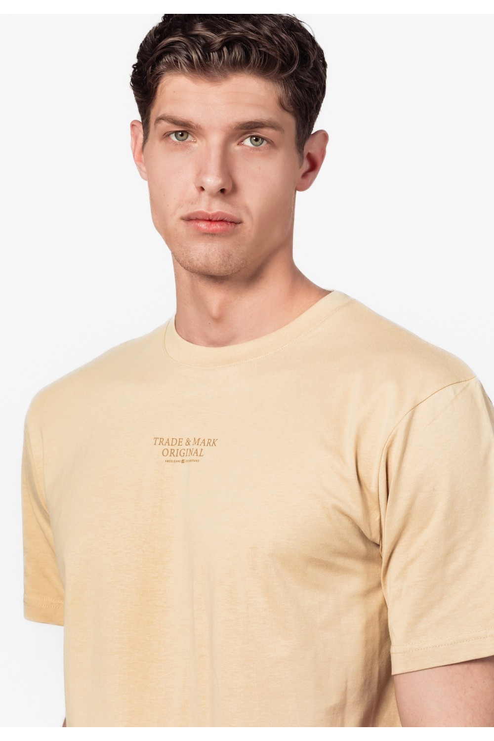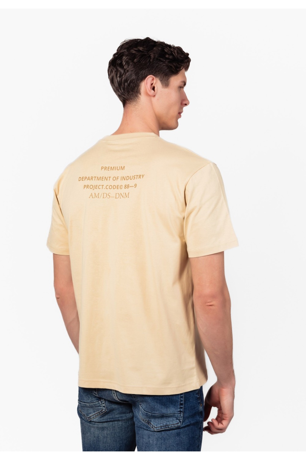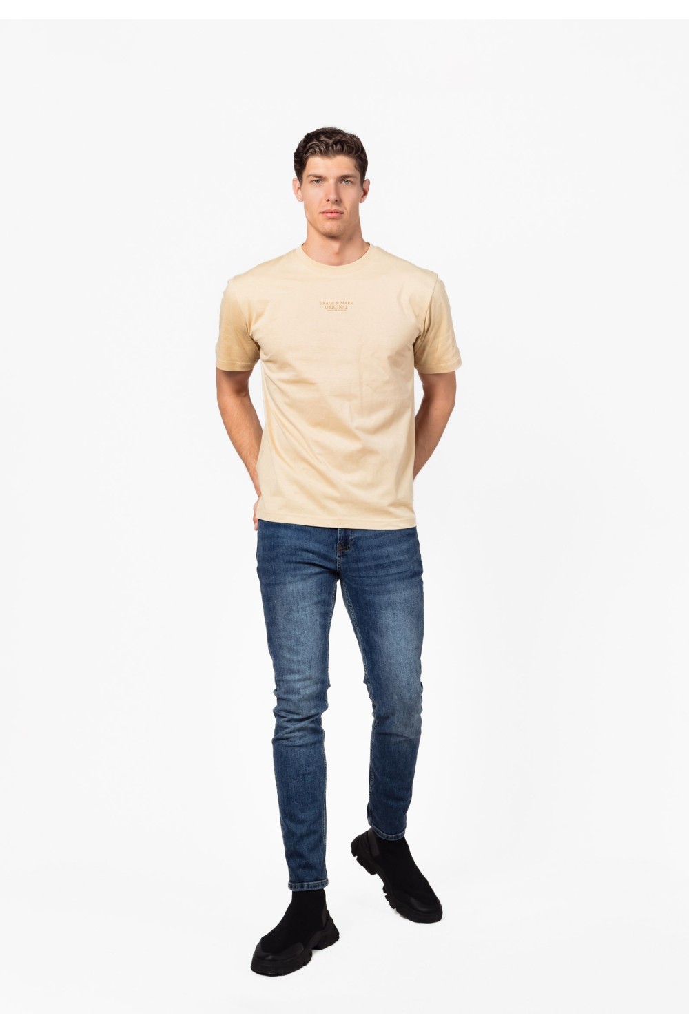 Oversize prljavo bijela muška majica, kratkog rukava. Okrugli ovratnik. Detalji patch sprijeda - s lijeve strane gore i s desne strane dolje uz tamno crveni mali tisak. - 100% PAMUKModel je..