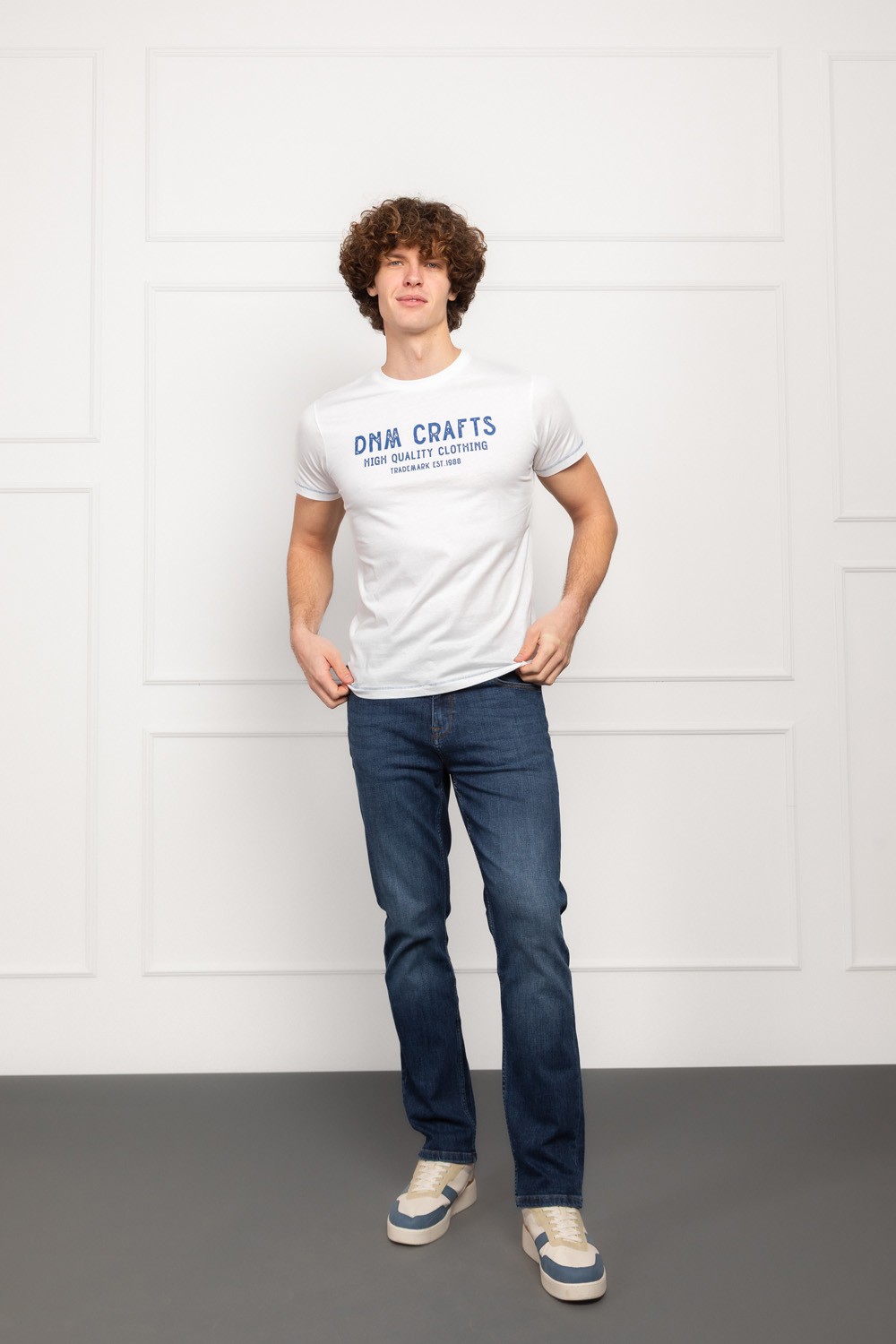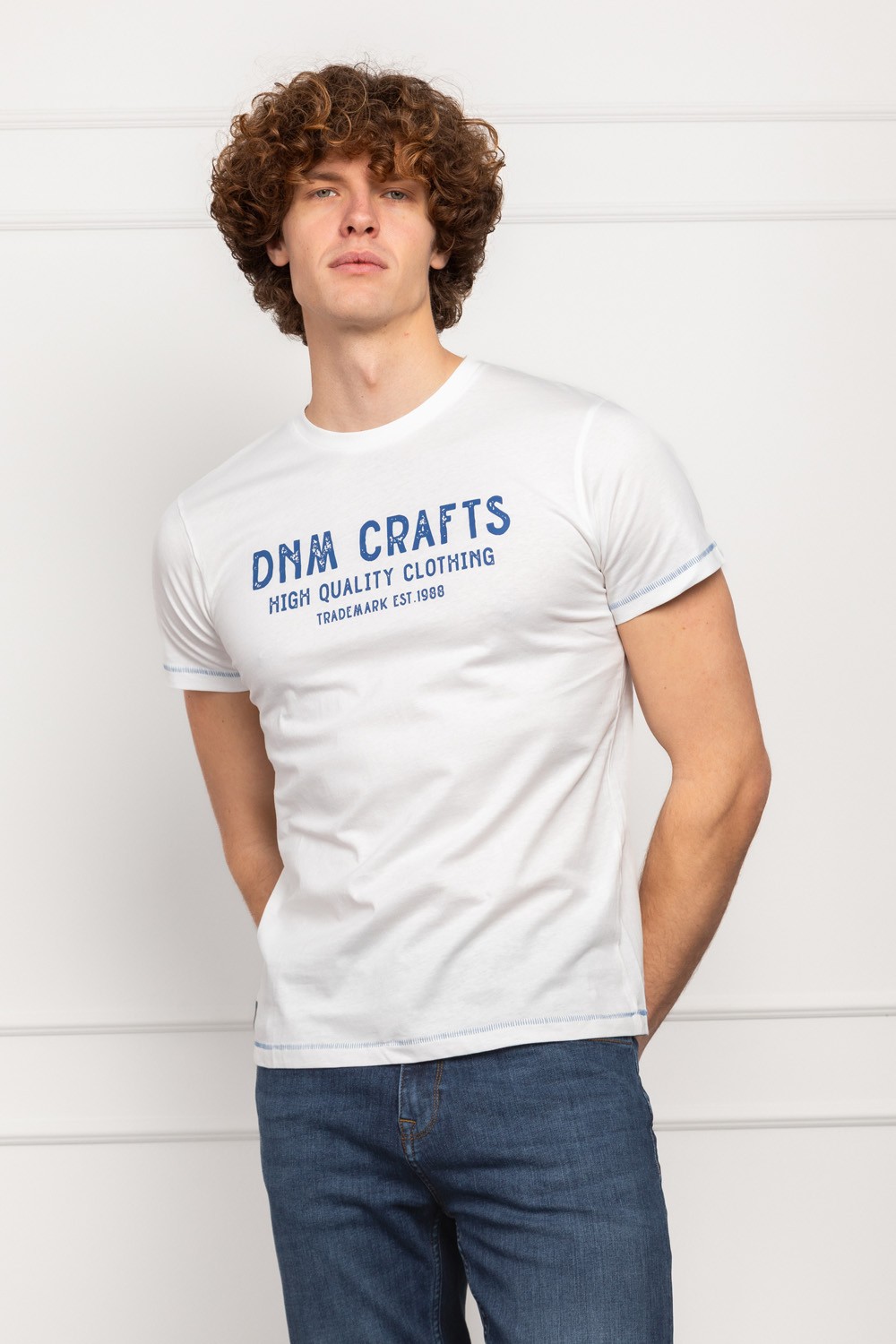 Muška majica u prljavo bijeloj nijansi odličan je izbor za one koji preferiraju malo mekše, manje „oštre“ tonove od čiste bijele. Print u plavoj boji daje vintage dojam i lijep kontrast, što majicu čini zanimljivom i vizualno dinamičnom, ali i dalje dovoljno jednostavnom za svakodnevno kombiniranje.
