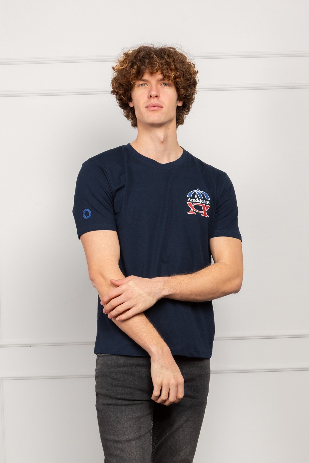 Muška majica kratkih rukava u tamno plavoj boji s modernim printom na prsima i oversized krojem koji daje urbanu i opušteni stil. Izrađena je od mekanog i prozračnog pamuka pa je ugodna za cjelodnevno nošenje i idealna za toplije razdoblje, ali i kao dio slojevitih kombinacija u ostatku godine.