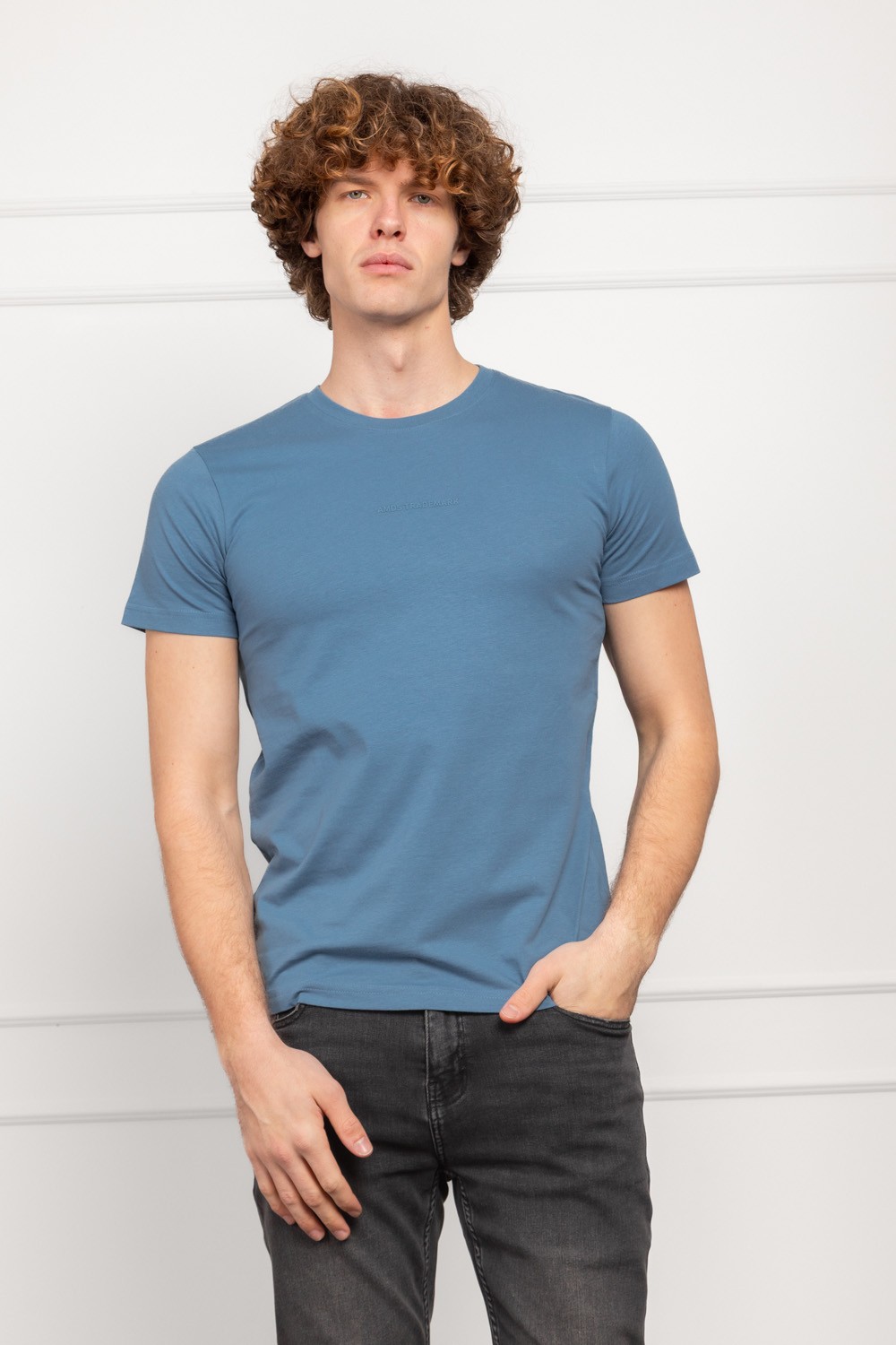 Muška pamučna majica kratkih rukava u svijetlo plavoj nijansi s diskretnim AMDS reljefnim printom na prsima. Minimalna grafika, moderan izgled i boja koja se jako dobro nosi preko proljeća i ljeta.