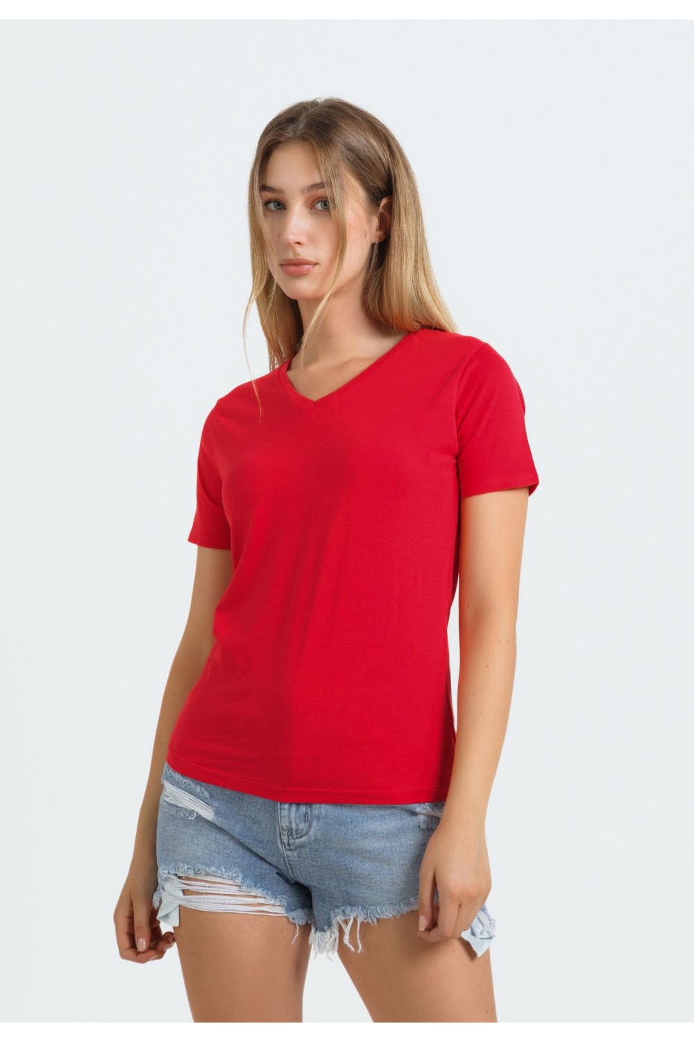 Majica kratkih rukava s V-izrezom. -95% PAMUK, 5% METALIZIRANOModel je visok 180 cm i nosi veličinu S/V36..